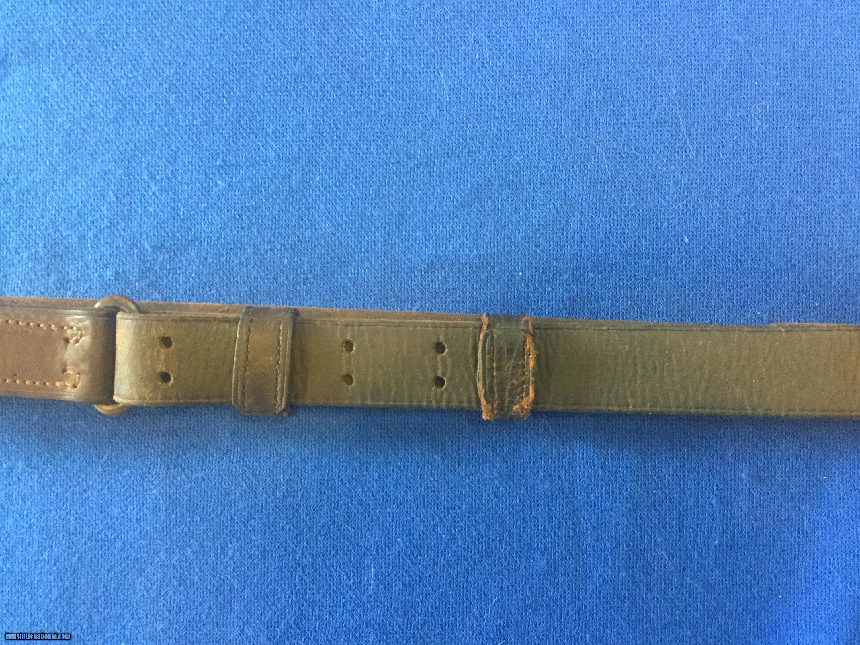 Description: Up for sale today is an excellent original Hoyt M1905 leather sling that bears a 1918 date and a “JM” inspector mark. This excellent sling is still supple and serviceable, with its two original keepers and brass hardware. Use in match shooting is understandably not recommended, but the sling would make a great finishing touch to any WWI era-rifle. An excellent sling at an excellent price. All Pennsylvania residents please add 6% sales tax. SOLD |