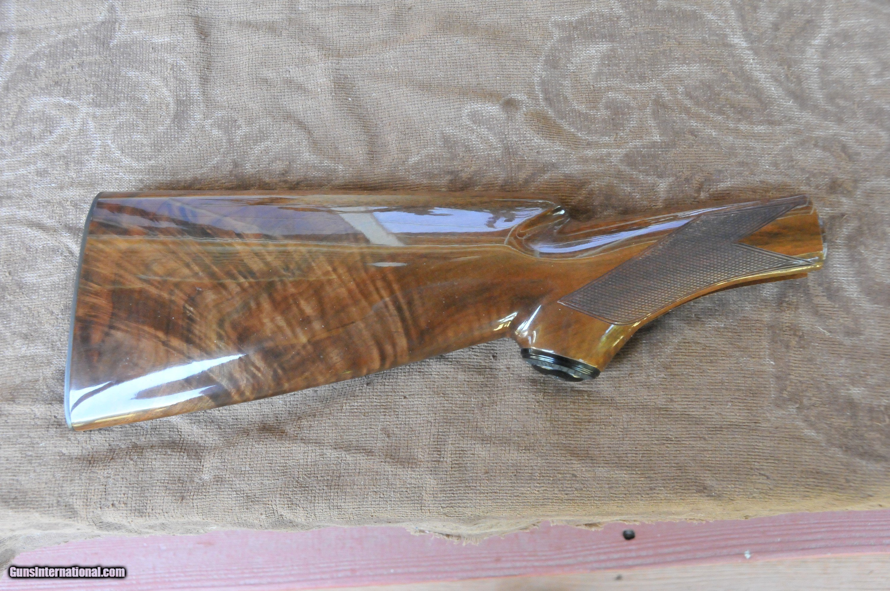 Description: This is a new original factory stock for a Browning Model 53 lever action rifle that features exquisite 3x grade wood. Original factory butt plate and grip cap are included. Finish is the original Browning high gloss with no scratches or dings. Sorry for the glare in the pictures, with the high gloss finish it makes taking pictures difficult. As with all new stocks fitting may be requred for installation on your individual rifle. Price is $375 with $15 shipping. Certified funds only. Please call or email if you have any questions. If there's no answer just leave a message and I'll get right back to you. Thanks for looking. SOLD |