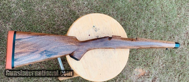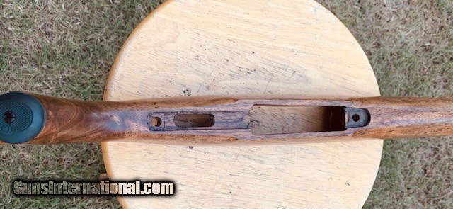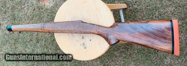 Description: Beautiful custom rifle stock for a Pre 64 Model 70 Featherweight. Very slim fast handling stock for a featherweight. 13 3/4 LOP, Ebony forend, checkered steel grip cap and red Decelrator pad. Bedded to a featherweight barrel/action. $15 shipping SOLD |