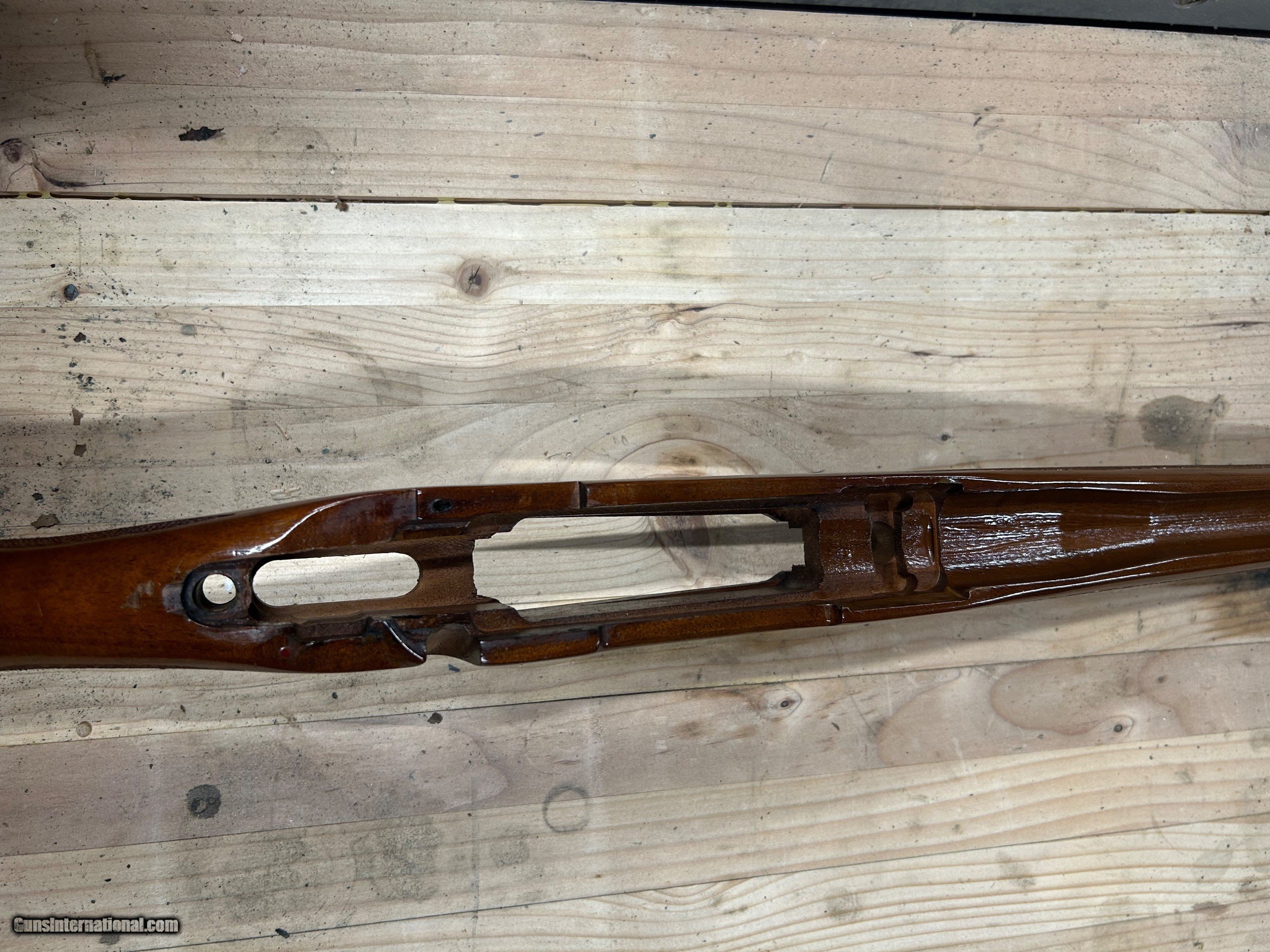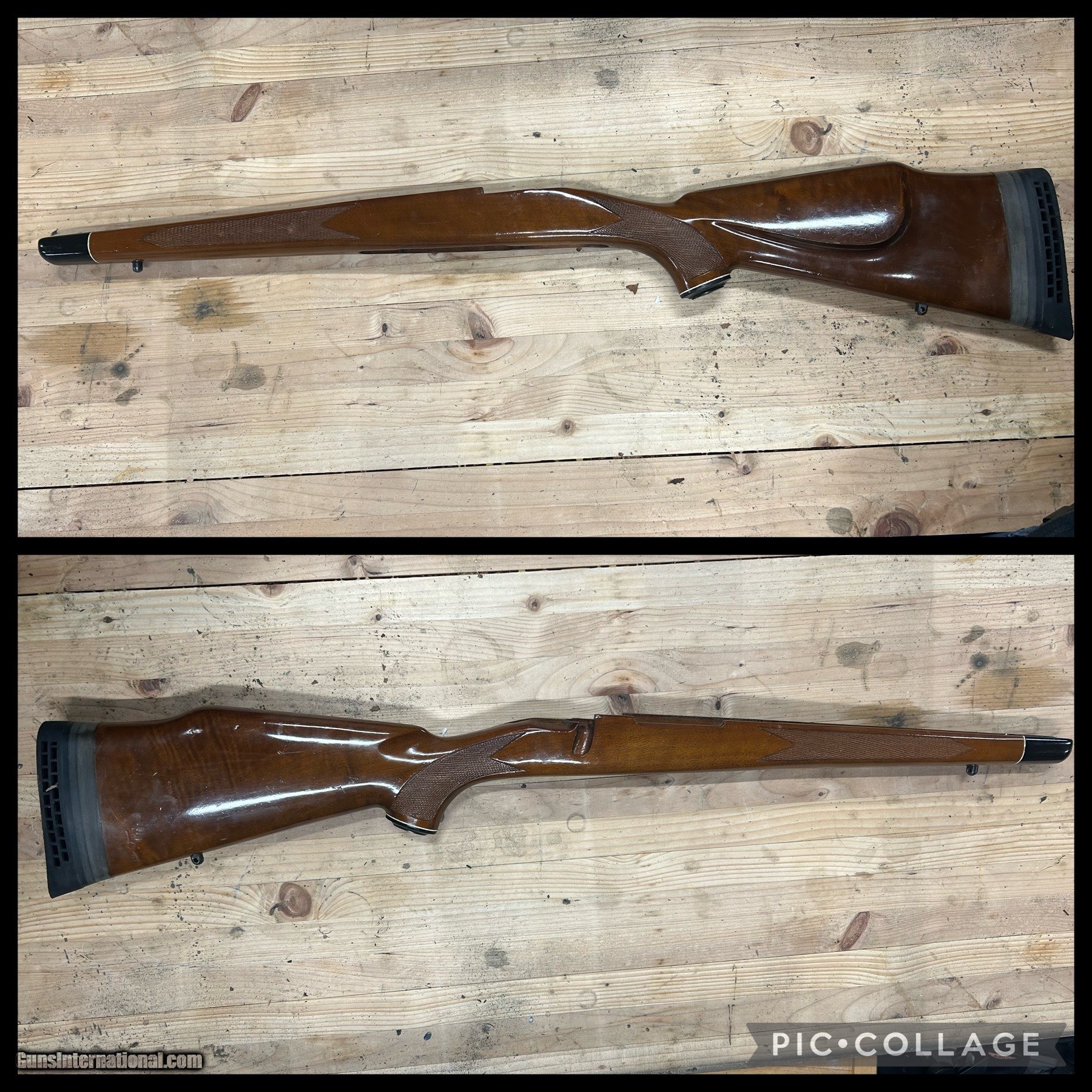 Description: Original factory stock for Interarms Mark X commercial Mauser rifle. Previous owner extended length if pull with spacers and aftermarket recoil pad. Easily removed or swapped out. Shows signs of field use, including dents and scratches. See photos for exact stock for sale. Grip cap and forend tip both in great condition. Factory inletted for commercial Mauser 98 receiver and standard barrel profile. $75 plus $20 shipping. or purchase this wood stock with the Bell & Carlson synthetic stock I also have listed and I will combine both items for free shipping! SOLD |