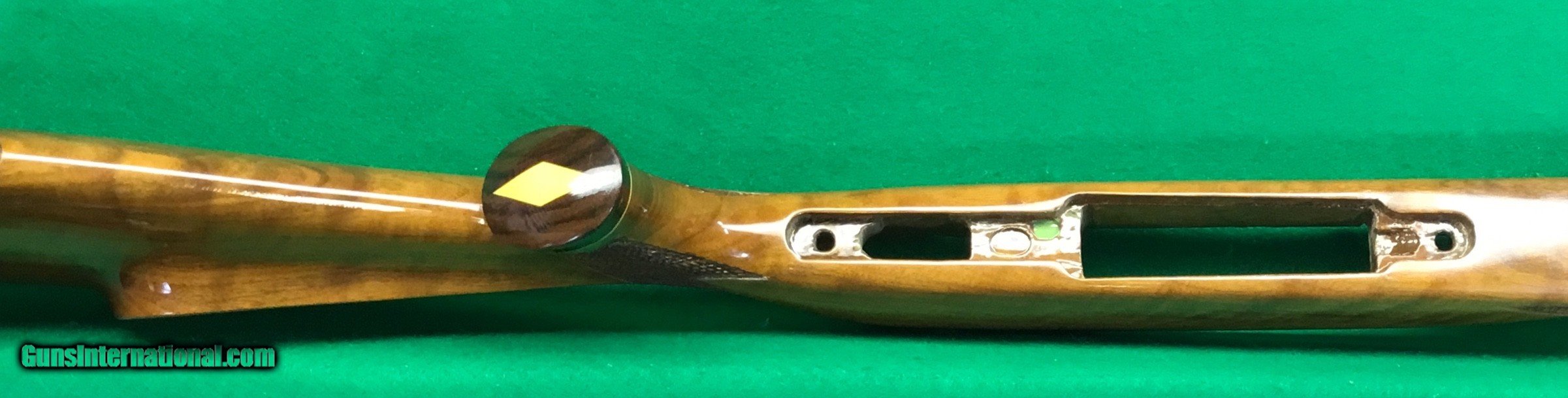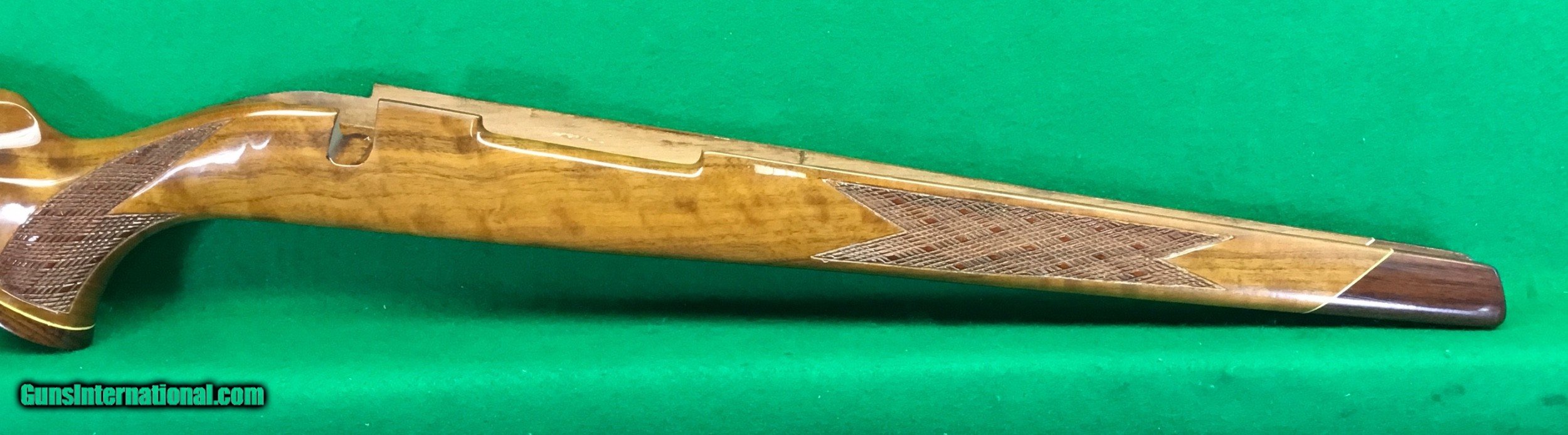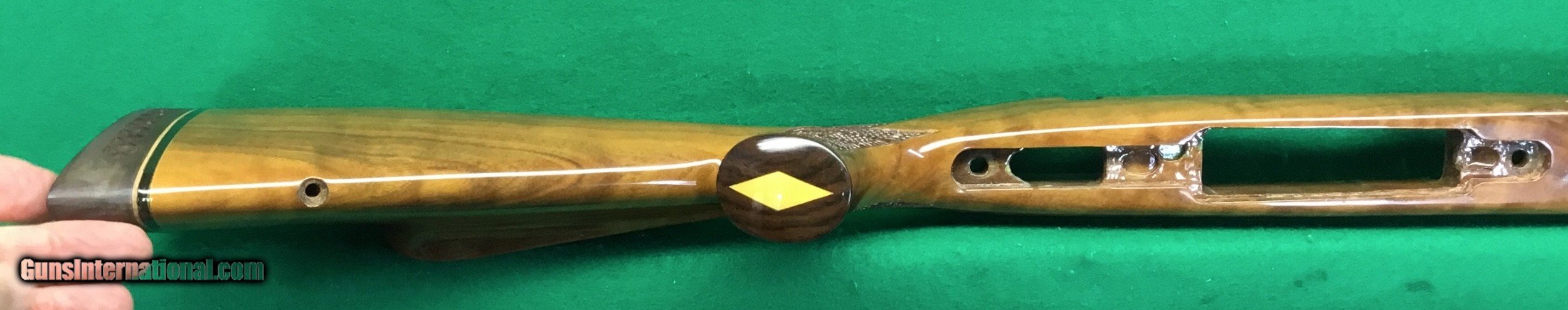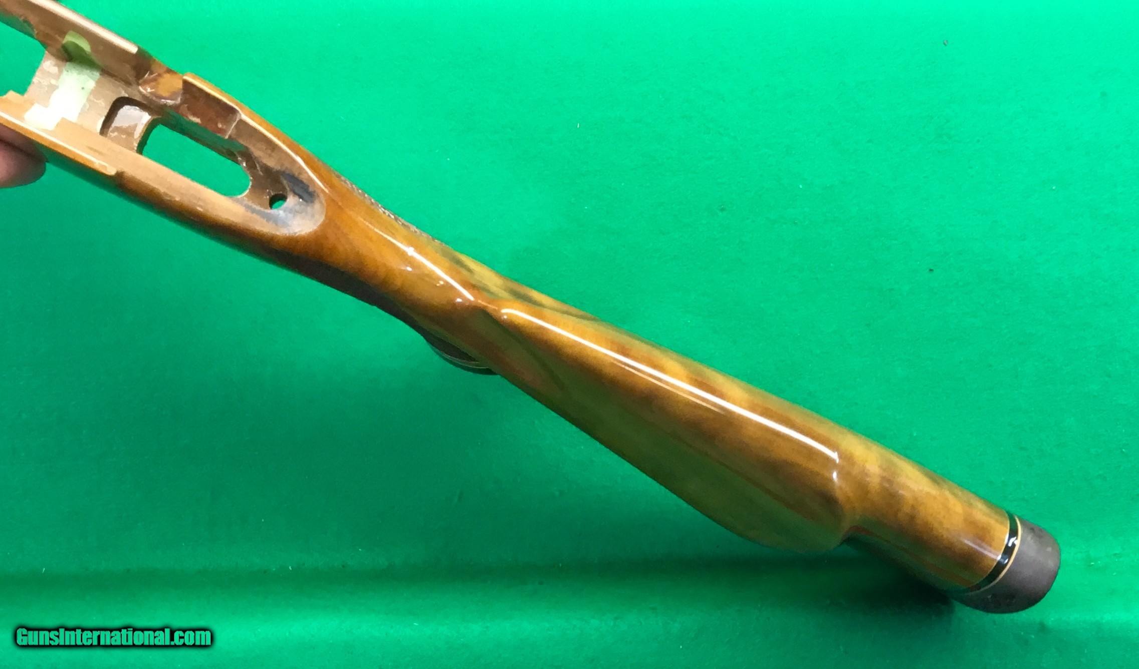 Description: Minty German Weatherby Mark V right hand rifle stock from 300 Weatherby. Removed because owner wanted custom stock. Will fit 257 up to 340. $498 includes insured shipping. SOLD |