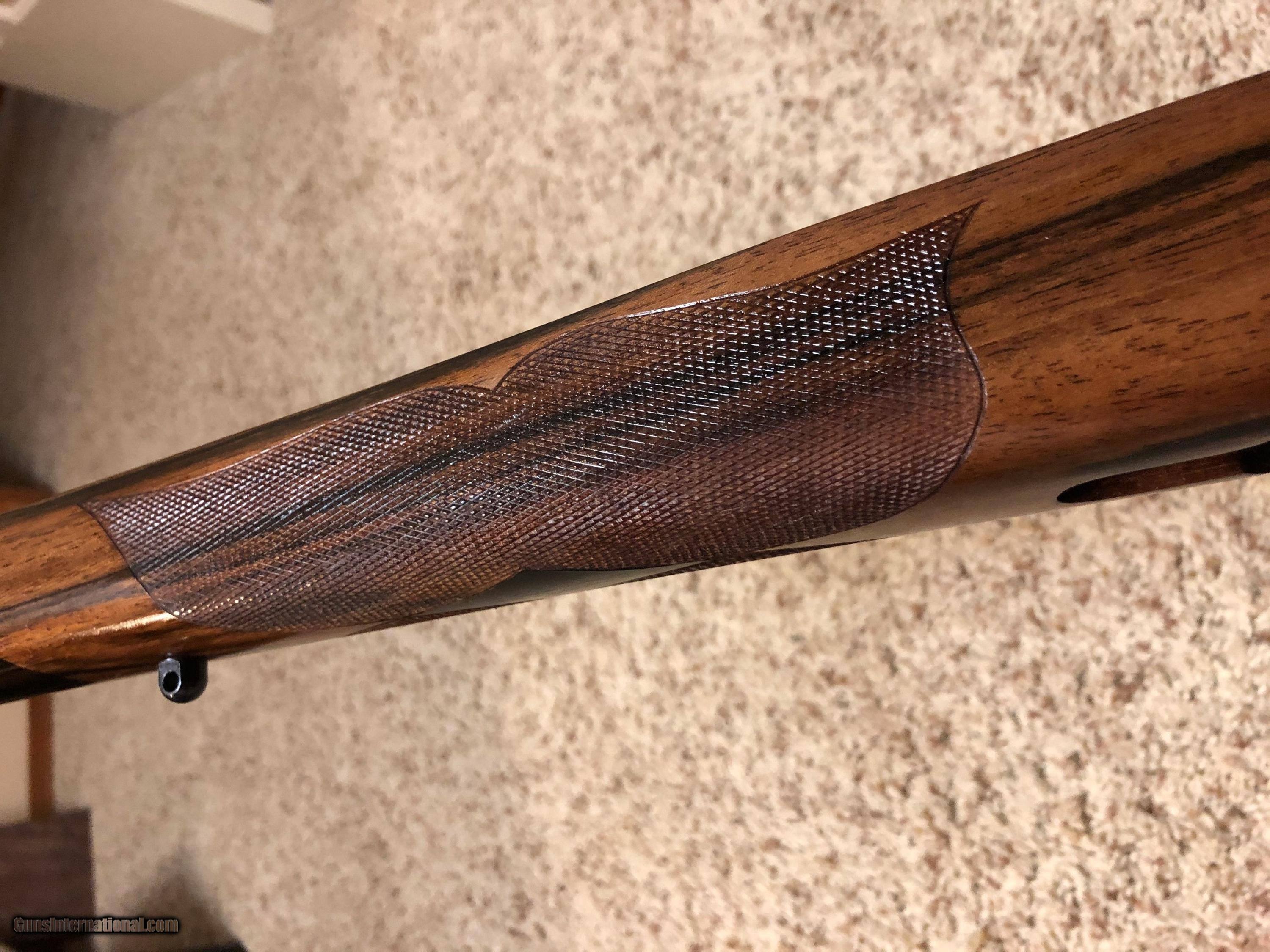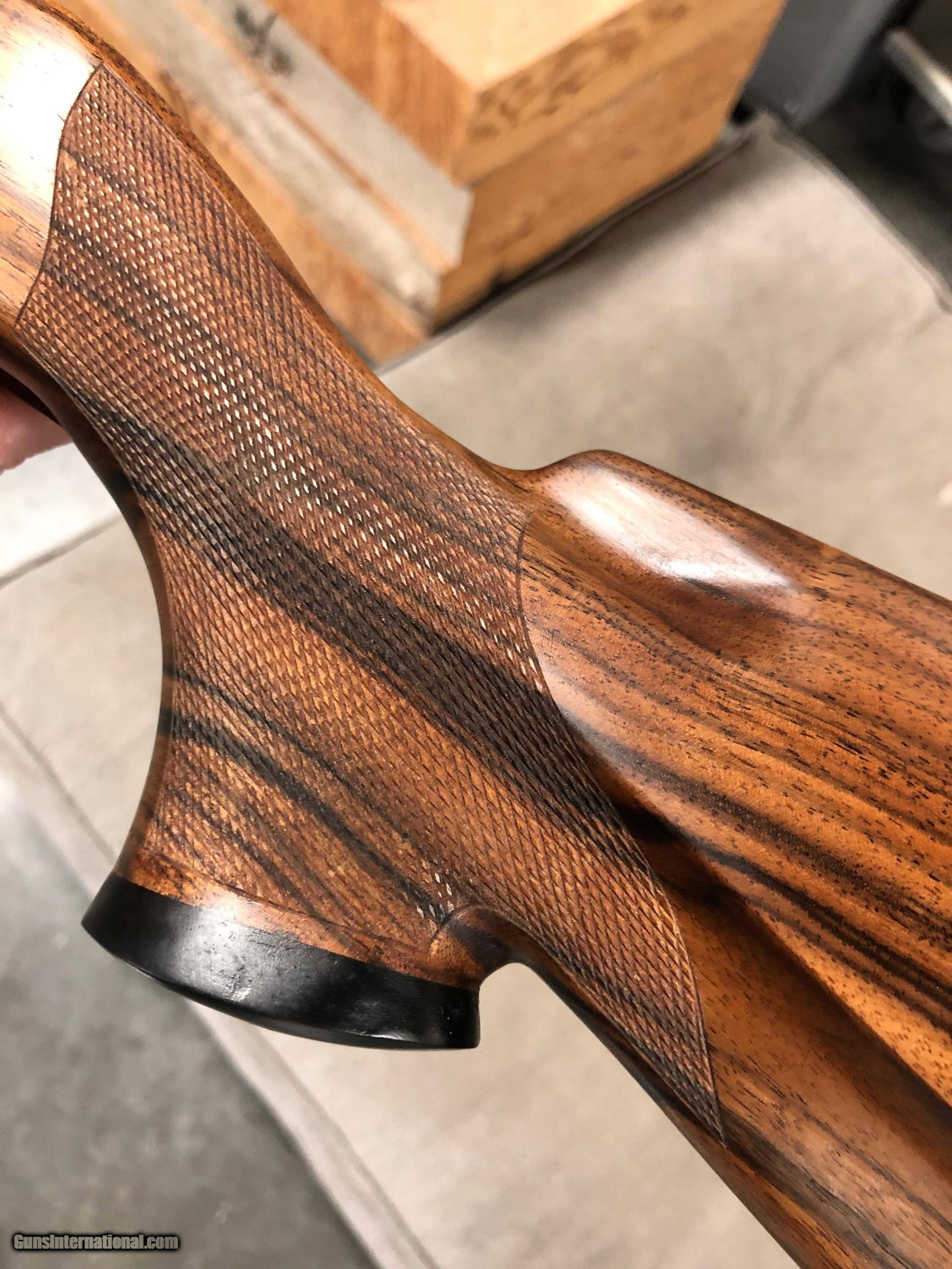 Description: Available for purchase is my Mark V RH custom weatherby stock, #2 Contour, fully inletted and bedded, the barrel channel has been free floated. This is oil finished, hand cut checkering, hand set ebony inlay. I am a custom stock builder as a hobby, several stocks to choose from or have me build one for you. SOLD |