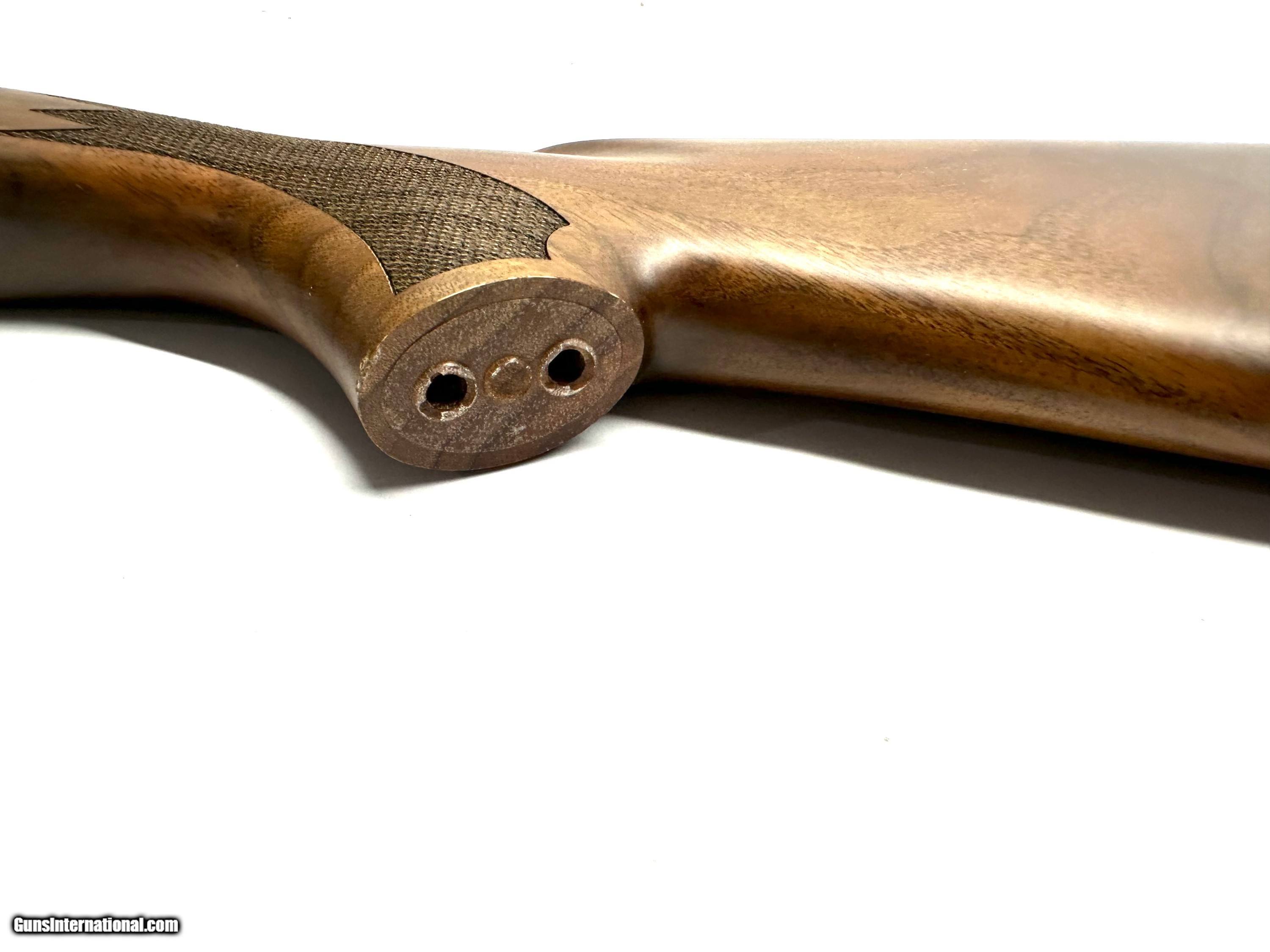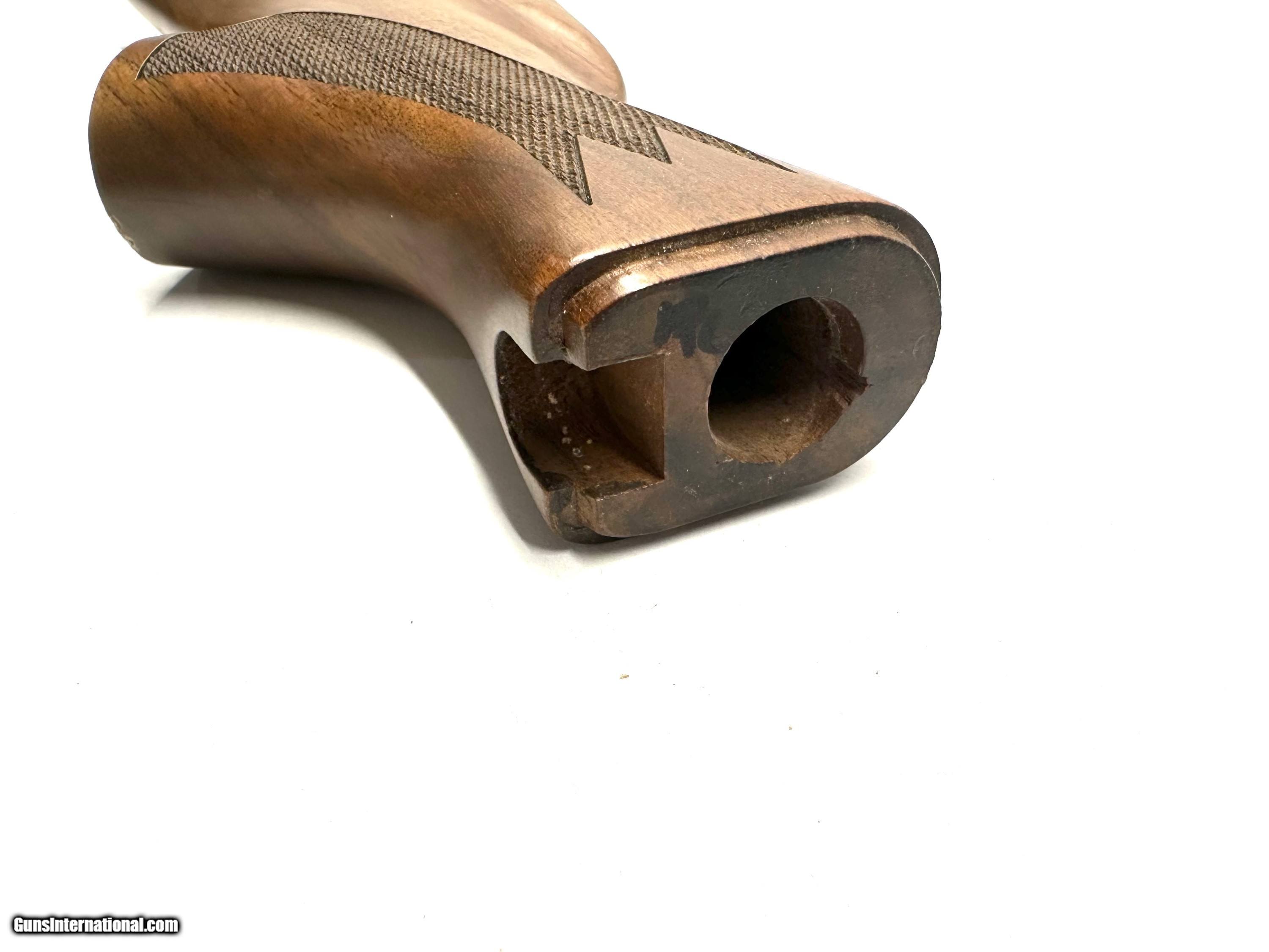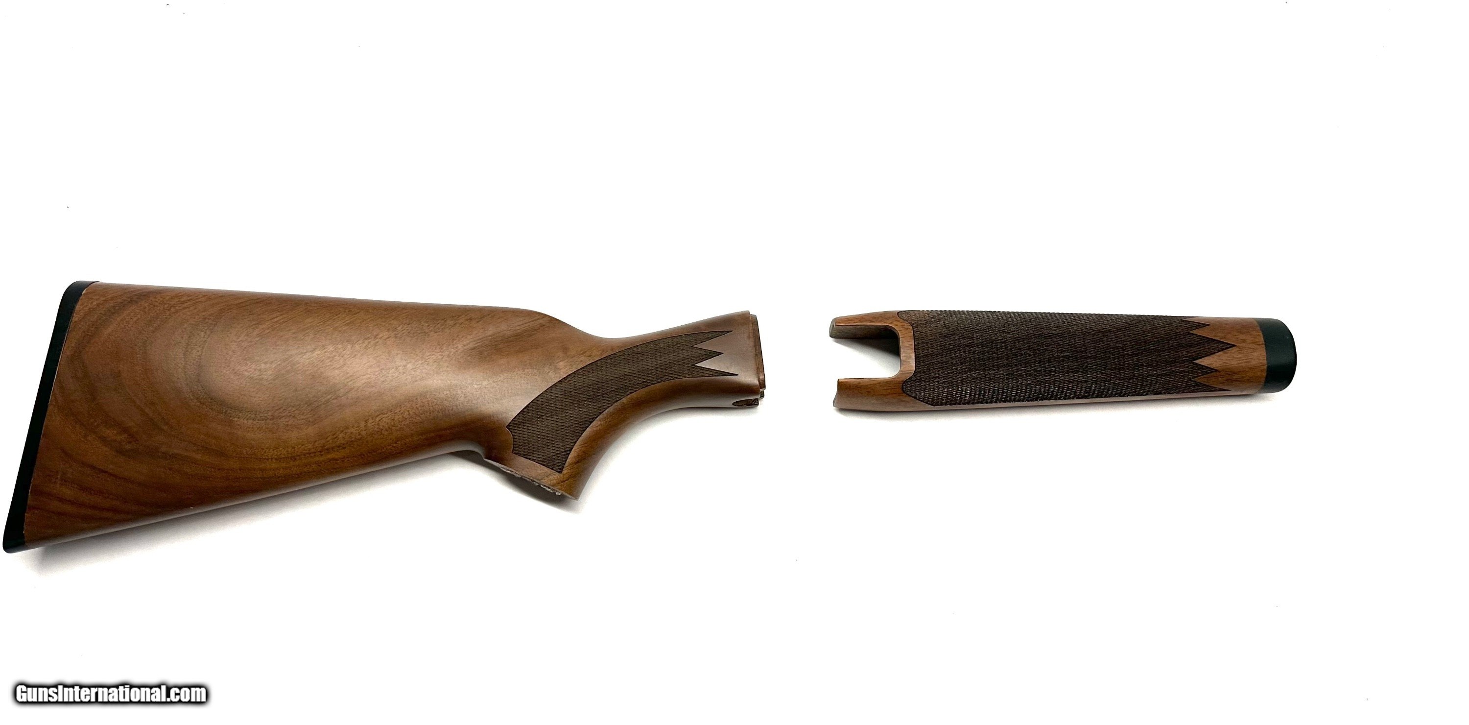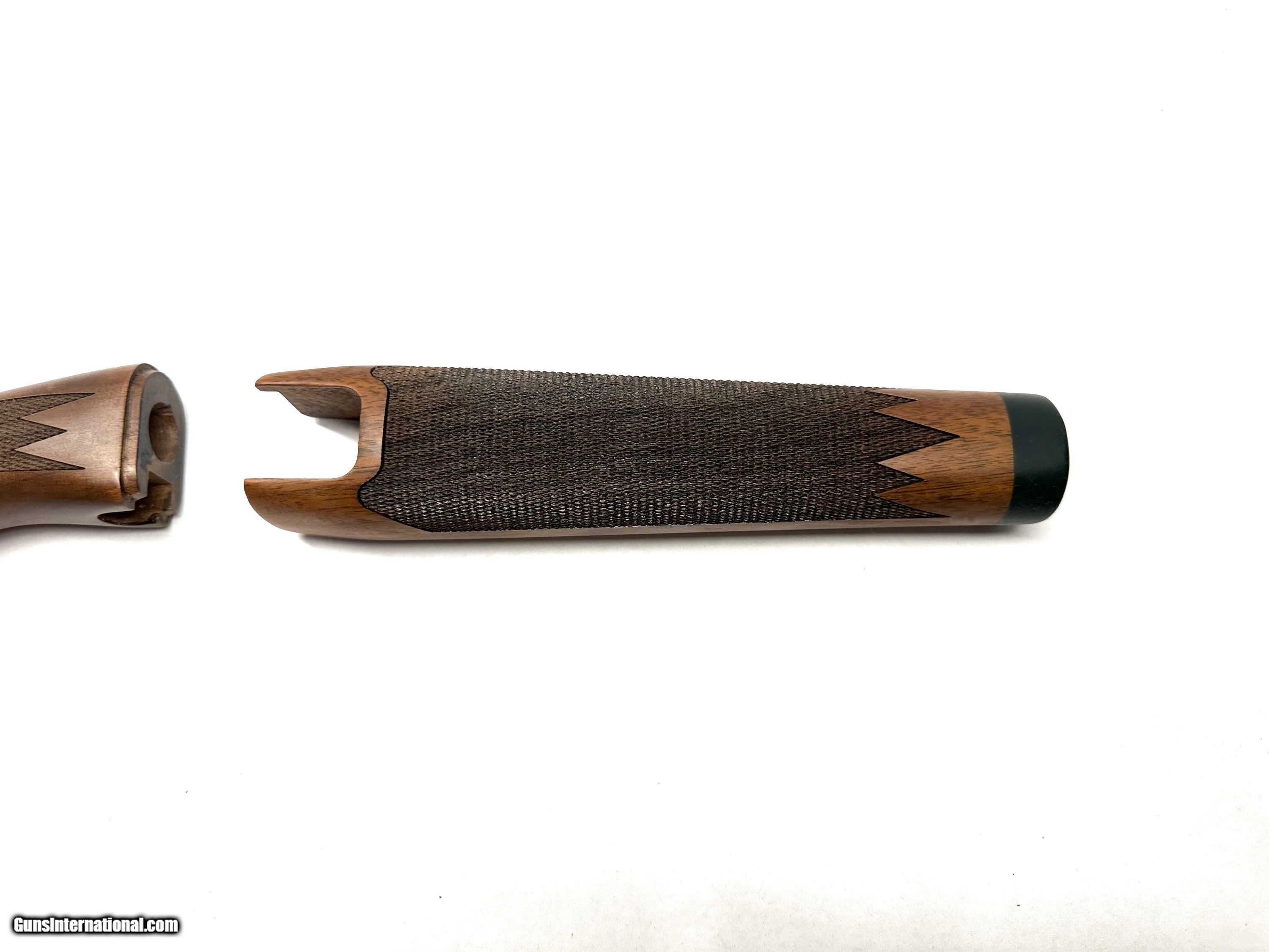 Description: This is a factory New Remington 7600 Stock set will fit Remington 760's that the foreend attaches with a screw in the end. Very Hard to find this matching set. Includes both the foreend and the butt stock. It is fitted with a two piece butt pad it just needs the butt pad insert that covers the stock bolt. Does not require any aditional stock fitting to your rifle. Just unbolt the old stock set and bolt on this new one. Does not include the black plastic Grip Cap.These can be purchased seperatly and installed at your home. Free Shipping and No Credit Card Fees. SOLD |