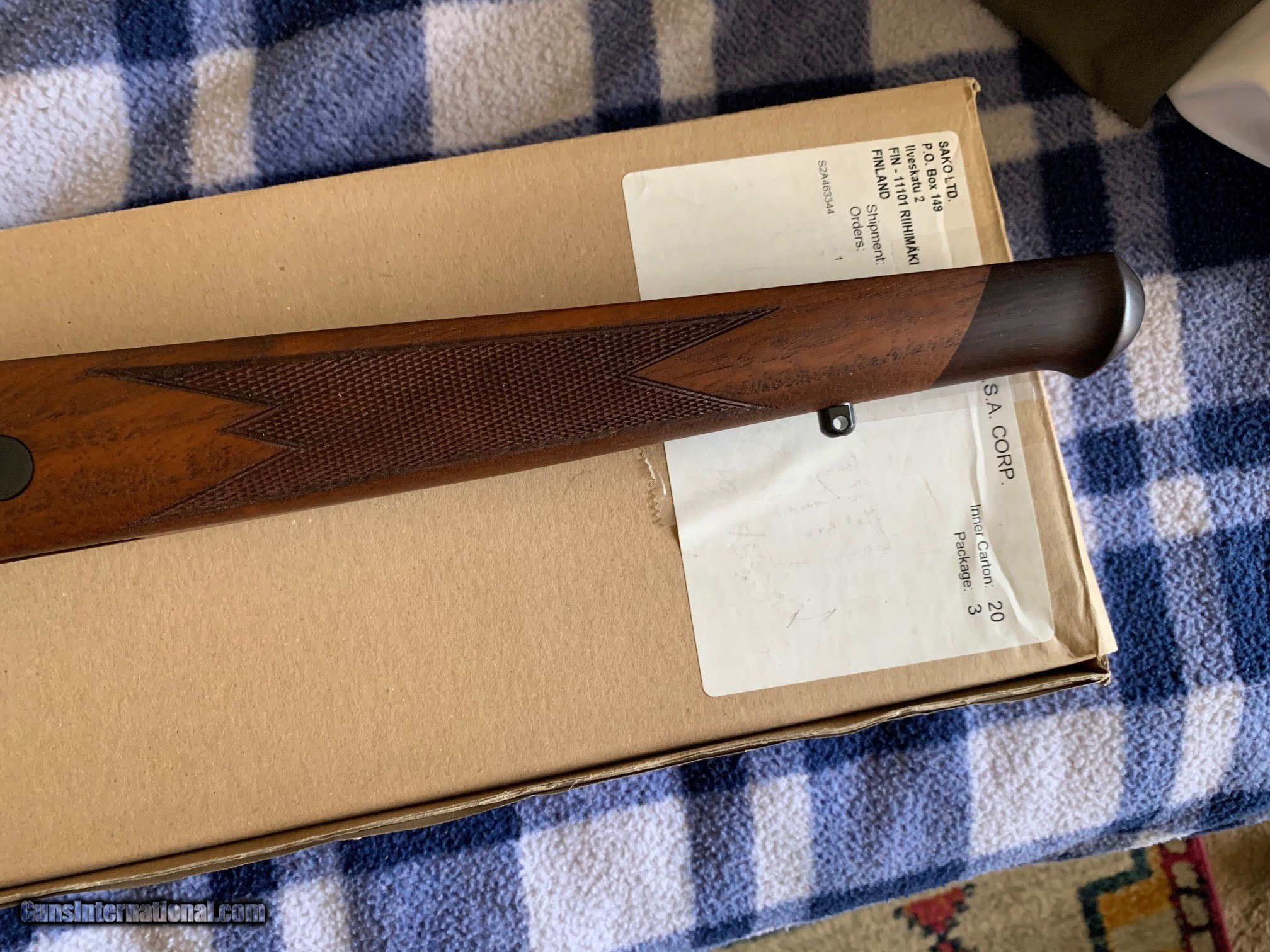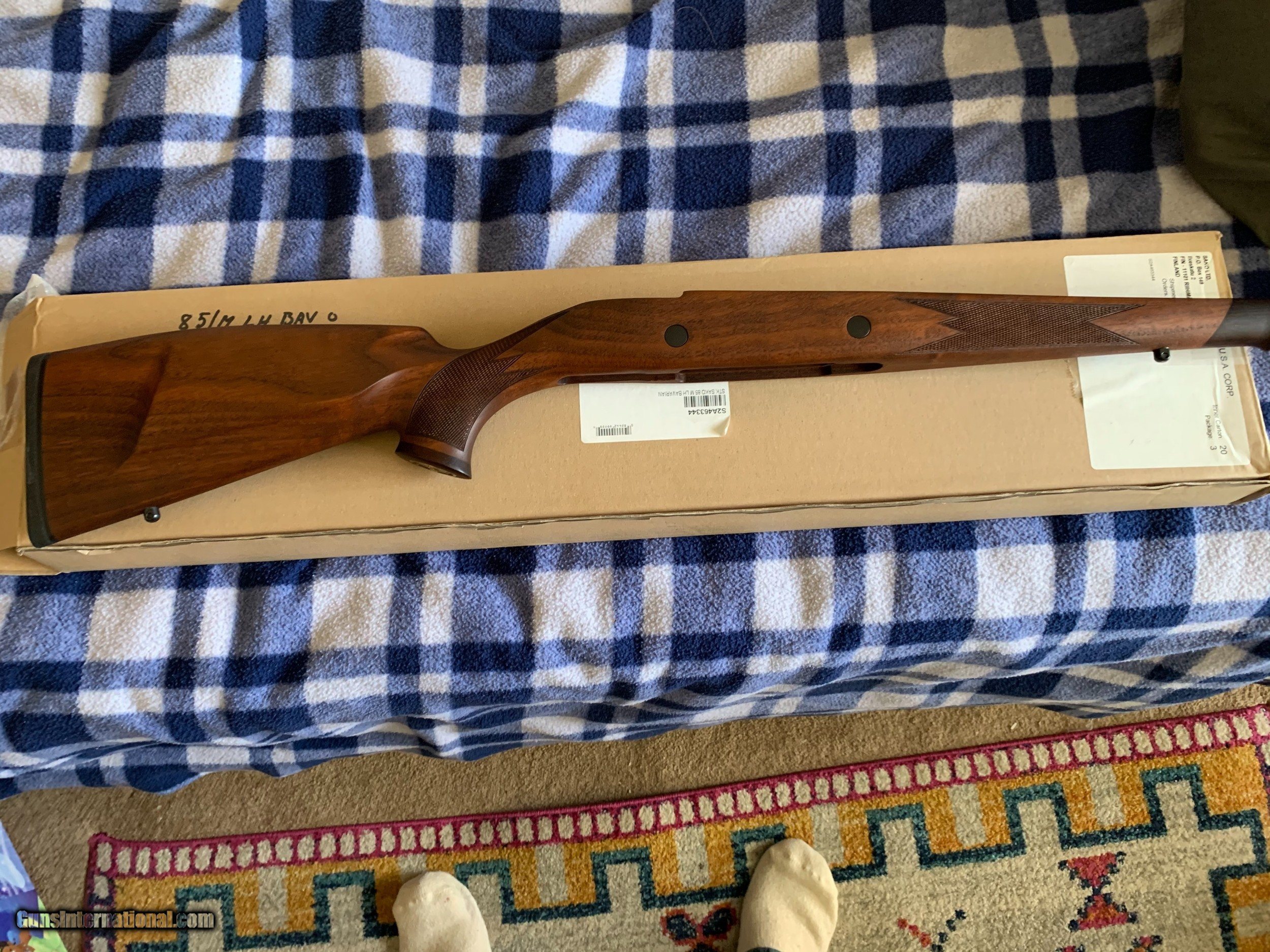 Description: Description: Sako 85 Left Hand Bavarian Stock, M Action. This walnut stock features rosewood accents at the schnabel forend and at the bottom of the pistol grip. The stock has an oil finish with factory checkering and features the unique Bavarian cheek piece and comb as well as a left hand palm swell. It comes with a factory installed recoil pad and sling swivel studs. The stock comes with the cross screw assemblies. Compatible with left handed Sako 85 rifles with the "M" action, this Sako factory original stock is great for replacing a broken stock or for changing to the Bavarian style. The barrel channel measures 0.795" at the most forward point and the hole spacing is approximately 7-1/2". This is a factory new Sako stock, however due to long term storage and transportation, some stocks may have a slight blemish or impression. Hole spacing: 192mm Manufacturer: Sako 215 589 8030 JOE $24 FEDEX SHIPPING WITH SIGNATURE REQUIRED Note: It is recommended that all Sako parts be installed by a factory authorized service center. PRODUCT SPECIFICATIONS: