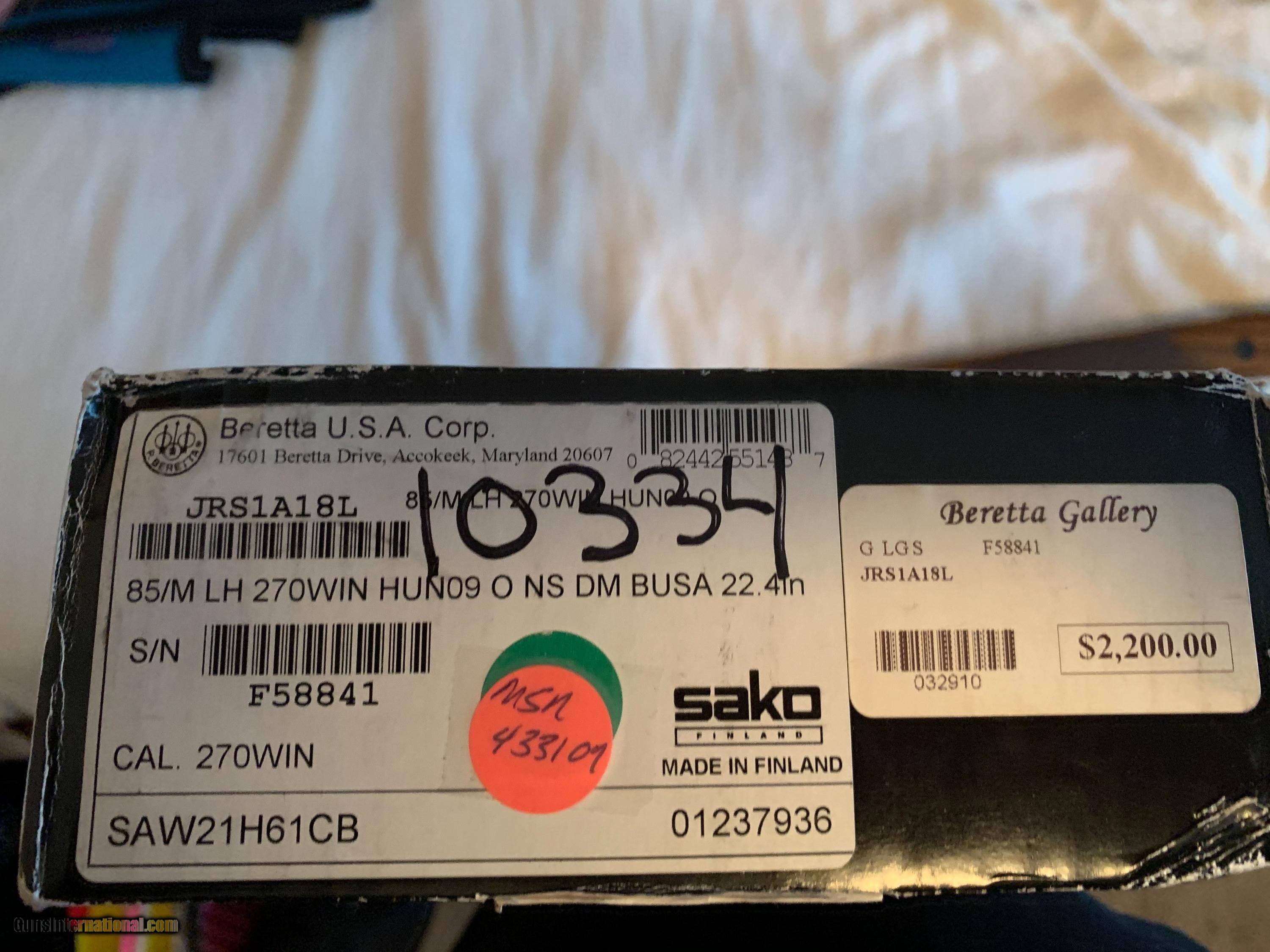 Description: ABSOLUTELY BEAUTIFUL SAKO 85 LEFT HAND HUNTER STOCK. MEDIUM ACTION FOR 25-06,270 WIN,30-06, 6.5X55,7X64,8X57,9.3X62 IT IS A TAKE OFF FROM MY SAKO BERETTA GALLERY GUN, THAT'S WHY THE BEAUTIFUL WOOD. IMPOSSIBLE TO FIND ANYWHERE Sako 85 Left Hand Hunter Stock, M Action. This walnut stock features an oil finish with factory checkering and the unique Hunter cheek piece and comb as well as a left hand palm swell. It comes with a factory installed recoil pad and sling swivel studs. REGULAR SAKO STOCKS ARE LISTED AT $600 TO $1000 DOLLARS ON LINE. PRICED TO SELL AT $399 PAYPAL ACCEPTED rx47msn 215 589 8030. Joe SOLD Rifle Caliber: .270 Winchester |