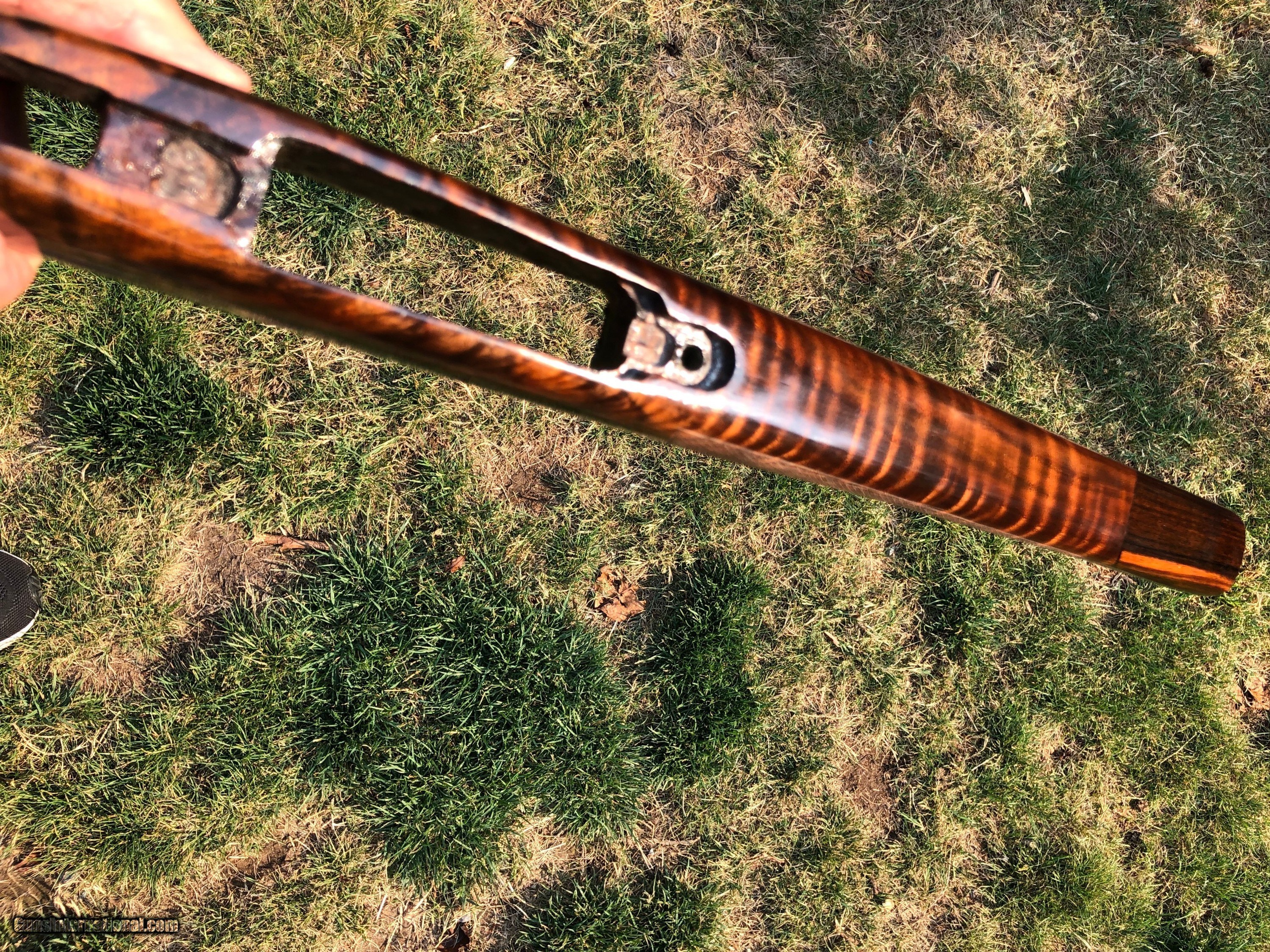 Description: This is a one of a kind hand made weahterby mark v stock. I make these stocks as a hobby. This one is made from a claro walnut exhibition grade blank. It has hand cut checkering, glass bedded, and the barrel will be free floated. This fits a Weatherby Mark V Magnum action, with a #3 or #2 contour barrel. it is Right Handed, with a 13.5" LOP. Thank you SOLD |