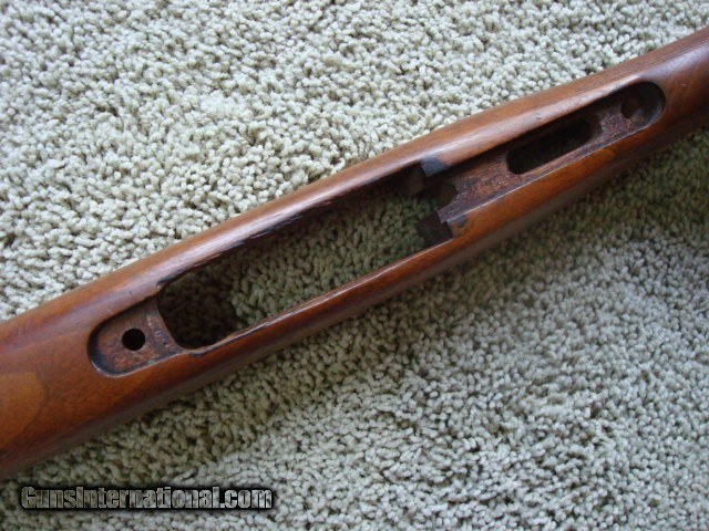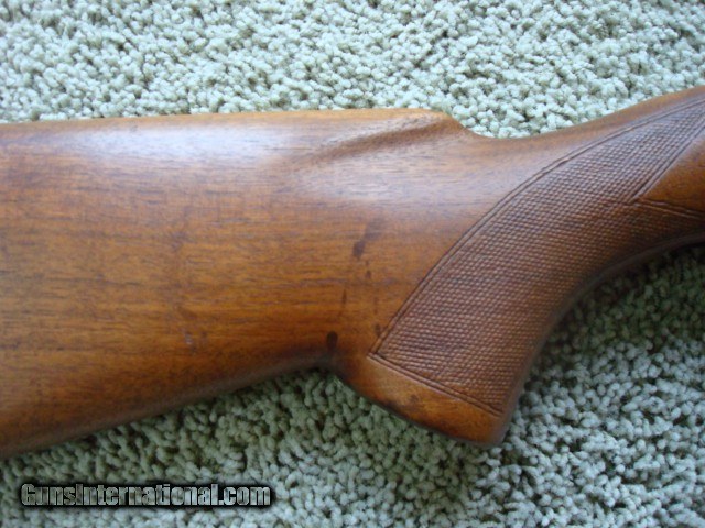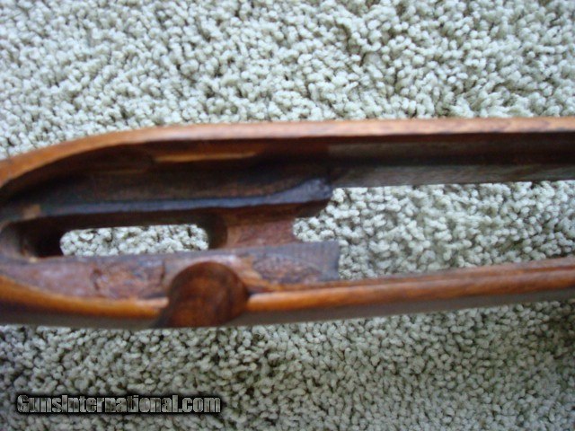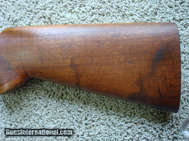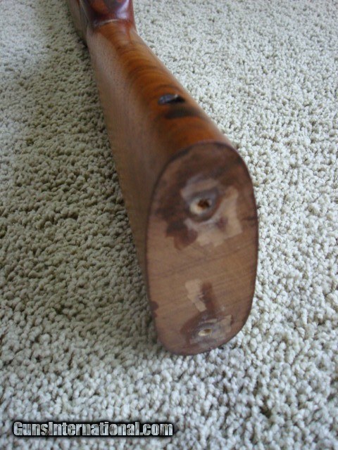 Description: This is a very nice stock for a project or just like it is. Does not have the solid red pad that came with it but it has not been cut. These are readily available. Has the standard partial crack in the wood between the trigger and magazine box. That is SOP for pre 64 stocks. Something has been spilled on the stock as shown in the photos. A refinish would be nice. Has a very, very, very small hairline crack 3/8" long out of the cloverleaf tang. Not a major problem but a small dab of bedding compound would insure no problem. This stock came off of a 300 H&H rifle. Checkering shows normal wear. Will ship in the lower 48 states for $25.00. SOLD |