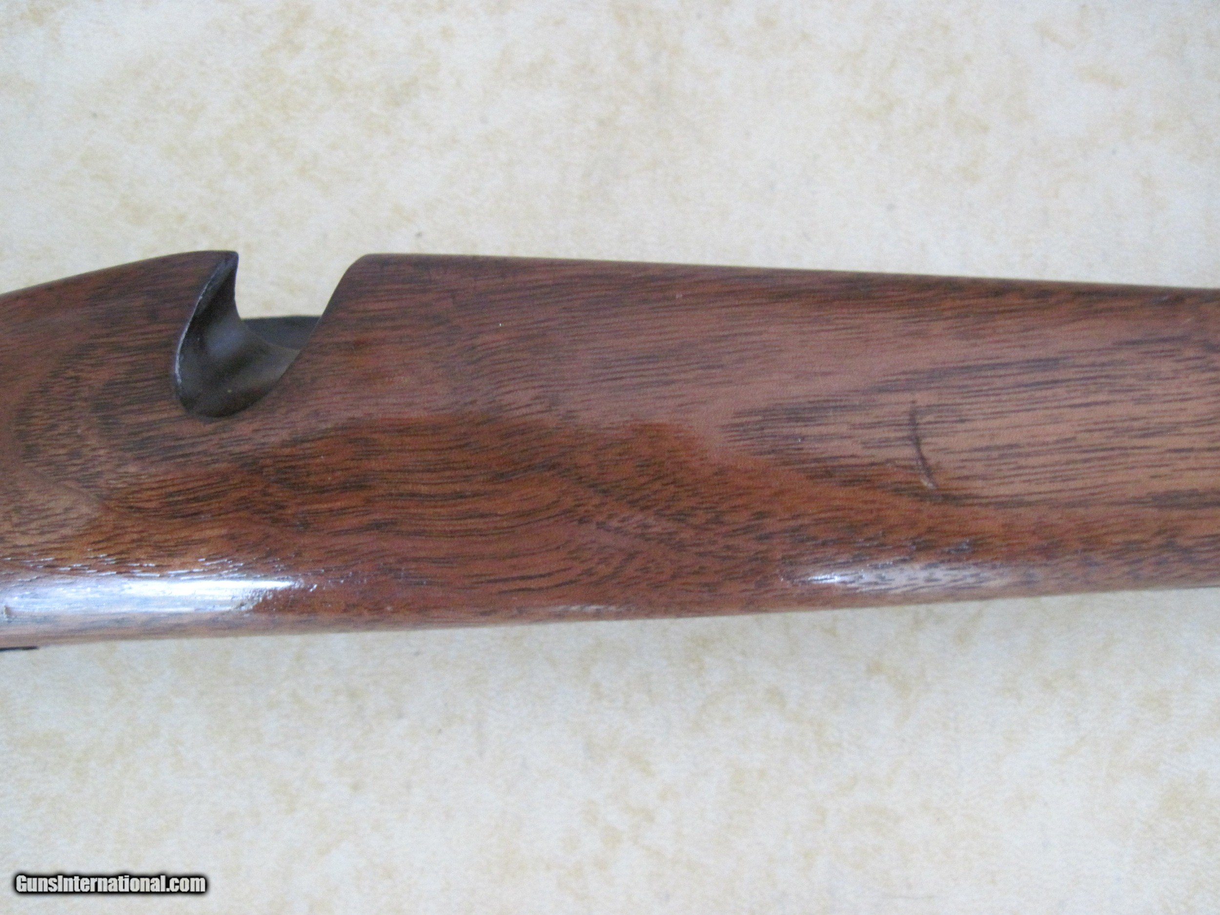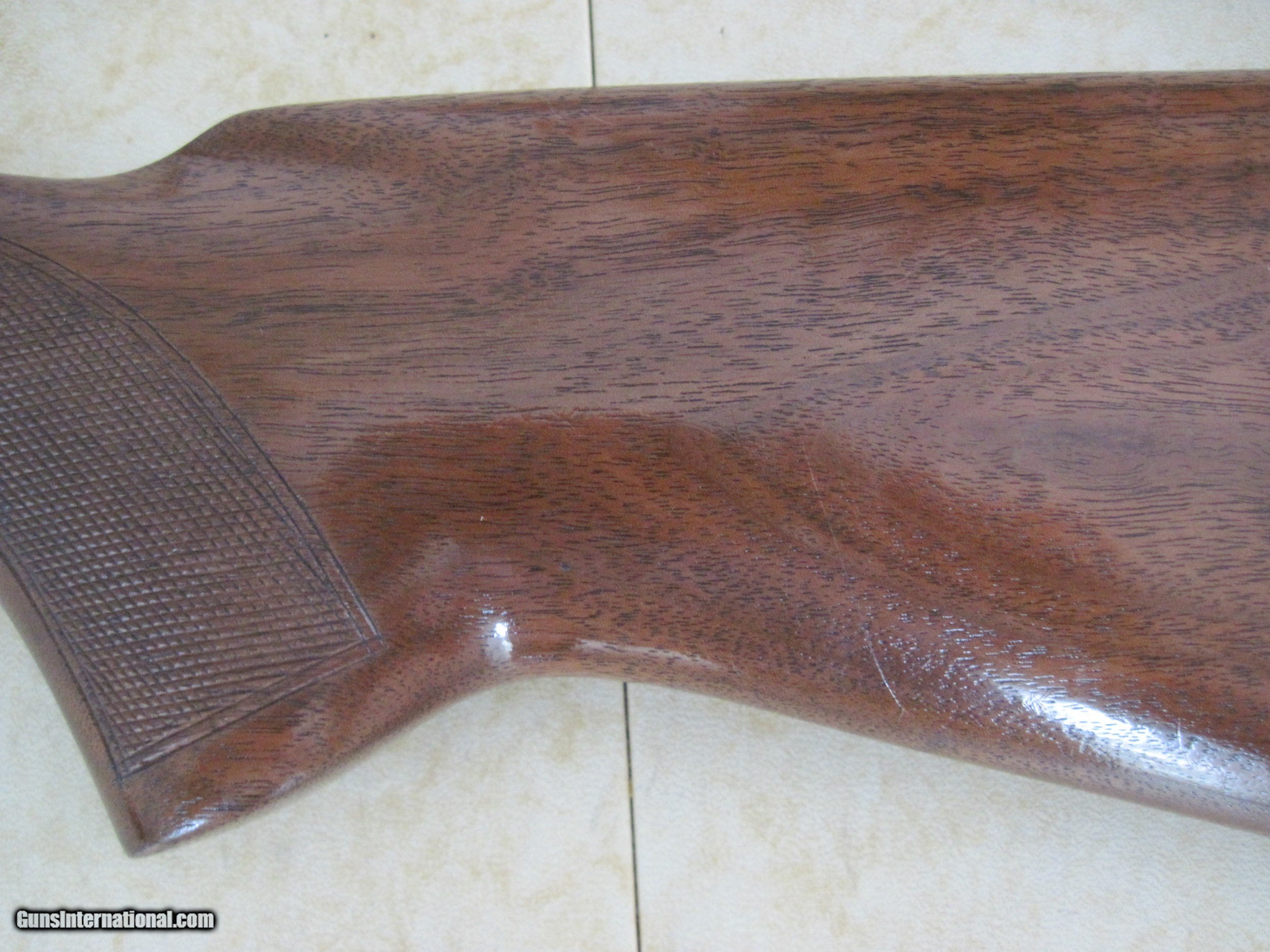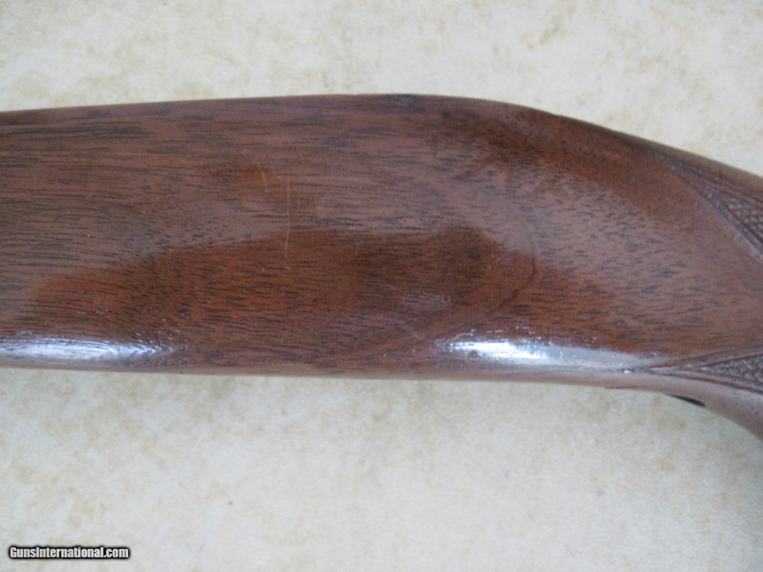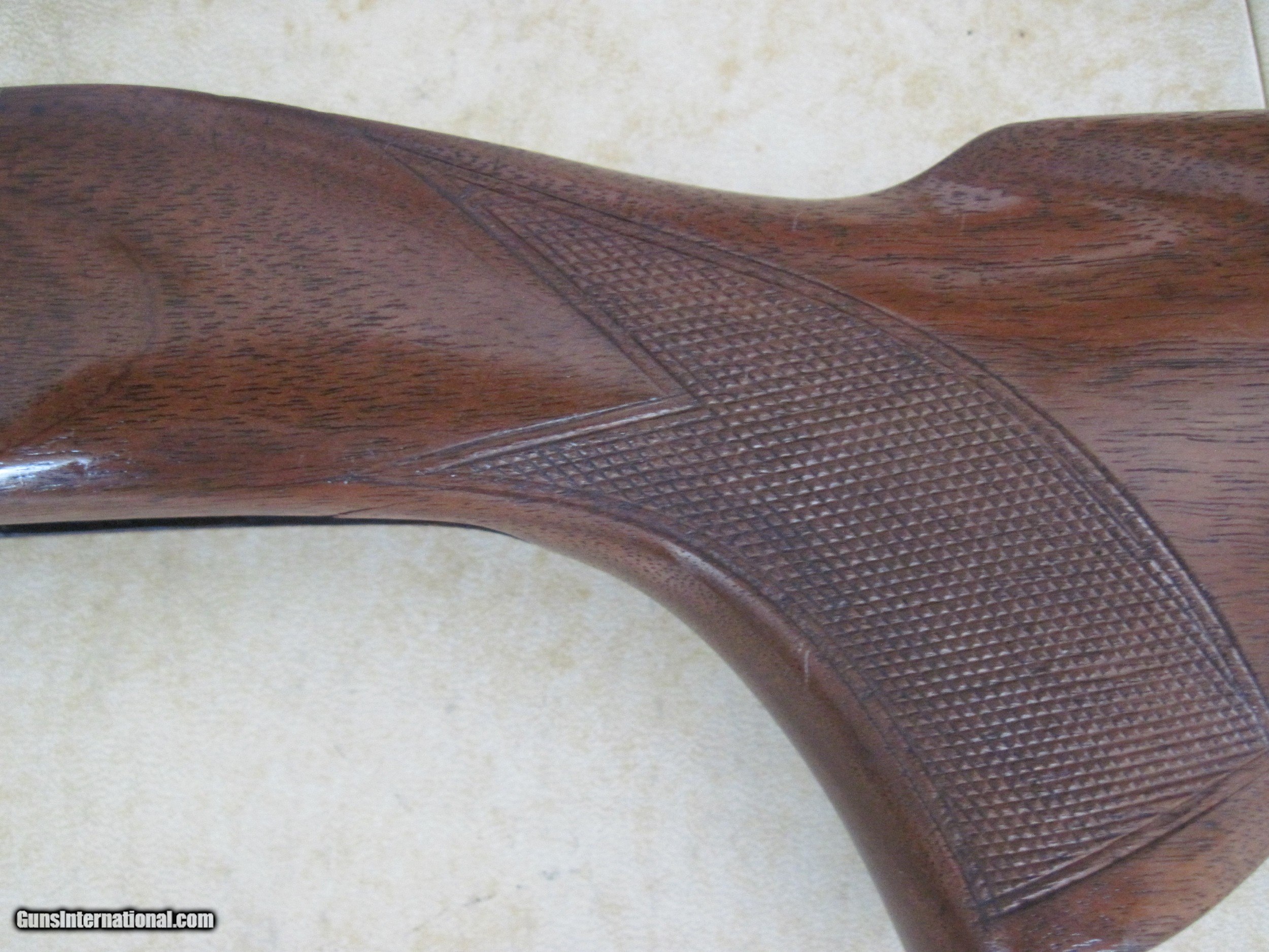 Description: For sale is a nice, clean, original American walnut stock from a Winchester Model 70, Pre 64, Caliber 30-06 Rifle. There are absolutely no cracks, deep scratches or mayor dings on this stock. There is one very small dent about 3/32 inch wide and about 1/32 inch deep on the left side where the two screws are for the Lyman Peep Sight. The Length of Pull is about 13 1/8 inch and the overall length is 31 1/2 inches to the end of the Decelerator Pad. This Stock is for any Winchester Pre 64, Standard Caliber, or Long Action, such as the 30-06 Springfield and the 270 Winchester. SOLD Rifle Caliber: .30-06 Springfield |