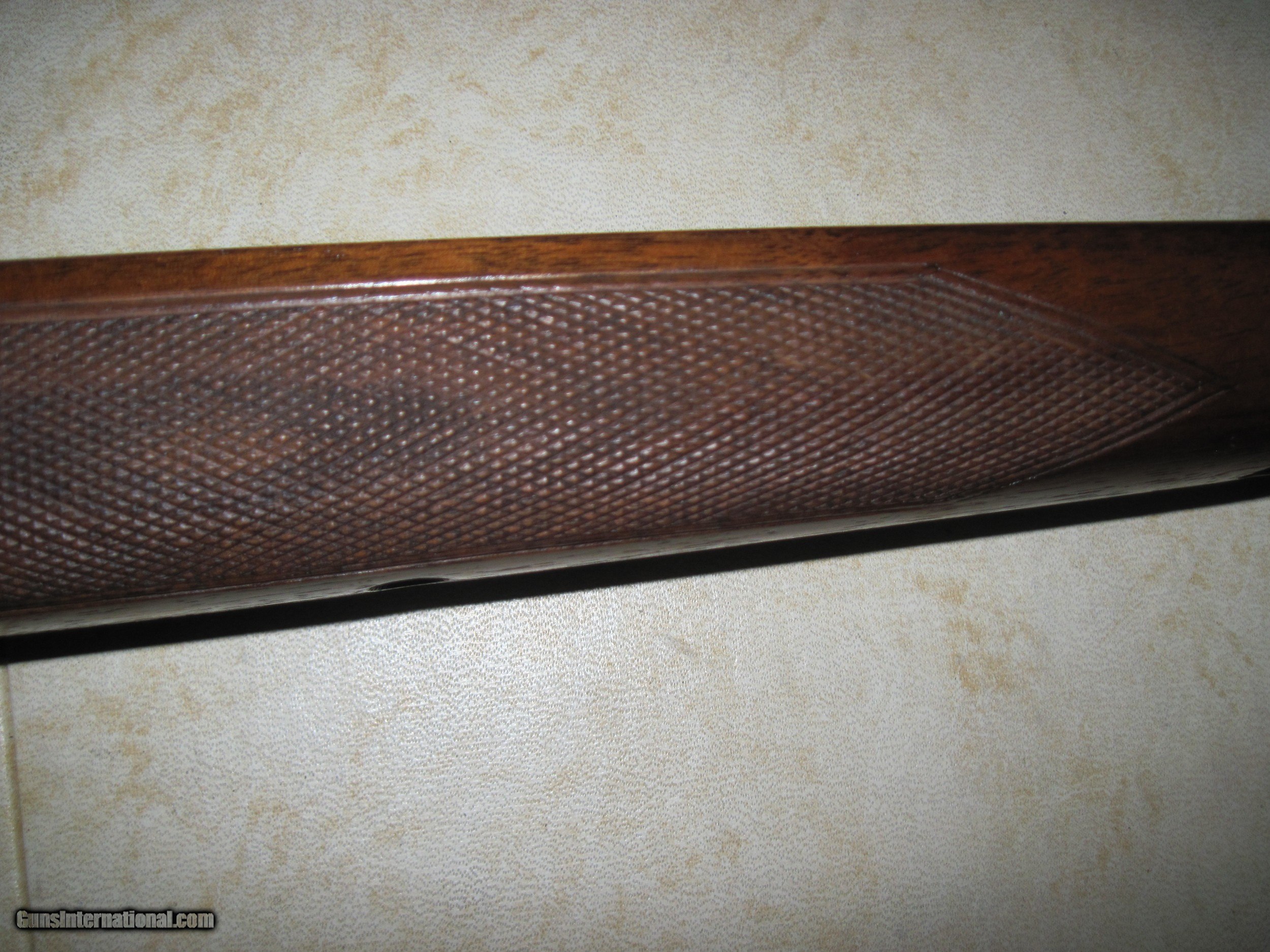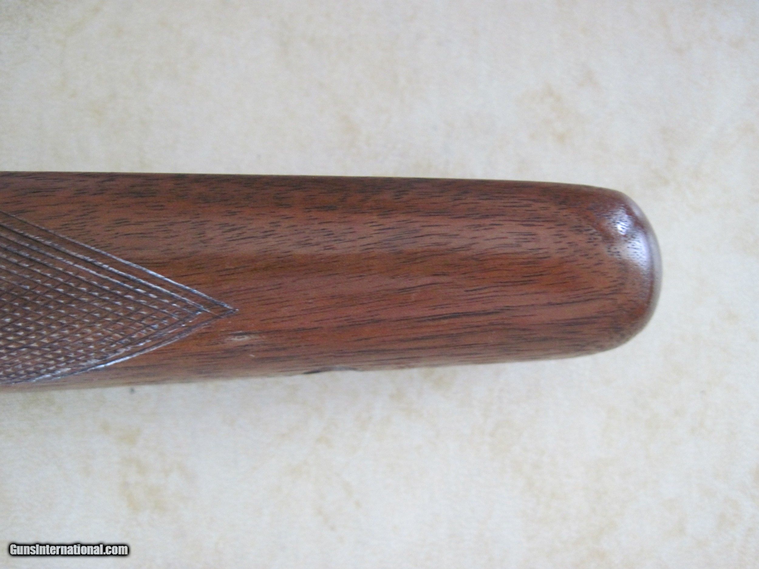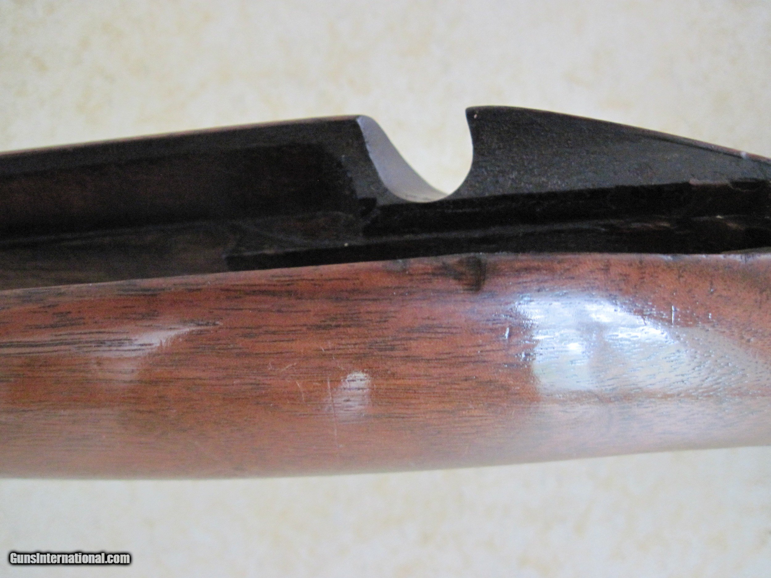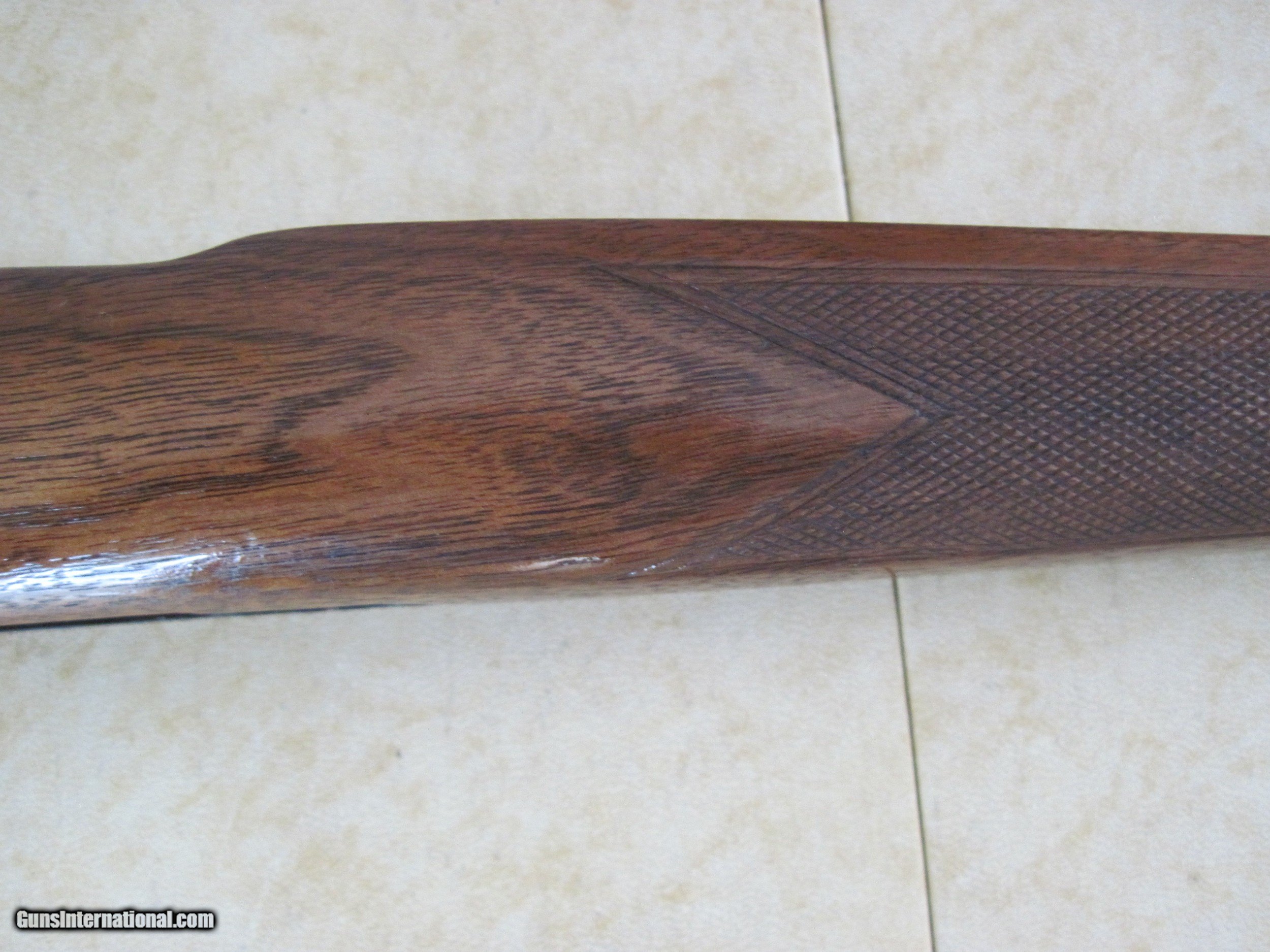 Description: For sale is a nice, clean, original American walnut stock from a Winchester Model 70, Pre 64, Caliber 30-06 Rifle. There are absolutely no cracks, deep scratches or mayor dings on this stock. There is one very small dent about 3/32 inch wide and about 1/32 inch deep on the left side where the two screws are for the Lyman Peep Sight. The Length of Pull is about 13 1/8 inch and the overall length is 31 1/2 inches to the end of the Decelerator Pad. This Stock is for any Winchester Pre 64, Standard Caliber, or Long Action, such as the 30-06 Springfield and the 270 Winchester. SOLD Rifle Caliber: .30-06 Springfield |