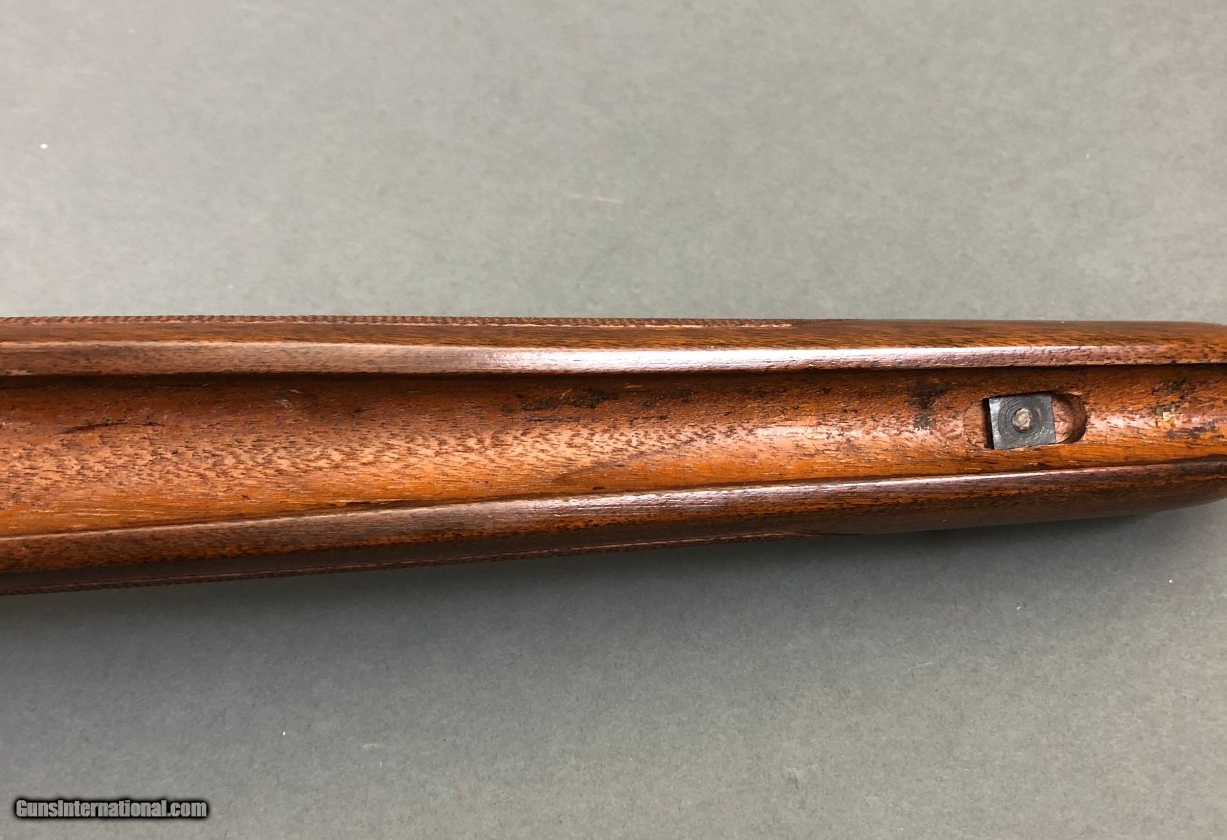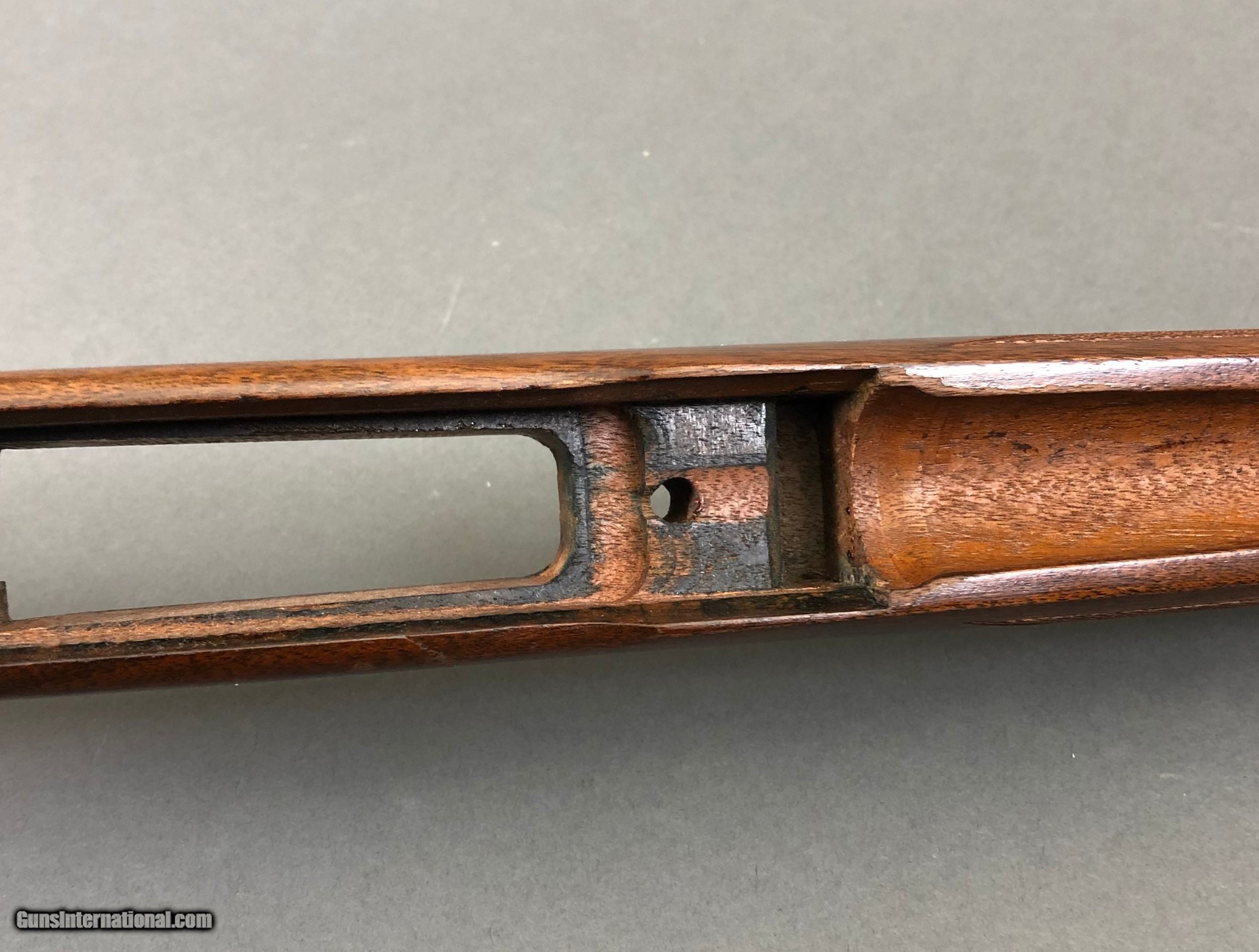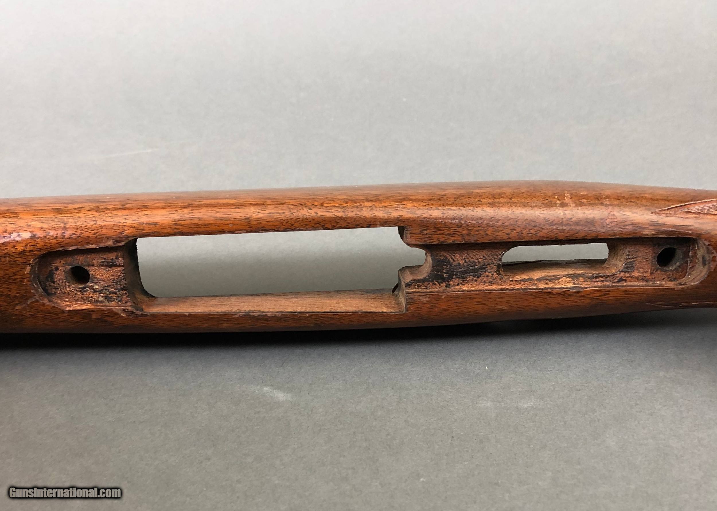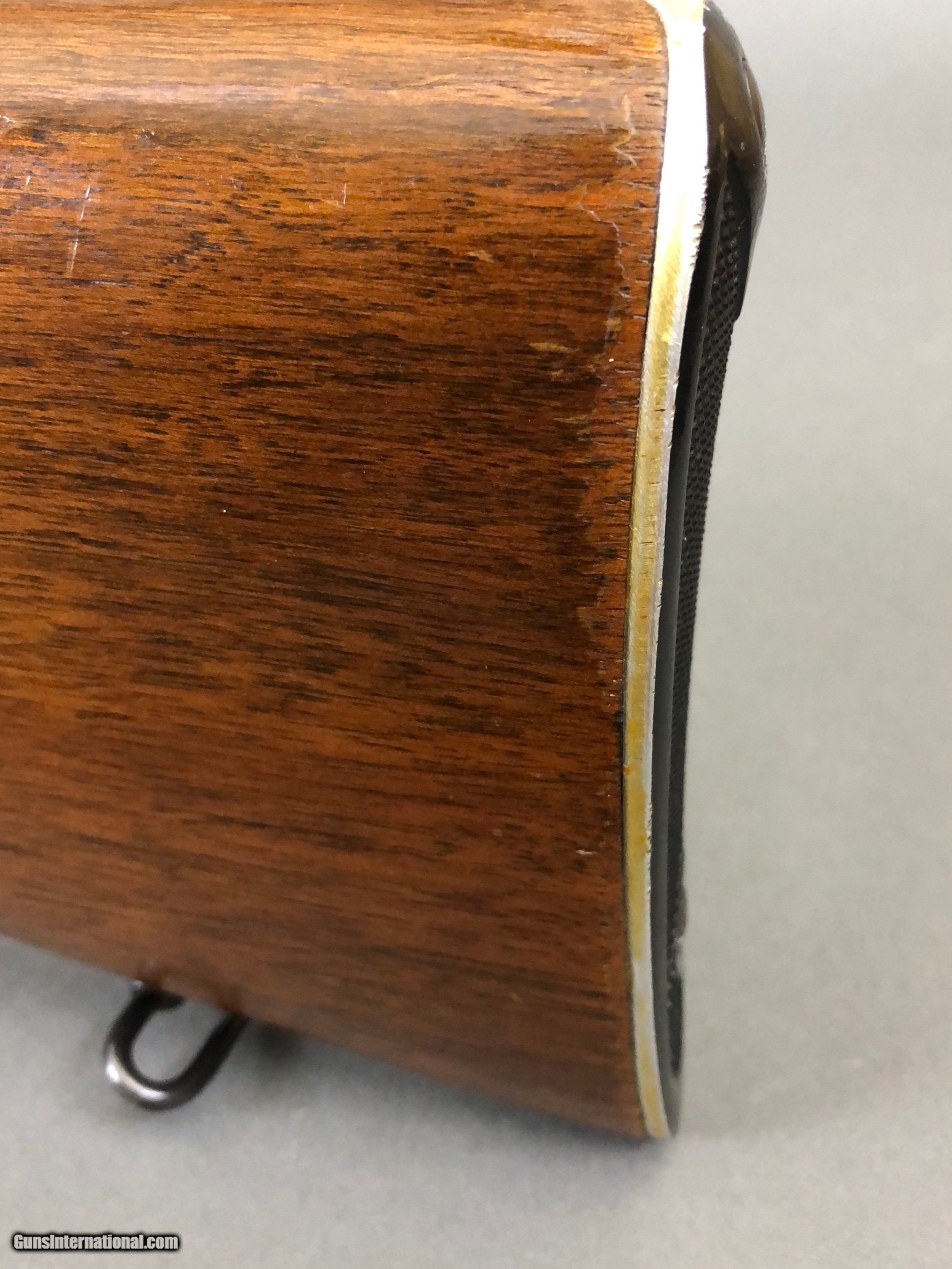 Description: Winchester Pre-64 Featherweight Model 70 low comb stock. I would rate it at 90-92% overall with minor dings and varnish flaking. The finish is original and the wood has no cracks. No alterations to the barrel channel. It was removed from a 30-06. Original alluminum butt plate included. SOLD |