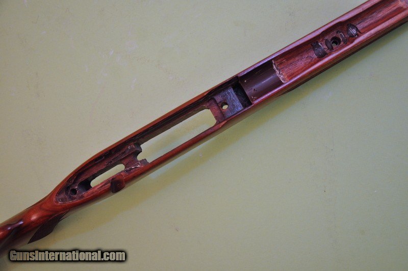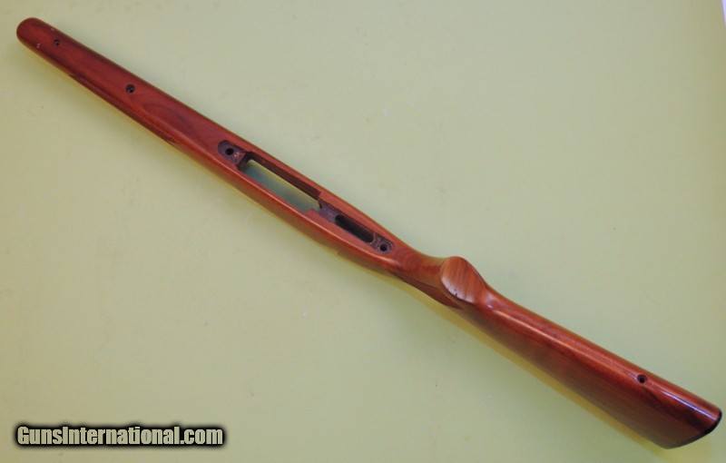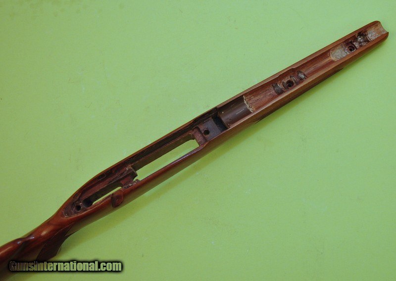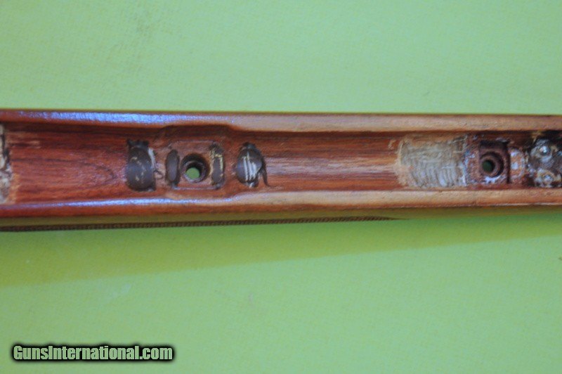 Description: Factory high comb Monte Carlo walnut stock. Late production narrow checkering pattern. Original plastic buttplate. Unsanded stock has a light coat of added finish over small marks. Barrel & action areas have added glass bedding with 2 screws inserted thru the bottom of the forend tip for accurizing purposes. SOLD |
