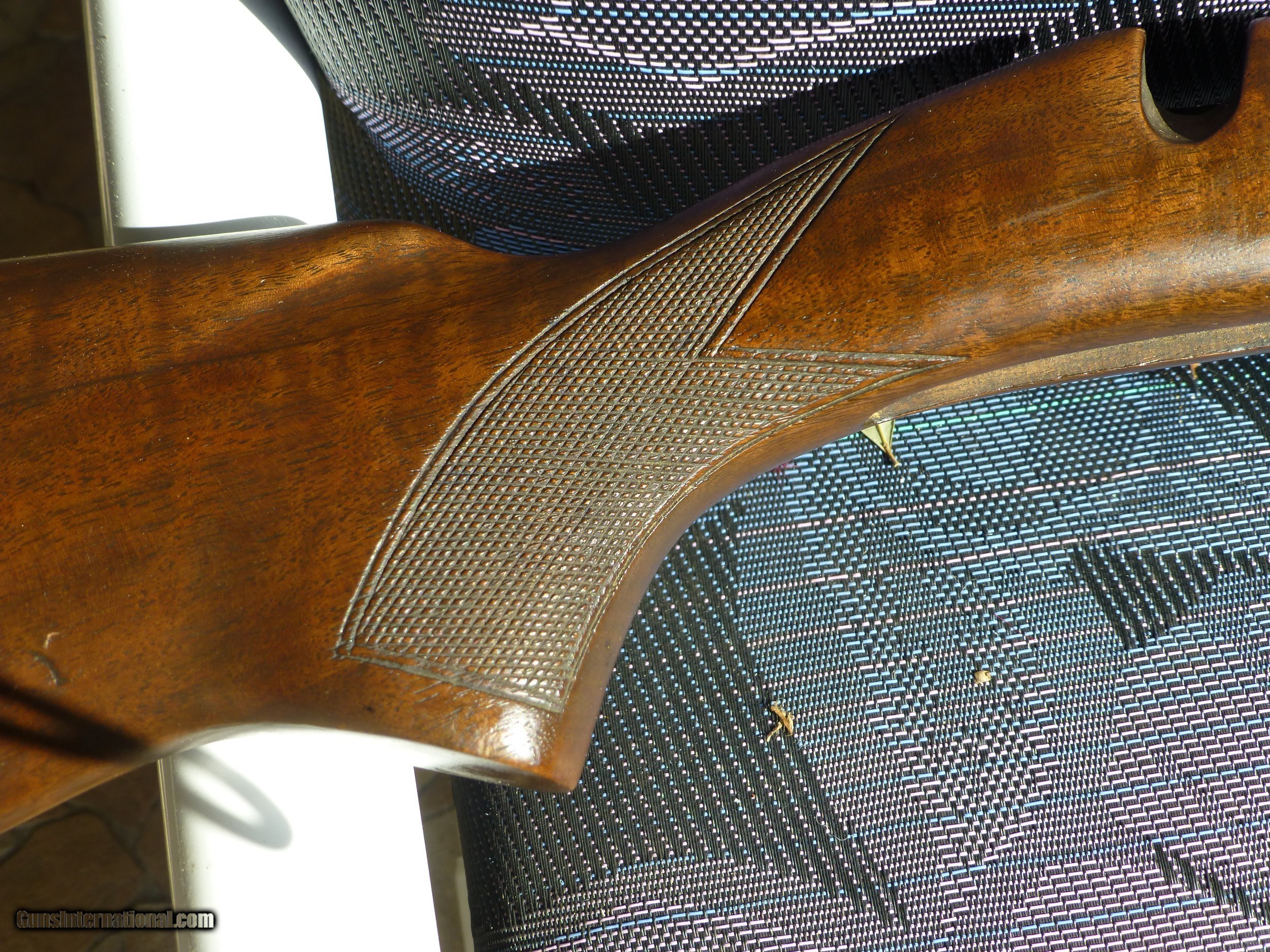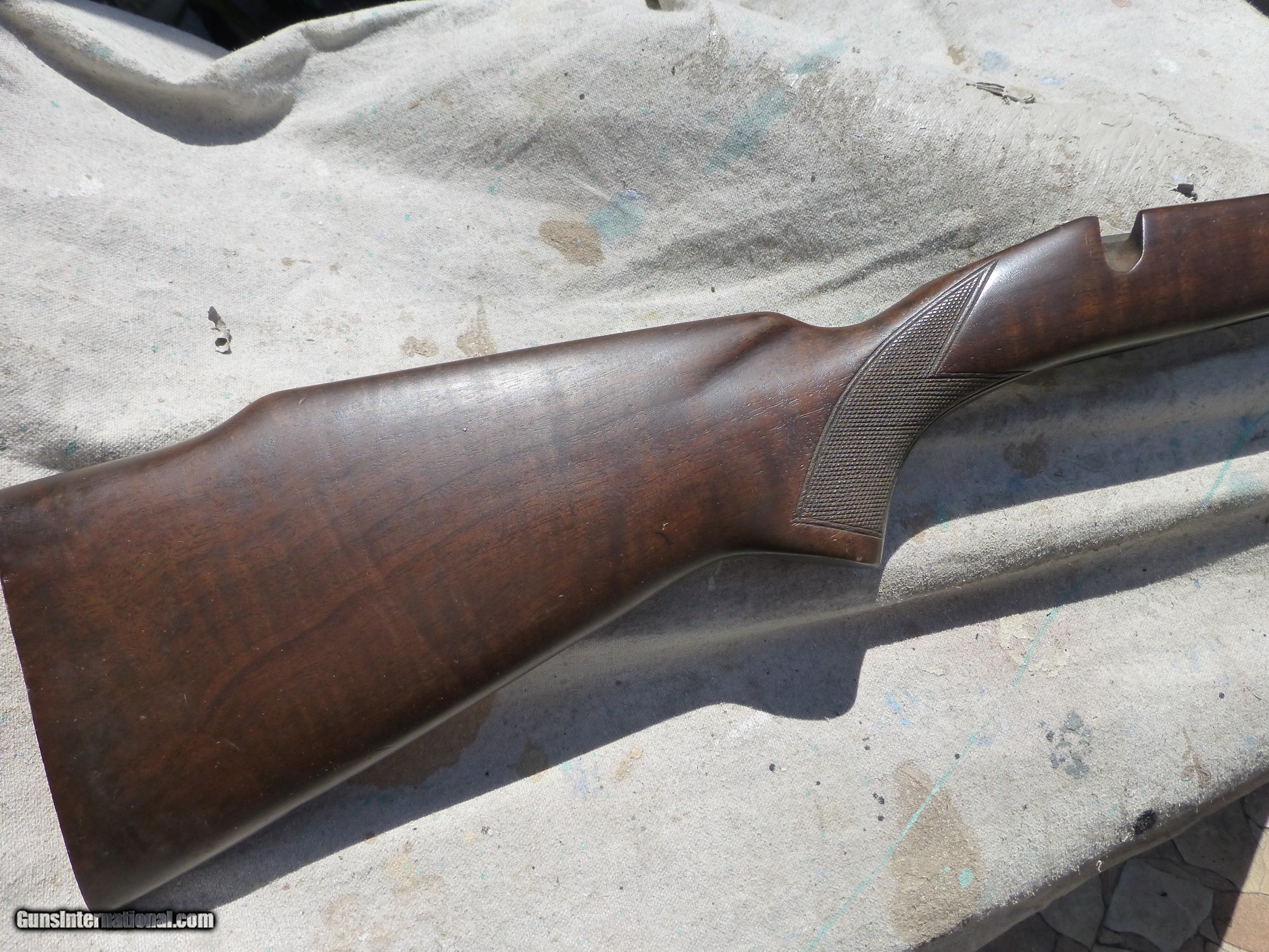Description: Original Winchester pre 64 model 70 stock monte carlo plastic butt model. Stock is in good shape with no holes or added glass bedding.. It was refinished at one time, the checkering is in good shape and the stock has normal handling marks. SOLD |