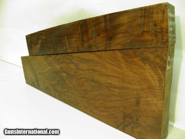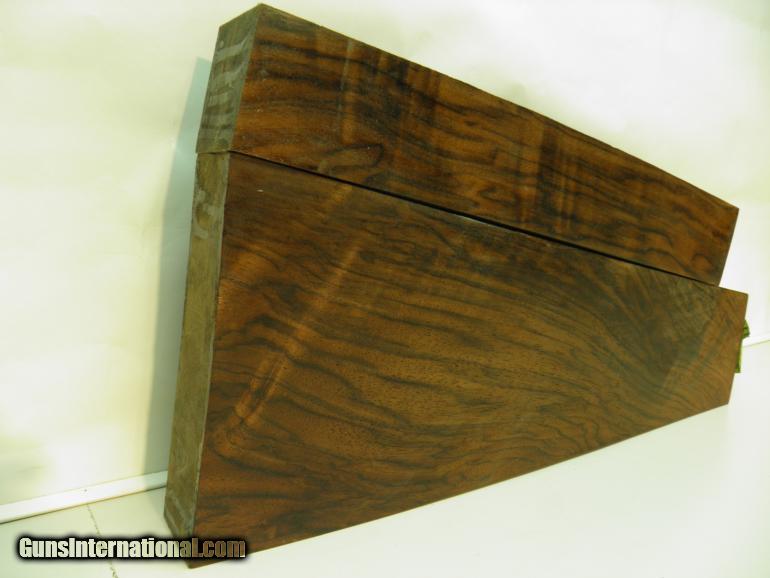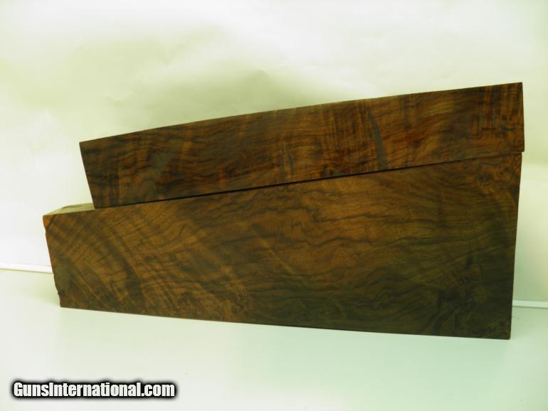 Description: AAA EXTRA FANCY CLARO WALNUT WITH BEAUTIFUL CURLY GRAIN. SPEC: LENGTH 18 1/2", BUTT WIDTH 7 1/2", FRONT WIDTH 4" X 2 1/4"" WIDE, FOREND LENGTH 15", 2 5/8" X 2 1/4" WIDE. SERVICES AVAILABLE FROM: "PERCISON STOCK DUPLICATING" OVER 20 YEARS EXPERIENCE IN QUALITY WORKMANSHIP WITH DETAIL PERFORMANCE IN "LAYOUT"-"FITTING"-"FINISHING"-AND-"CHECKERING" OUR EXPERTISE AND KNOWLEDGE SHOWS IN THE FINISHED PRODUCT! WE HAVE OVER 100 HIGH QUALITY SEASONED BLANKS ON HAND. CALL FOR BEST QUOTE. SOLD |