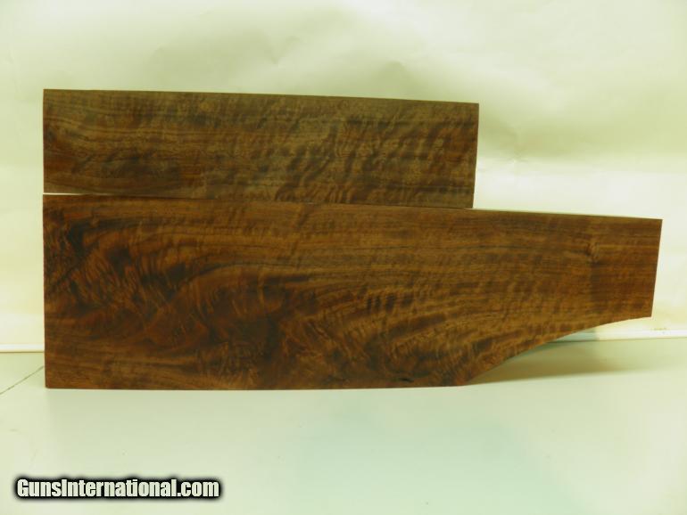 Description: AAA VEXTRA FANCY CLARO WALNUT WITH SOME FEATHER AND CROTCH FIGURE,SPEC: LENGTH 18", BUTT WIDTH 5 3/4", FRONT WIDTH 3", X 2 1/2" WIDE,FOREND LENGTH 12 3/4", 3" HIGH X 2 1/2" WIDE. SERVICES AVAILABLE FROM: "PRECISION STOCK DUPLICATING" OVER 20 YEARS EXPERIENCE IN QUALITY WORKMANSHIP WITH DETAIL PERFORMANCE IN "LAYOUT"-"FITTING"-"FINISHING"-AND -"CHECKERING" OUR EXPERTISE AND KNOWLEDGE SHOWS IN THE FINISHED PRODUCT! WE HAVE OVER 100 HIGH QUALITY SEASONED BLANKS ON HAND. CALL FOR BEST QUOTE. SOLD |