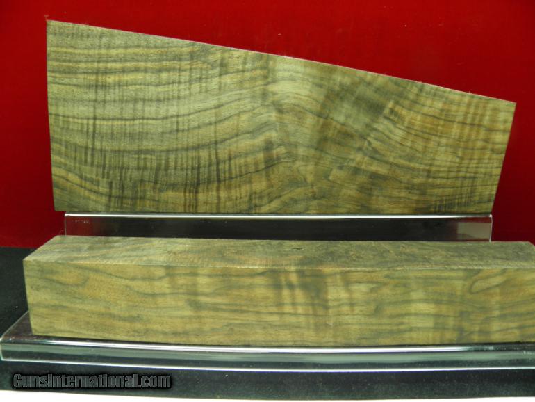Description: AAA FANCY GRADE CURLY CLARO WALNUT WITH WILD WAVEY STRIPES AND FIDDLE-BACK,2 PIECE GUN BLANK SET. MEASURMENTS BUTT LENGTH 18 1/4", BUTT WIDTH 7 1/2",FRONT WIDTH 4 1/2", THICKNESS 2 1/4", FOREND LENGTH 16 1/2", 2 1/2" X 2 1/4" THICKNESS. "SERVICES AVALIBLE" FROM "PRECISION STOCK DUPLICATING" OVER 20 YEARS EXPERIENCE IN QULAITY WORKMANSHIP WITH DETAIL PERFORMANCE IN "LAYOUT"-"FITTING"-"FINISHING"-"CHECKERING" OUR EXPERTISE AND KNOWLEDGE SHOWS IN THE FINISHED PRODUCT! CALL FOR A QUOTE THAT SMOKES THE REST. SOLD |
