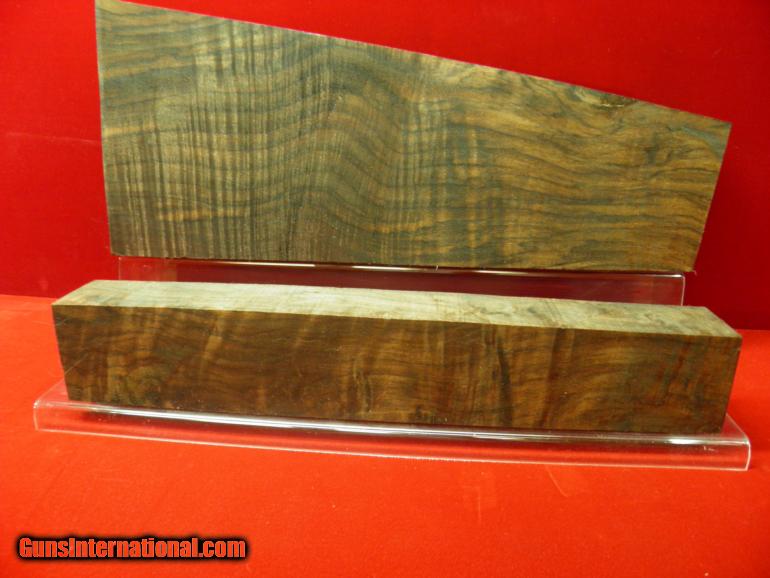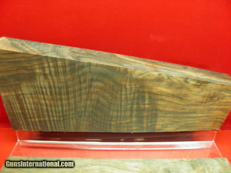 Description: AAAA EXHIBITION CURLY FIDDELBACK HYBRID ROYAL BLACK WALNUT 2 PIECE GUNSTOCK BLANK BEAUTIFUL TIGHT WAVY GRAIN FLOW WITH FIDDLEBACK AND SOME FEATHER PATTERN, NICE BOLD COLOR. MEASURMENTS LENGTH 18"/ BUTT WIDTH 7-3/4" / FRONT WIDTH 5" WIDE 2 1/4" FOREND LENGTH 16-1/2" / 2-1/2"X 2-1/2" SERVICES AVAILABLE FROM "PRECISION STOCK DUPLICATING" OVER 20 YEARS EXPERIENCE IN QUALITY WORKMANSHIP WITH DETAIL PERFORMANCE IN "LAYOUT"-"FITTING"-"FINISHING"-AND"CHECKERING" OUR EXPERTISE AND KNOWLEDGE SHOWS IN THE FINISHED PRODUCT!! CALL FOR QUOTE: THANKS MIKE SOLD |