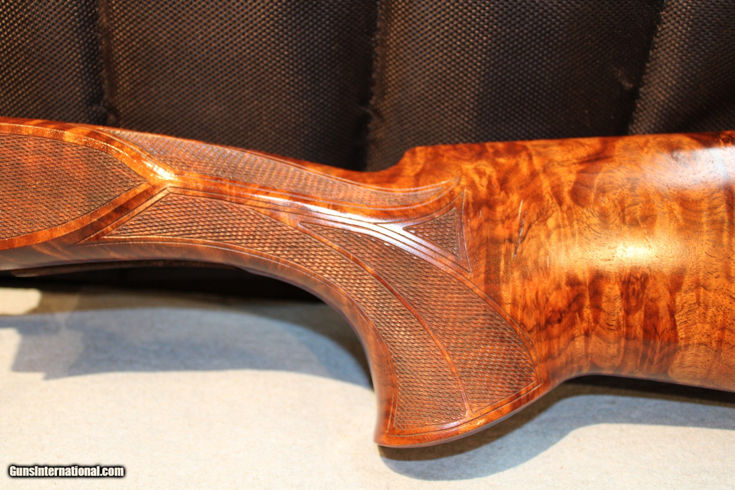 Description: I built this stock perazzi mxs stock, (fixed trigger group) a few years back. It has been used very little, client shot maybe one flat of shells through it. It has a brand new isis unit and a .9 thick Kickeez pad on it now. The stock feels really great and has a lot of checkering for a non slip feel to the wood. The finish is Waterlox, ie.,tung oil and phenalic resin, beautiful and durable Really beautiful, well balanced stock with cool lines, the turkish blank for this gun's cost was 1700.00 from Cecil Fredi in Las Vegas. The total length of the stock with pad and unit is 16 and 7/8 nealbaudercustomgunmaker SOLD Shotgun Gauge: 12 Gauge |