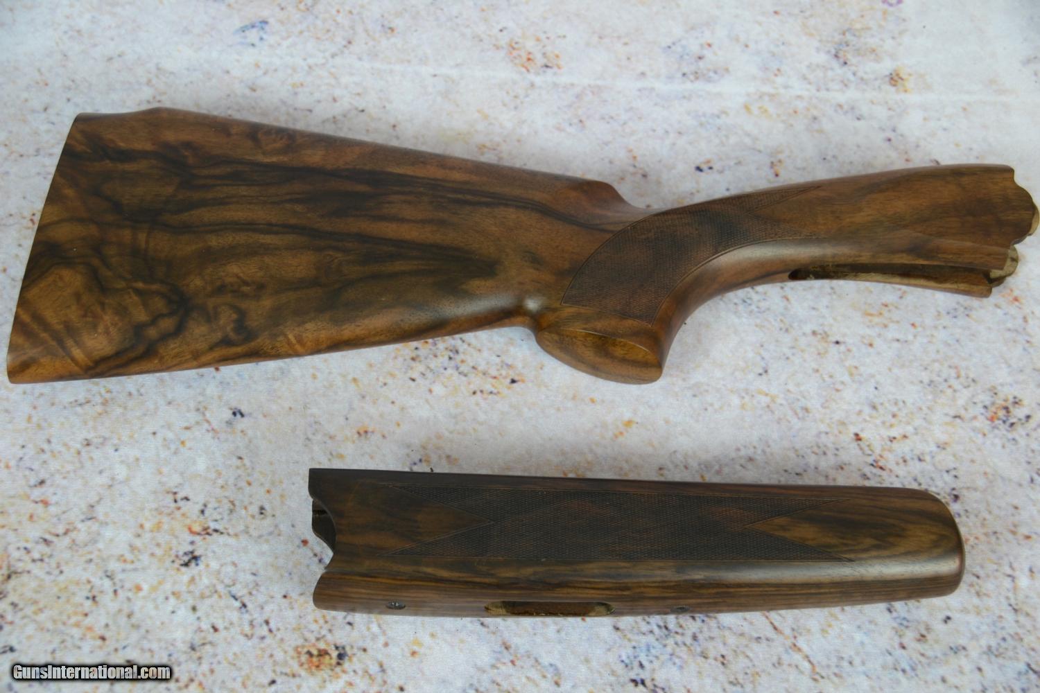 Description: Beretta 686,687,682 12ga Sporting Serial#FL12045 Right hand Parallel Sporting AA wood grade Dimensions: 1 5/8" X 1 5/8" X 2 1/8" This Woodset is located in our Florida store, please call 239-352-0345 for more information. This set should be fit to your gun by a qualified professional. SOLD |