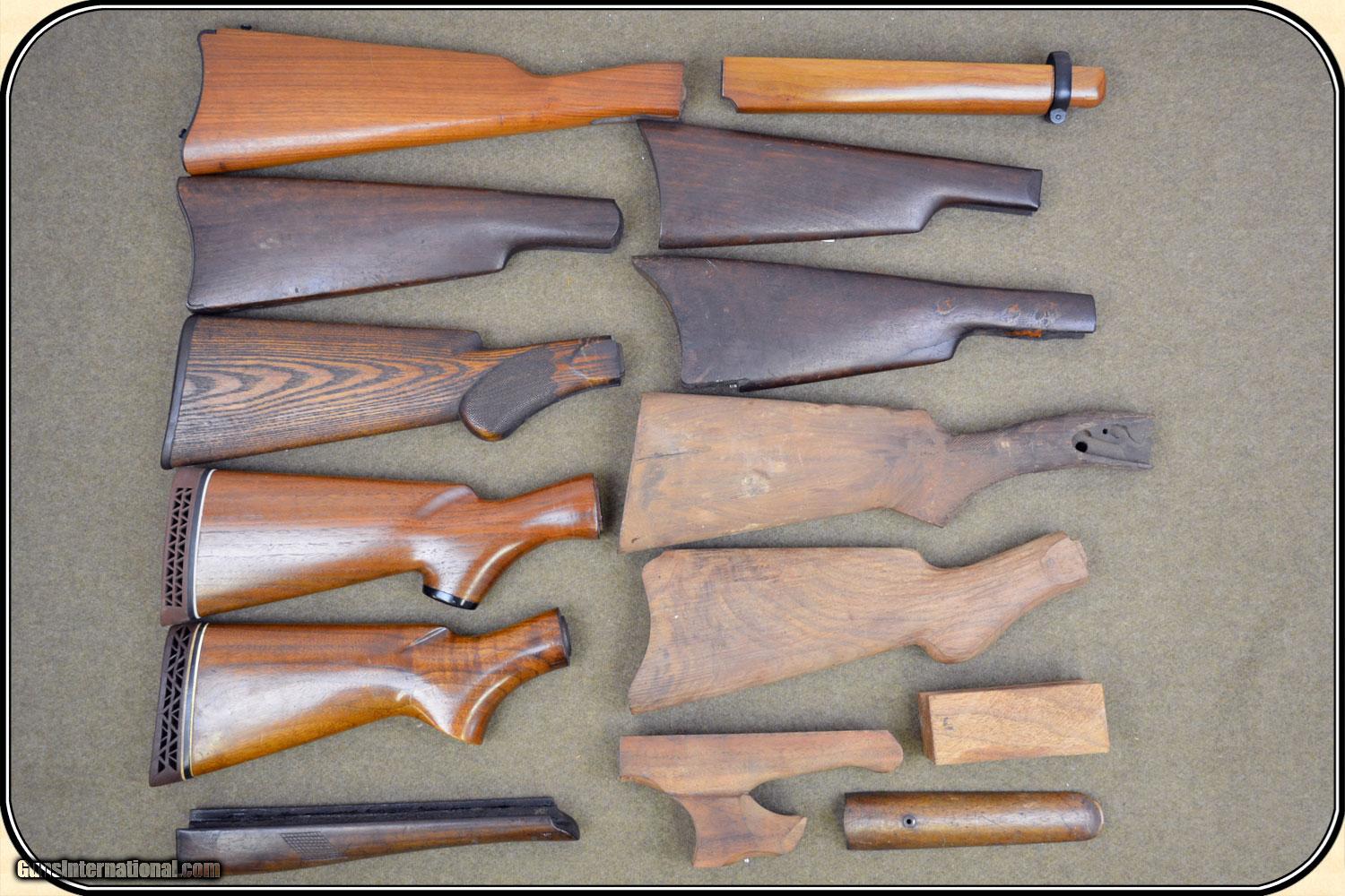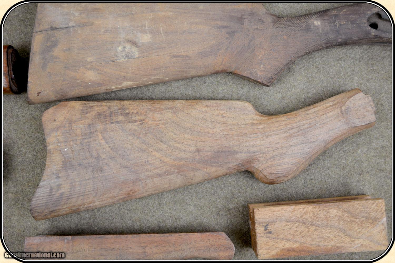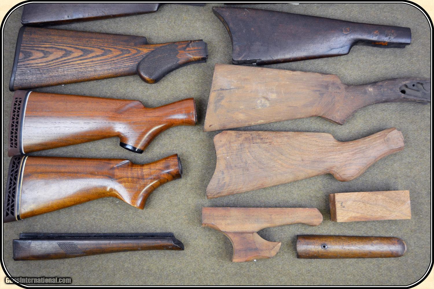 Description: Assorted stock wood, 2- Remington Hepburn stocks, 1- Winchester Super X model 1, 1- Winchester model 12, and 5 other assorted stocks and forearm pieces. No major breaks or cracks. I am unable to tell you more. At this price they are not returnable for any reason. PAYMENT Cash, postal money order, cashiers check, personal & business checks. May order at riverjucntion on-line with credit card. SOLD |