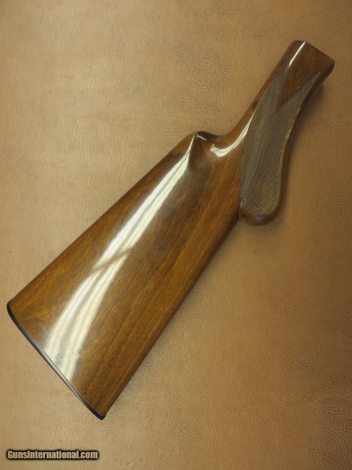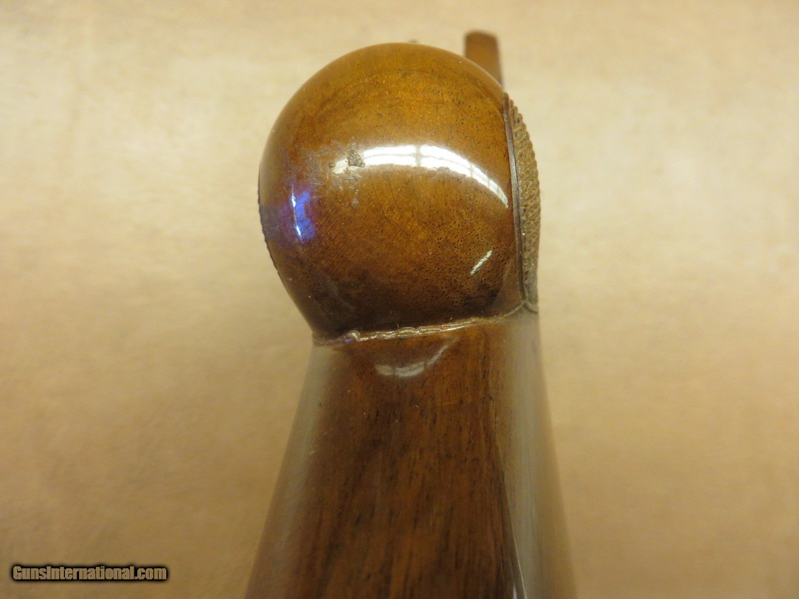 Description: Factory high gloss checkered walnut with original butt plate. Very solid repair from behind the round knob pistol grip to the middle of the upper tang. 95% finish. SOLD |