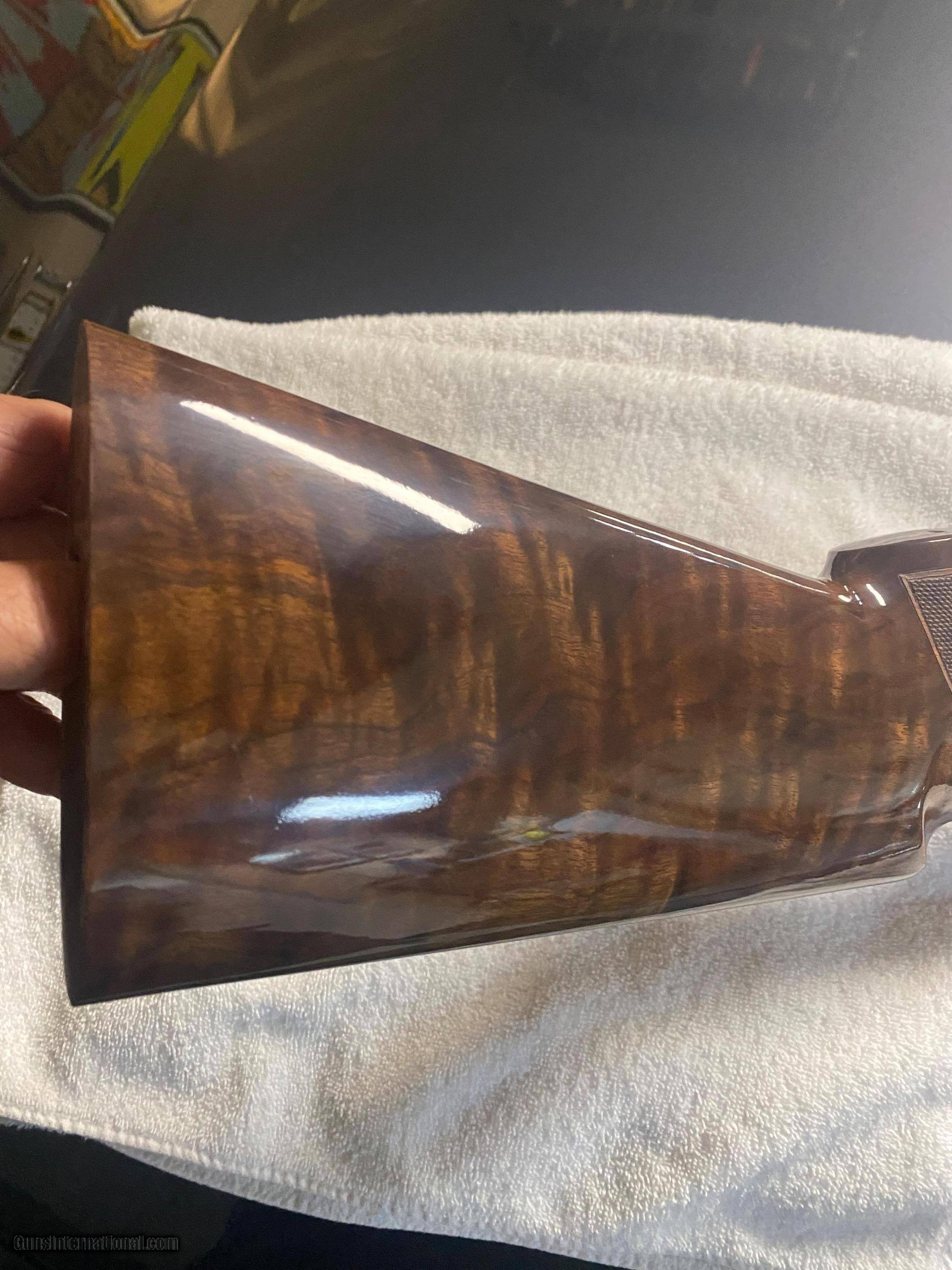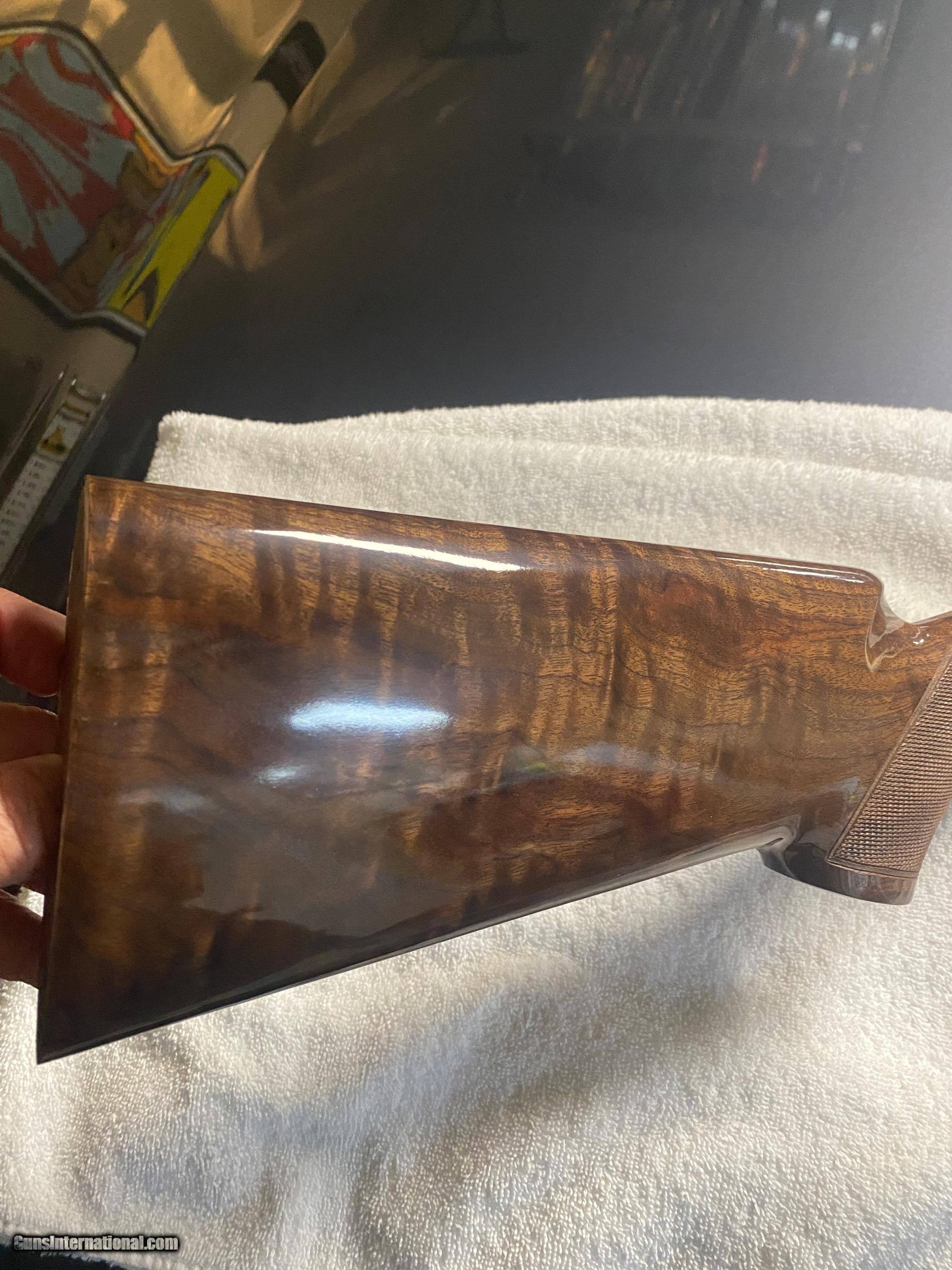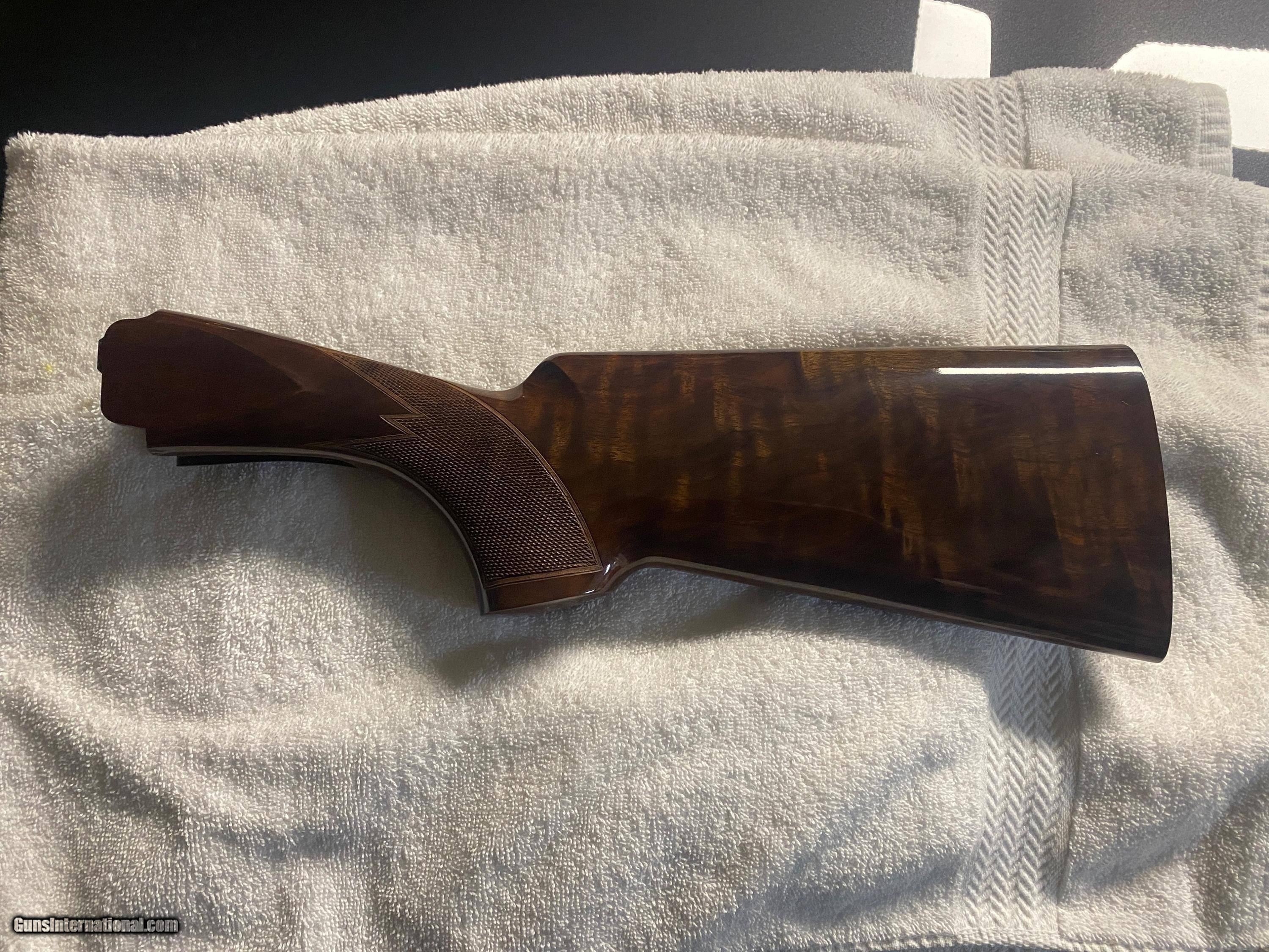 Description: New Browning shotgun stock for short tang Citori. part # B133745G . In factory packaging. Right hand with Palm Swell. As original on Browning Special Sporting Gold 12ga shotgun. High Grade wood with gloss finish. Unused/new. SOLD Shotgun Gauge: 12 Gauge, 12 Gauge |