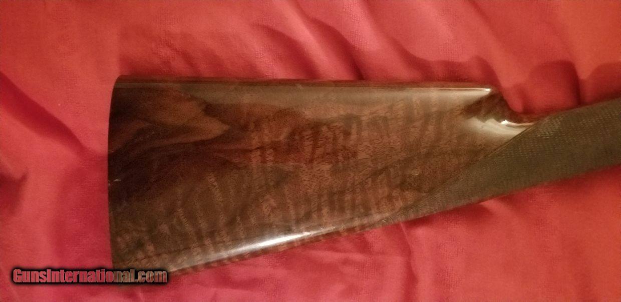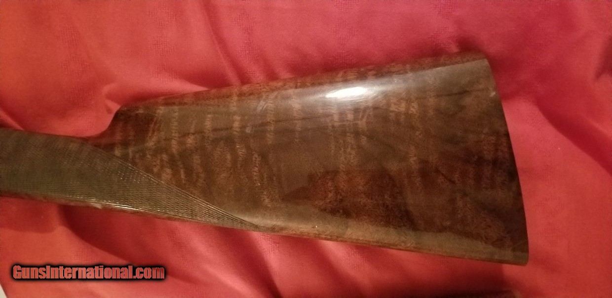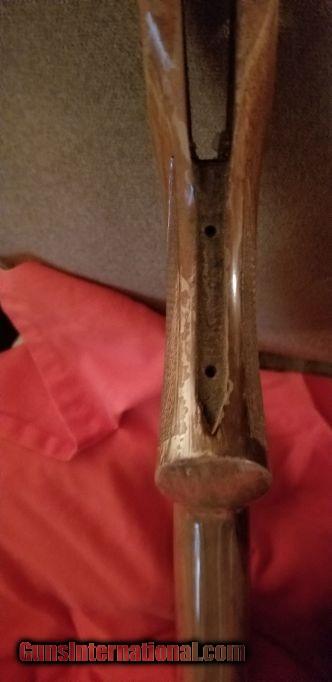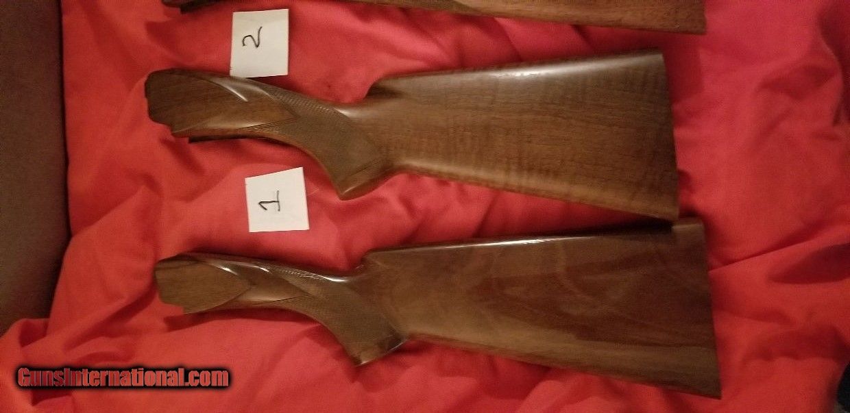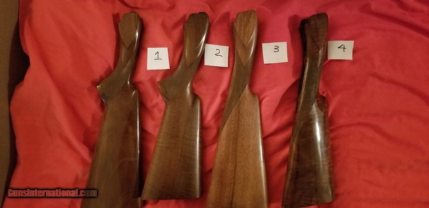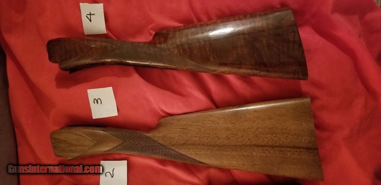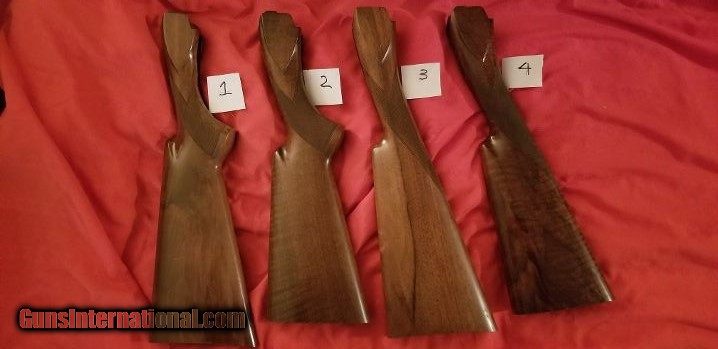 Description: 4 Browning buttstocks for sale. They are in good shape, no cracks. few dents and finish is OK. They are all for RECEIVERs with straight top tangs, NOT step receivers. 1) 20 ga pistol grip, non cut wood. 161/4 measure from top center of receiver flat to end center of stock. Finish is bad around the grip area. Needs refinishing $60 2) 12 ga pistol grip, 15 5/8 length, previously cut for .75 or 1 in pad. $60 . Finish OK. 3) 12 ga superlite st grip, 16 1/4 non cut wood. Needs refinish OK. $60 4) 12 g Nice figure st grip, 15 5/8 ,previously cut for .75 or 1 in pad. Finish OK. $100 Plus $15 shipping for each stock. SOLD |