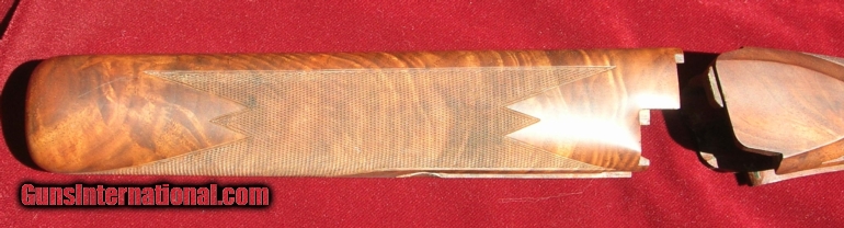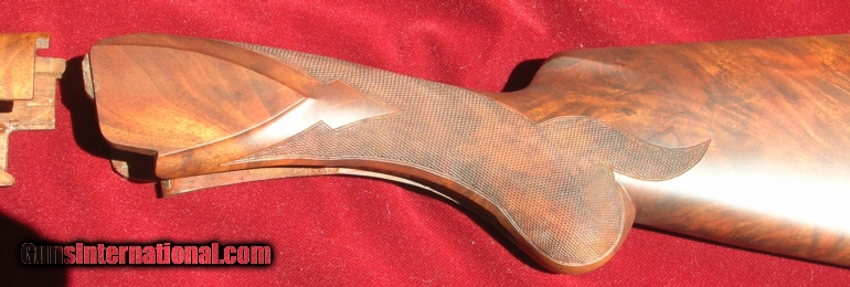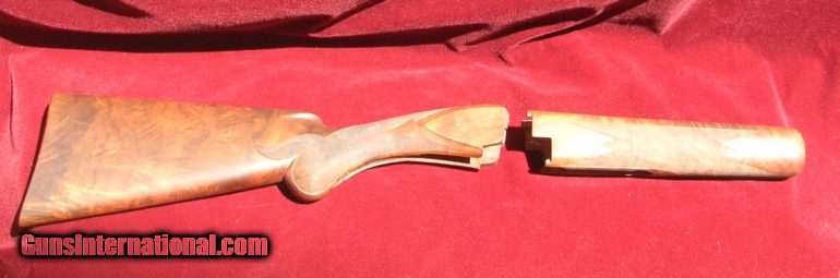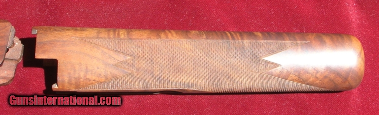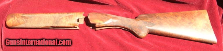 Description: Browning superposed 12 ga. Round knob/Long tang, checkered butt. This has a "U" top tang. Originally for Pintail, Mallard, Black Duck series of guns. Outstanding figure and color! Original oil finish. Midas checkering pattern. Great set to fix your salt wood problem for 1/2 the cost! SOLD |