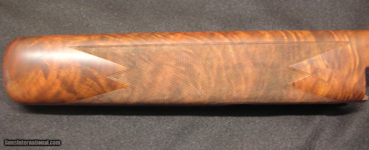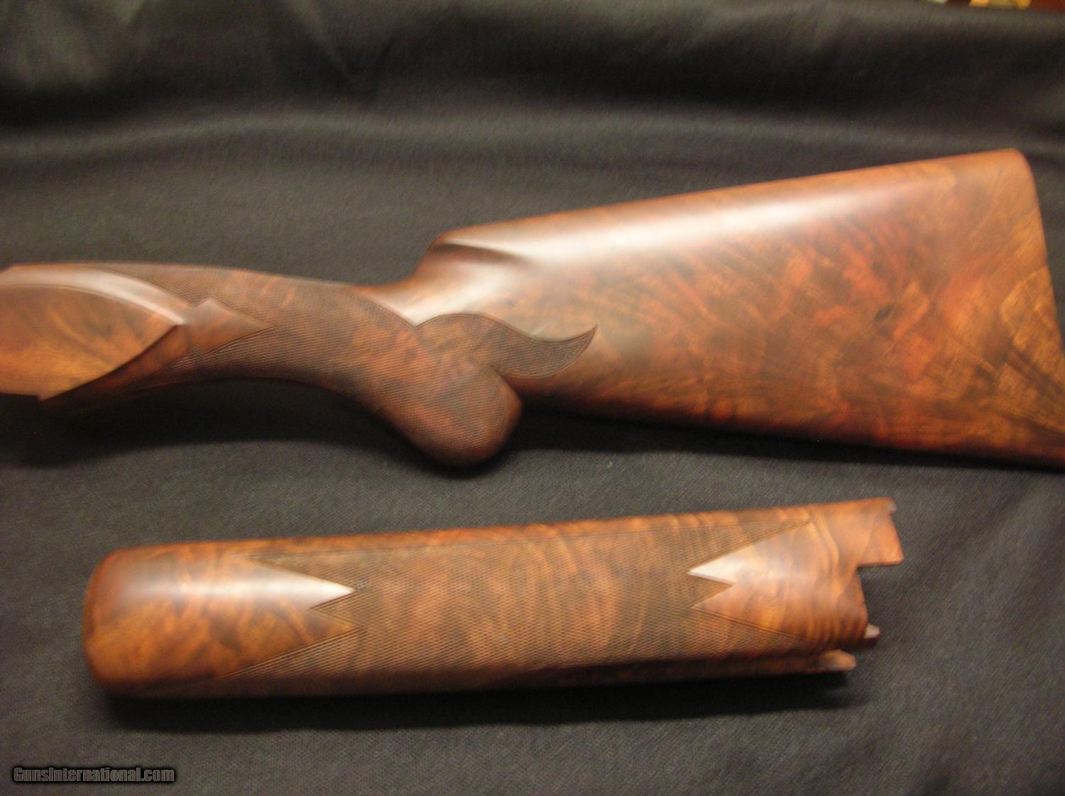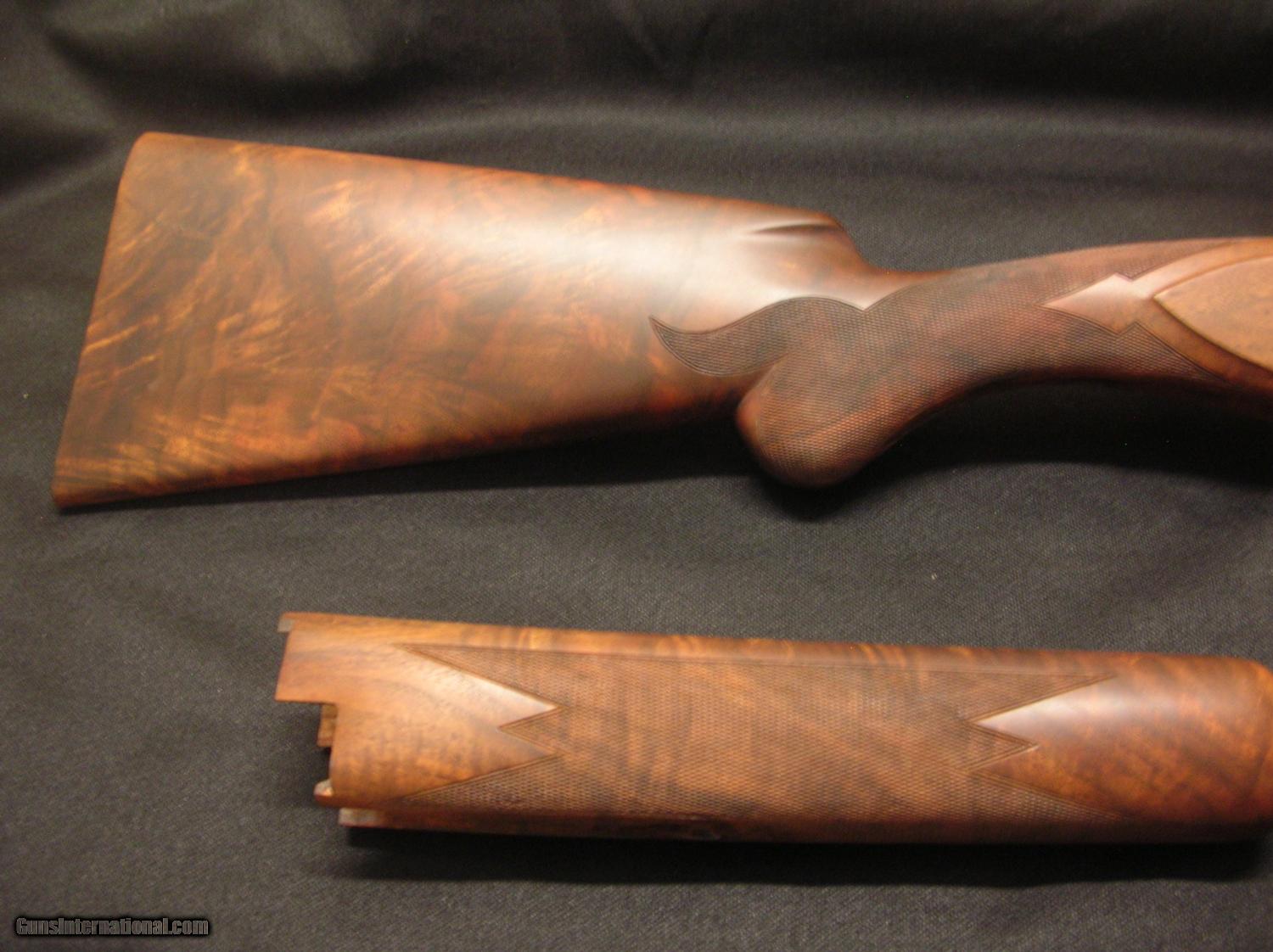 Description: Browning superposed high grade 12 ga. wood set. "U" tang top, round knob/long tang grip. Checkered butt. Outstanding figure! Fix your salt wood problem for 1/2 the cost! As new set. SOLD |
