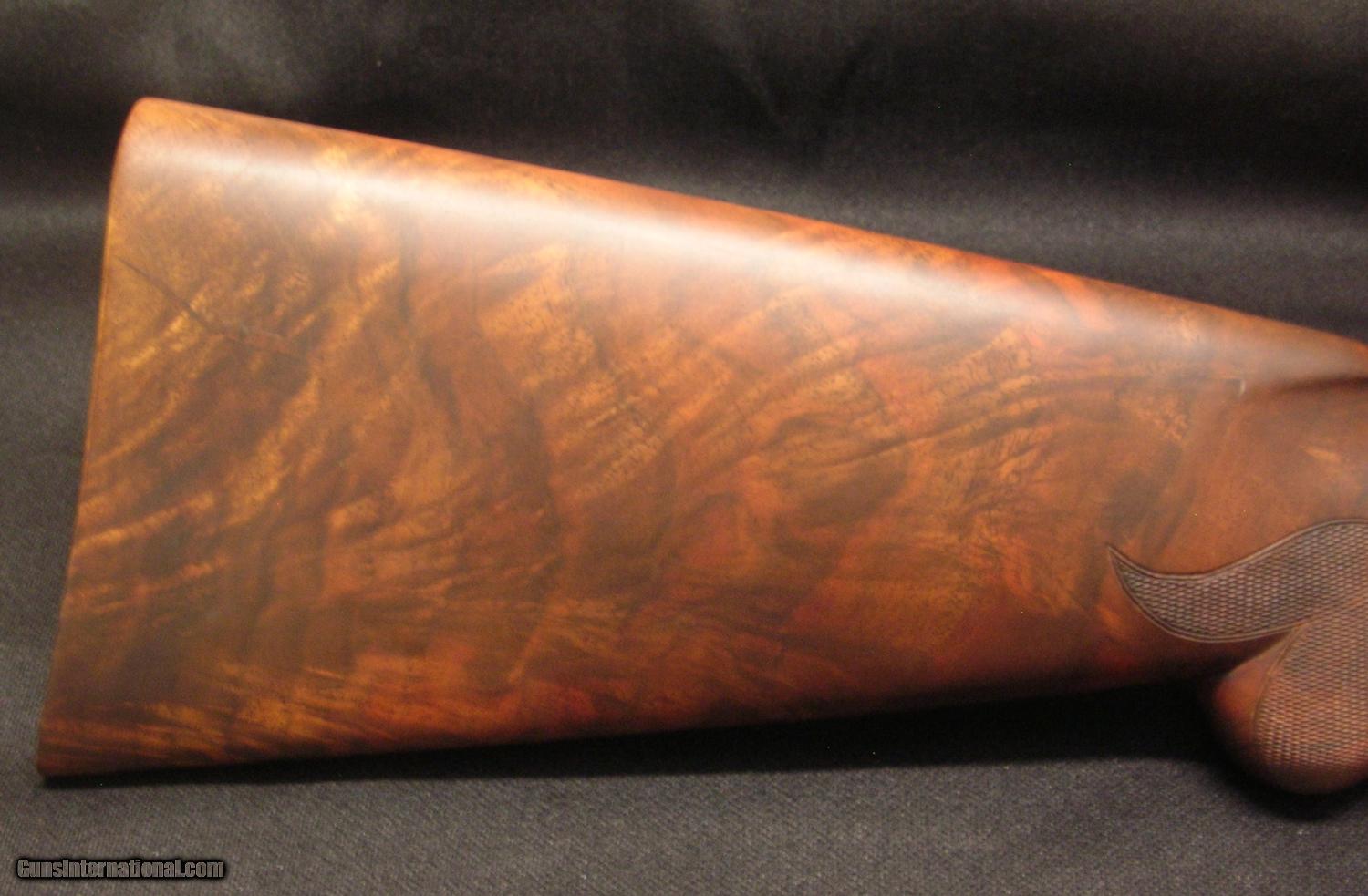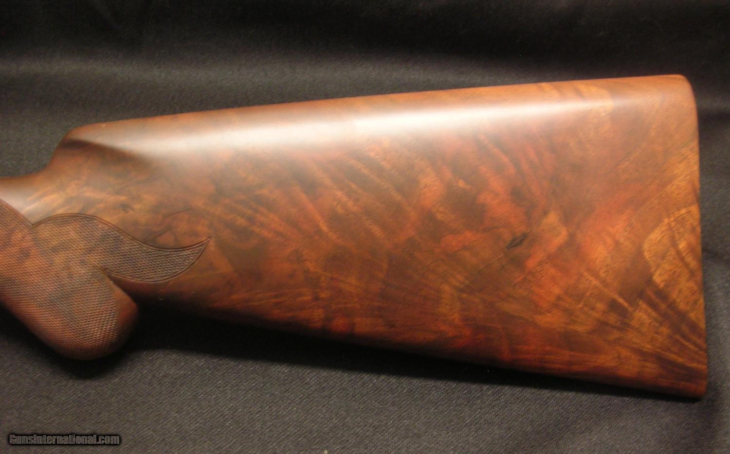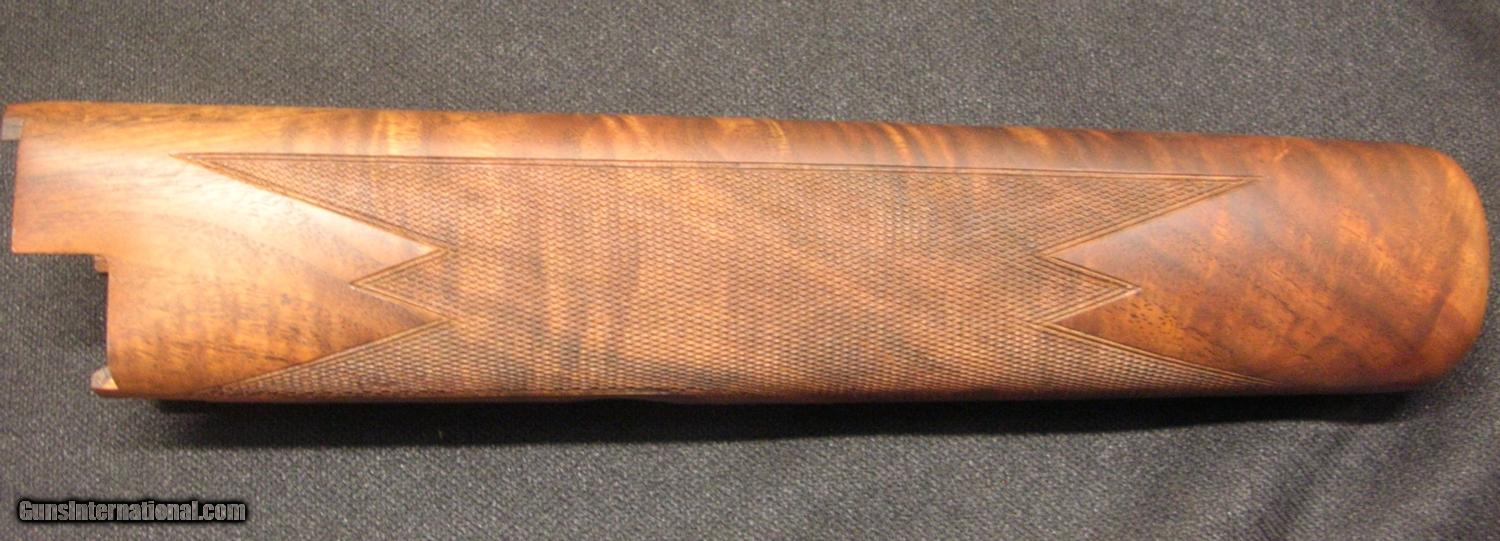 Description: Browning superposed high grade 12 ga. wood set. "U" tang top, round knob/long tang grip. Checkered butt. Outstanding figure! Fix your salt wood problem for 1/2 the cost! As new set. SOLD |
