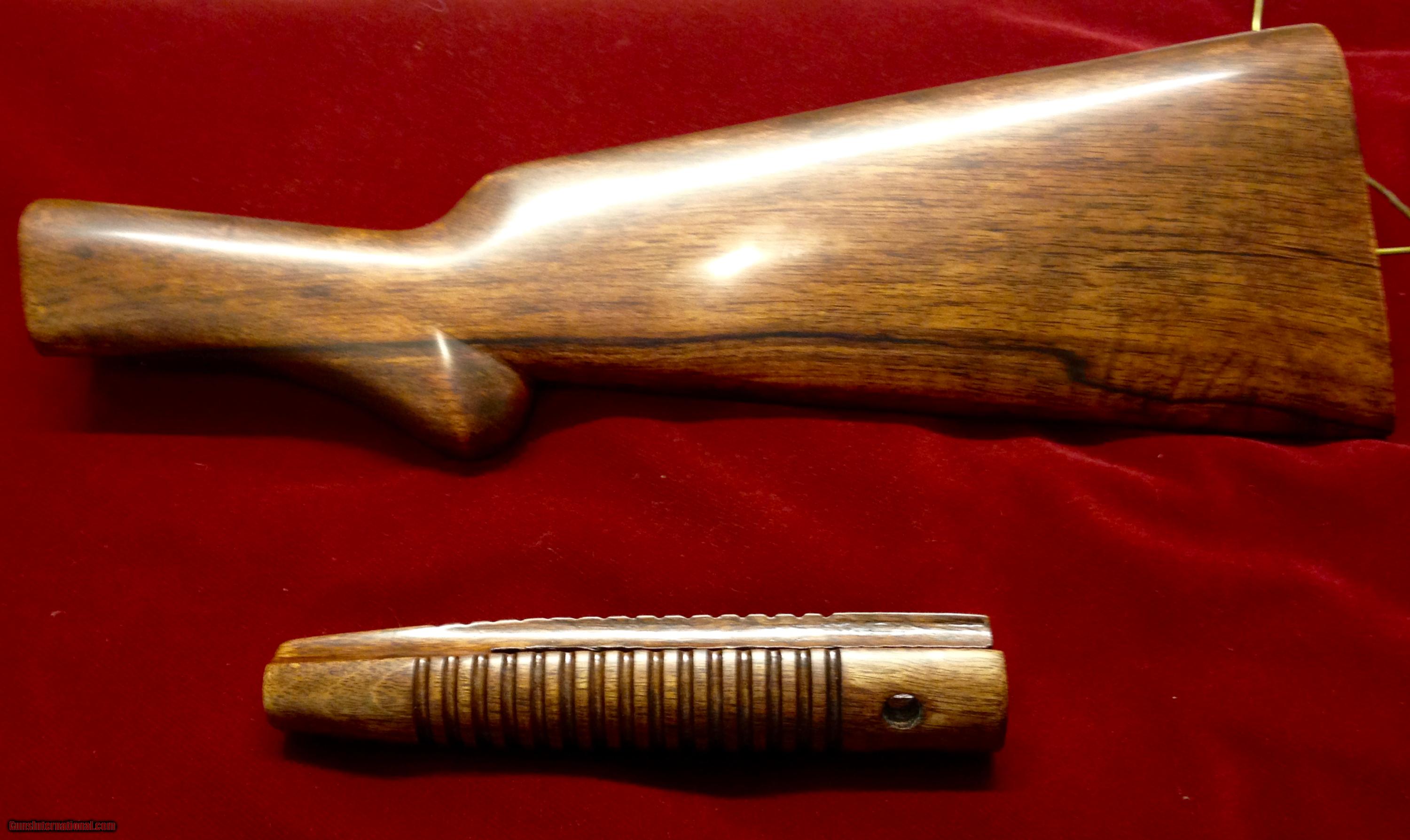 Description: BROWNING TROMBONE (FN) Stock and fore end for Browning and FN pump 22's. Better than average figure and color--no cracks. Restored to as new. Nice set!! SOLD |