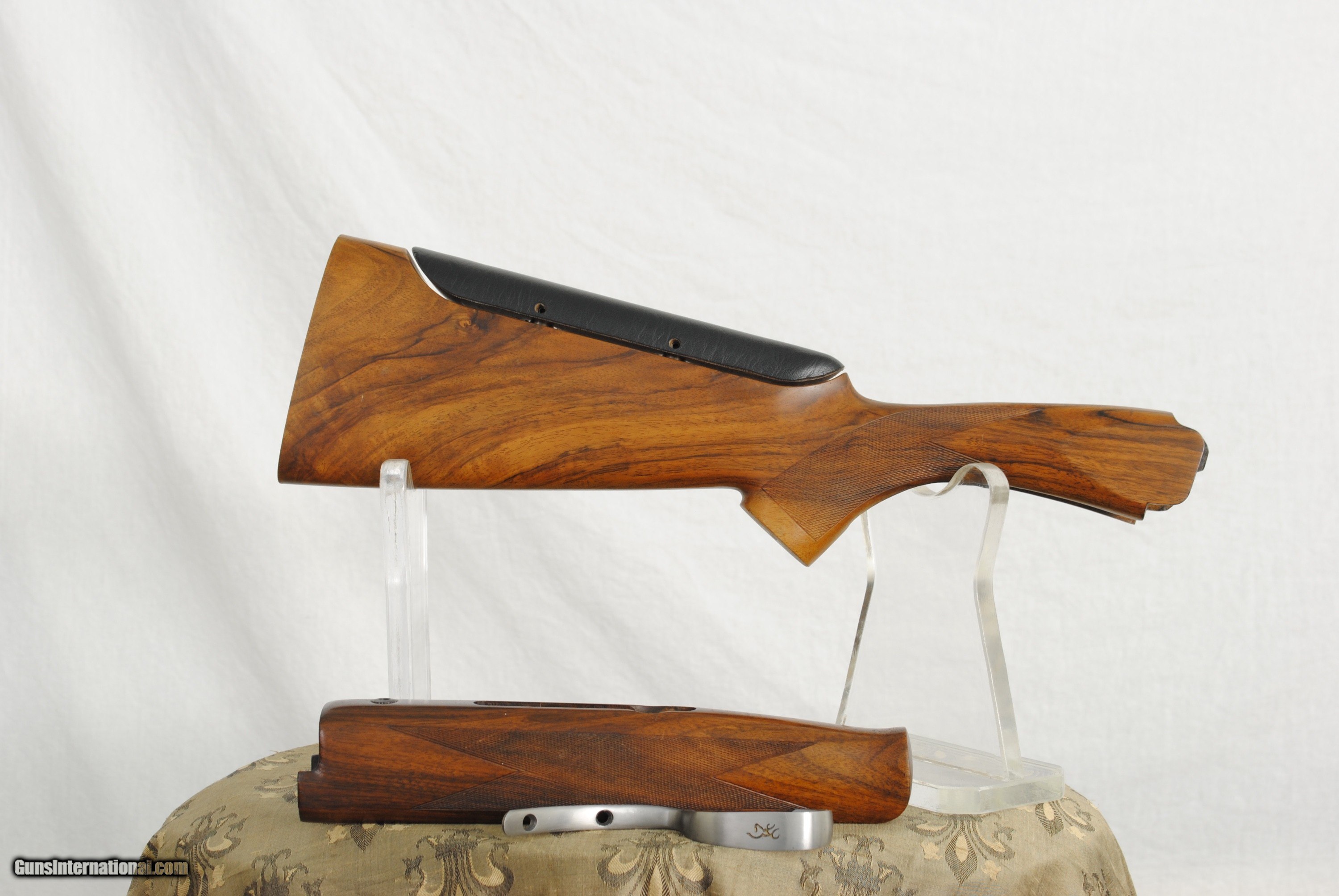 Description: Browning 20 gauge Citori stock, forend and trigger guard. Stock has a 4 way adjustable comb. No spacers or comb tools provided. Does not include a stock bolt, recoil pad or grip cap. The stock is well figured with pleasing mineral streaks. No cracks in the wood. Shipping is $30 SOLD Shotgun Gauge: 20 Gauge |
