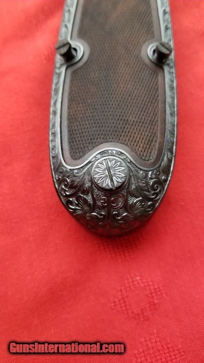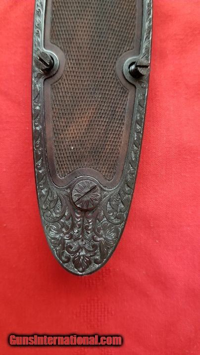 Description: Fancy Engraved skeleton buttplate off a Galazan small gauge Fox shotgun. 5 inch in length. $100 plus $10 shipping SOLD |