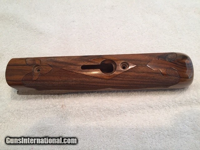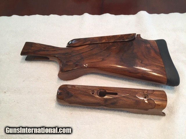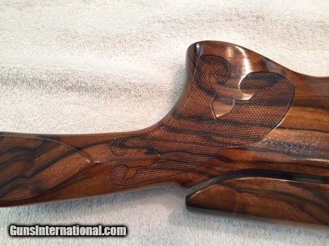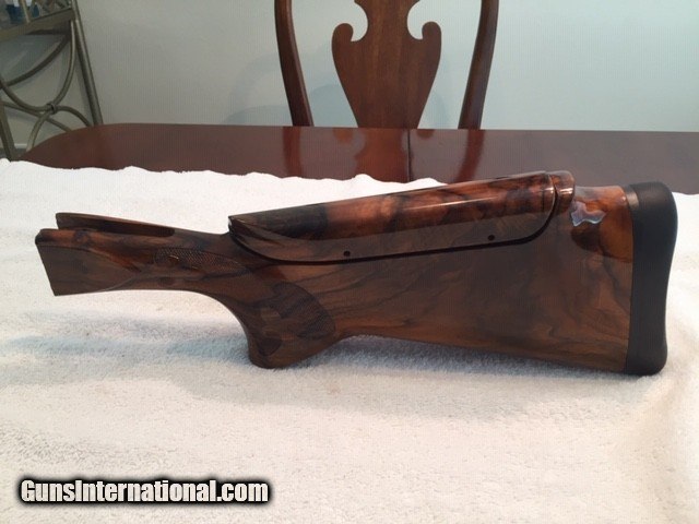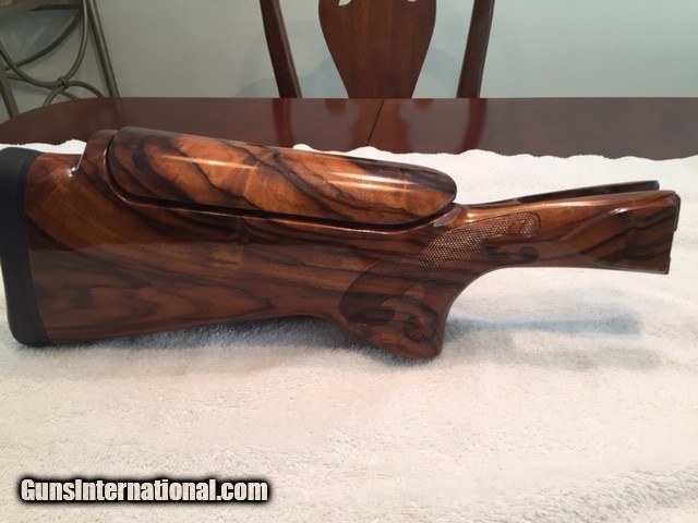 Description: I'm offering a beautuiful Wenig custom left hand stock with adj rollover comb. This stock has never been on a gun and will only fit the Krieghoff K 80 RT (removable trigger) model. By the time the stock was completed the gun was sold. The total length of the stock to a 3/4" Kick Eze Pad is 15 3/4" I would suggest having a Gunsmith install this stock as some inletting may be required. It comes with matching forend. Asking $750 shipped to the lower 48 states. SOLD |