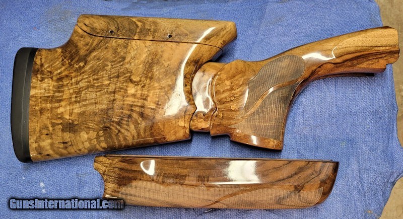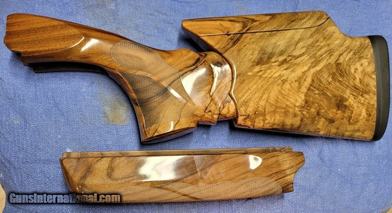 Description: Beautiful and as close to new as you can get. RH Prosoft stock and forend that came off a Kolar high rib trap combo. As the pictures show it hasn’t been used much, in like new condition. Exhibition Turkish Walnut with adjustable comb. RH palmswell, 14 ¾ LOP, Drop at comb 1 5/8", Drop at Heal 2 7/8", offset 1/2". New this stock was $4800. SOLD |