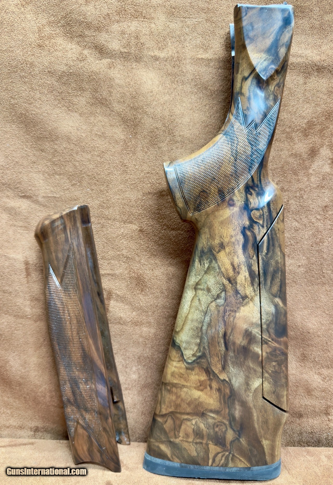 Description: Krieghoff Stock Set Grade 5 Turkish Walnut Description: Krieghoff K-80 stock set grade 5 Exhibition!! Description: Krieghoff Stock Set – Right-Handed Palm Swell Approximate Stock Dimensions (Measured from a Flat Rib): Drop at comb 1-5/8" Drop at rear of comb 2" Drop at monte carlo 2-5/8" LOP 14.75" Key Features: