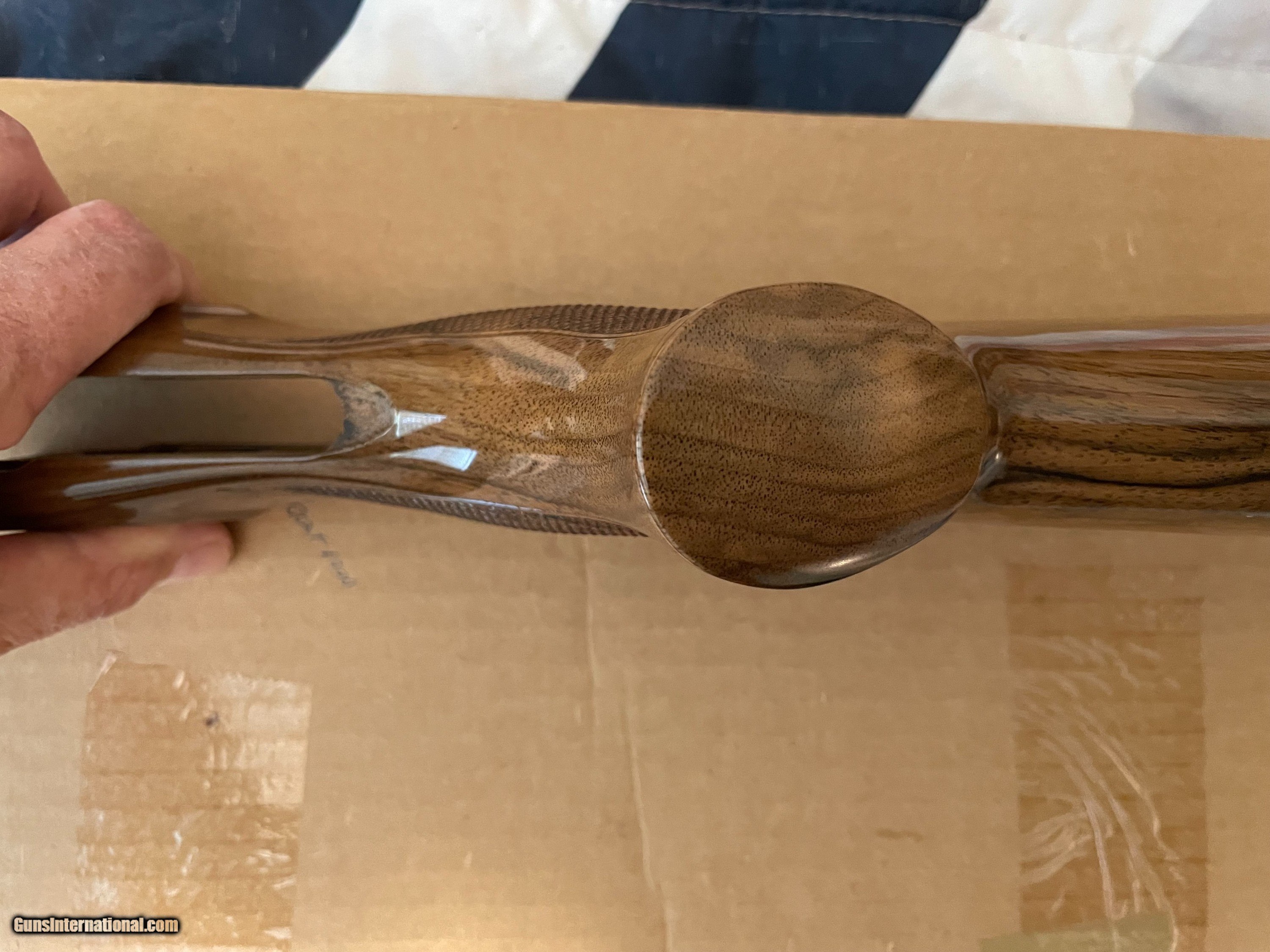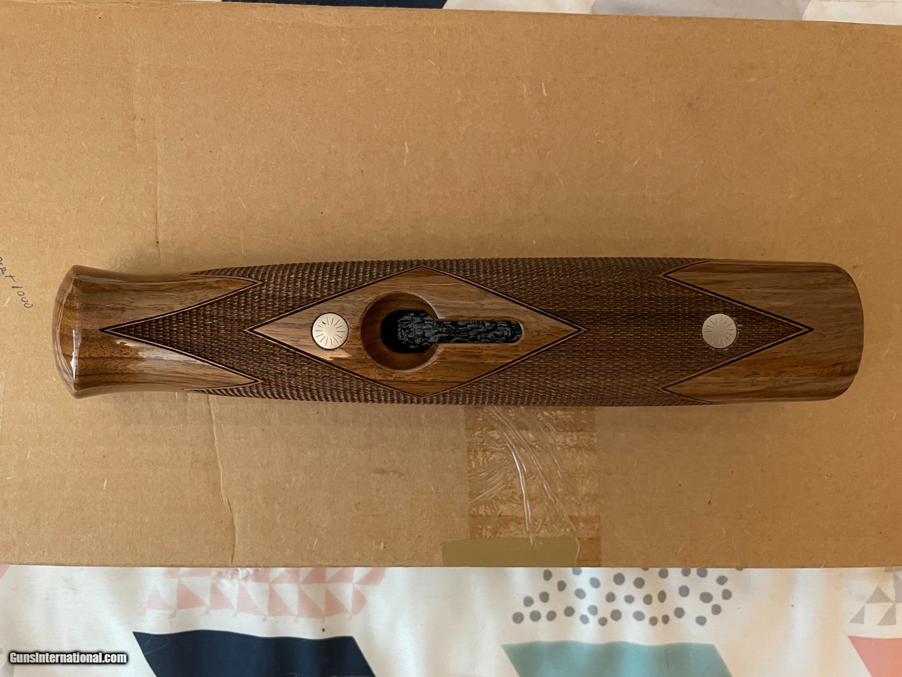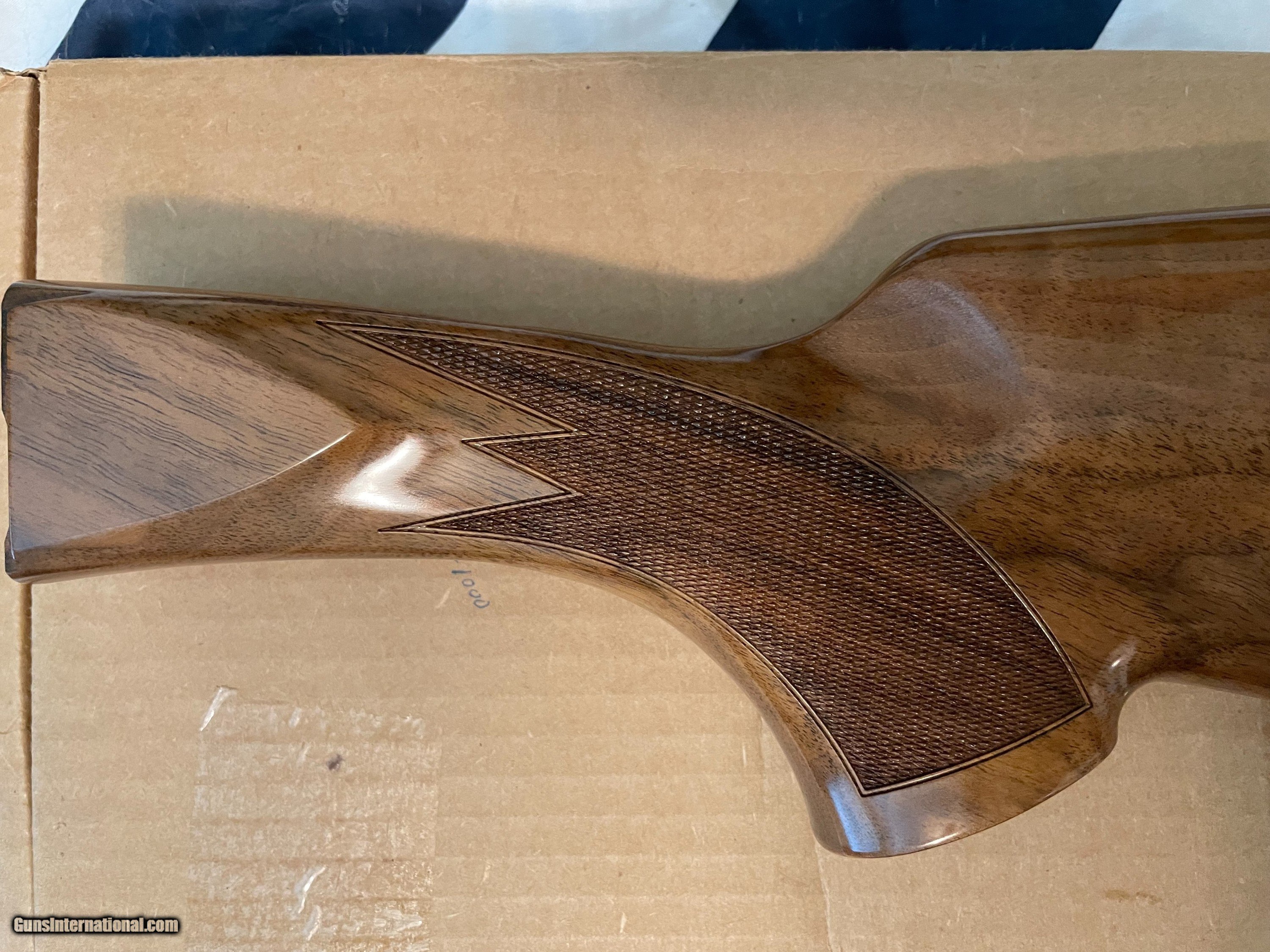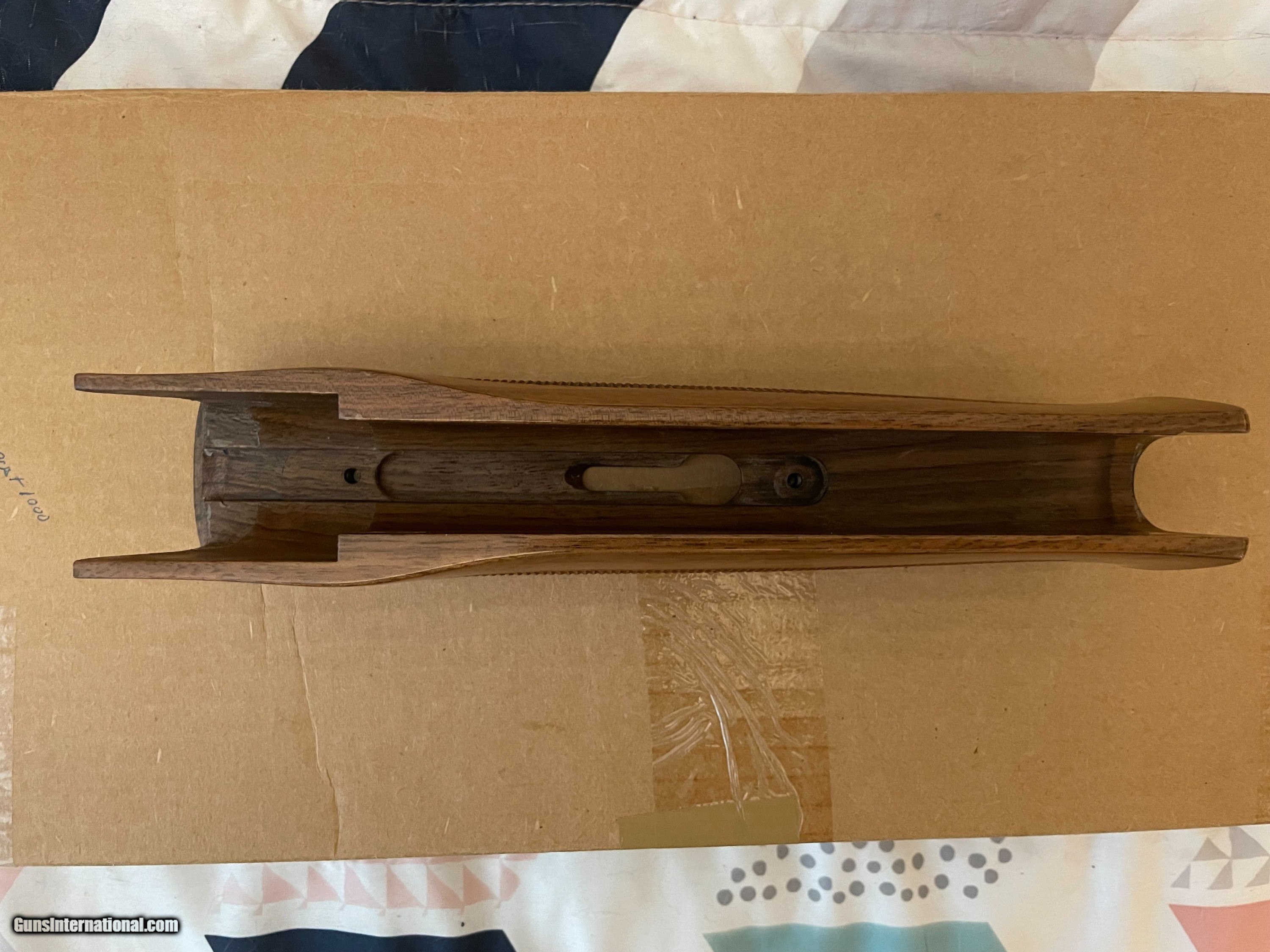 Description: This is an as-new genuine Krieghoff wood set for a K80. Set consists of a #3 ambi/neutral for left or right hand stock with dimensions of: LOP: 14.1/2", drop dimensions of comb: 1-5/8" x 2" x 2-5/8. Stock bolt and original recoil pad are installed. Matching schnabel forearm with rosettes installed. Absolutely zero defects, no marring, scratches, dents etc. Checkering is sharp. Always have a competent gunsmith check fitment. If you have any questions feel free to contact me. Happy shooting! SOLD |