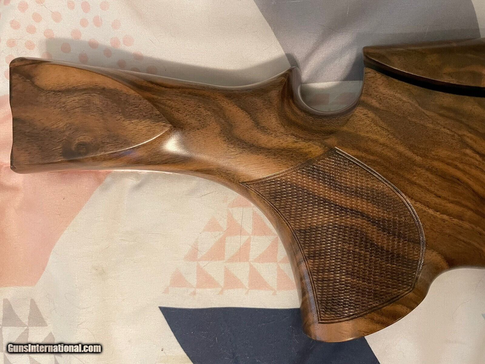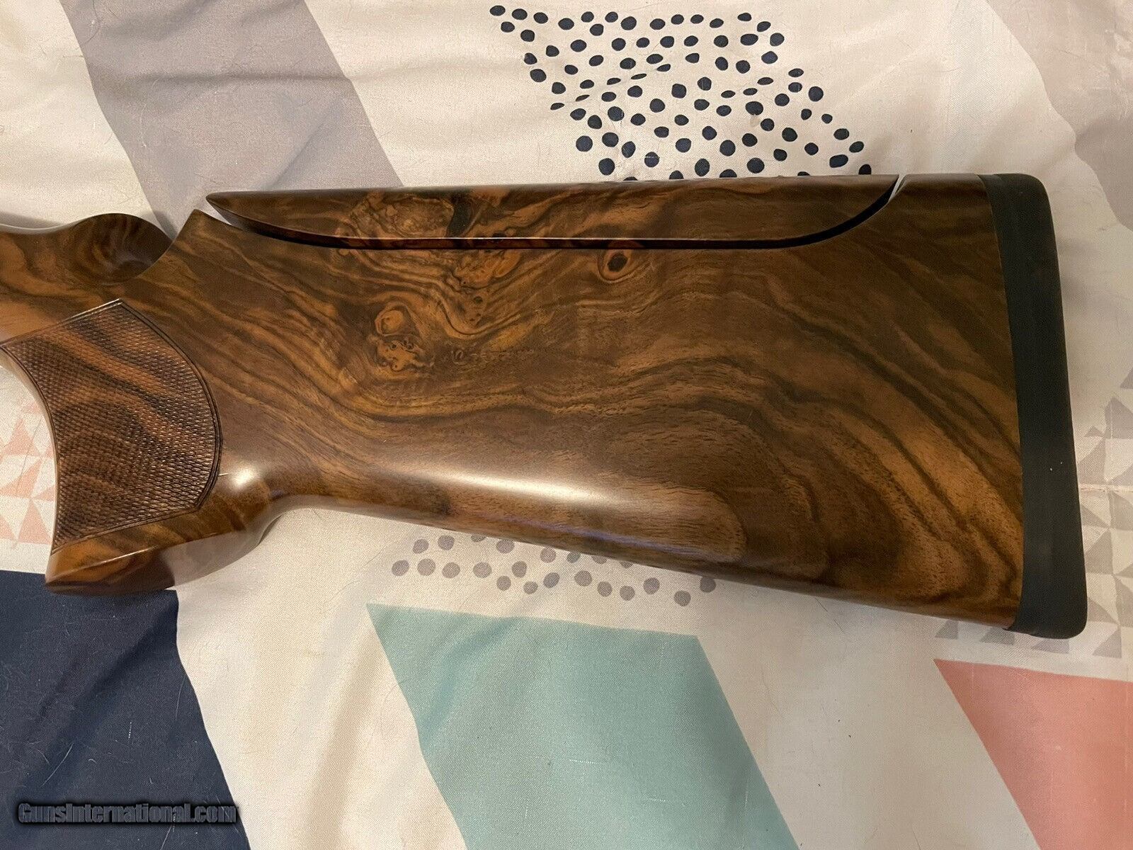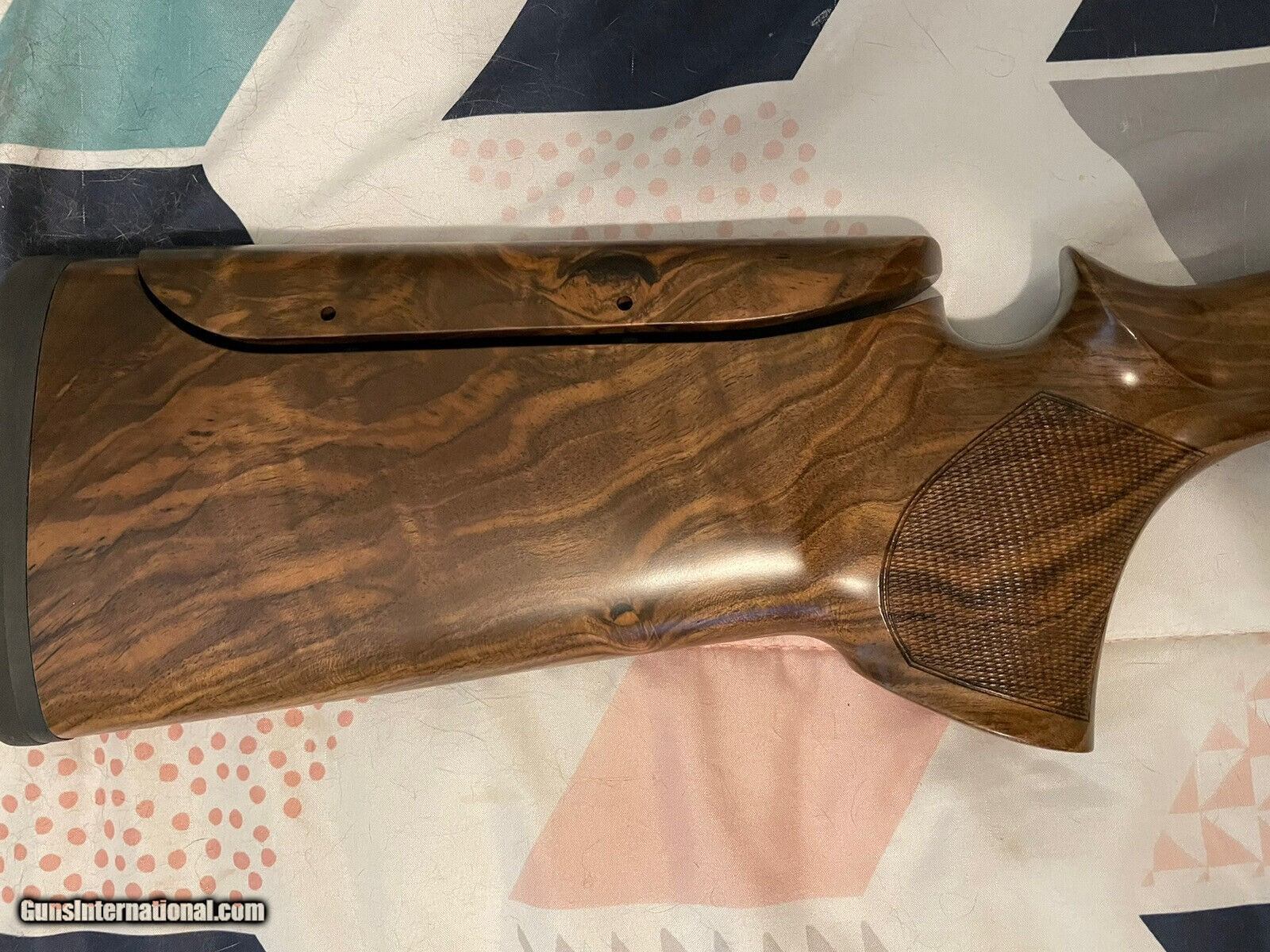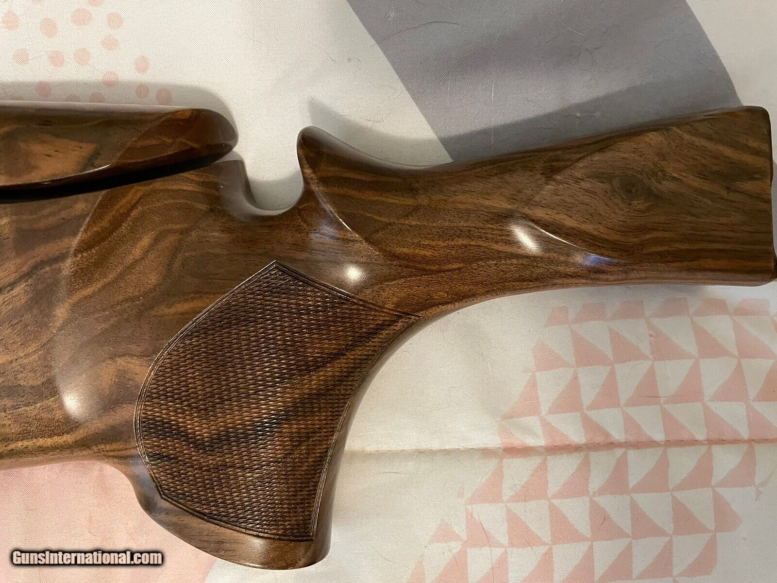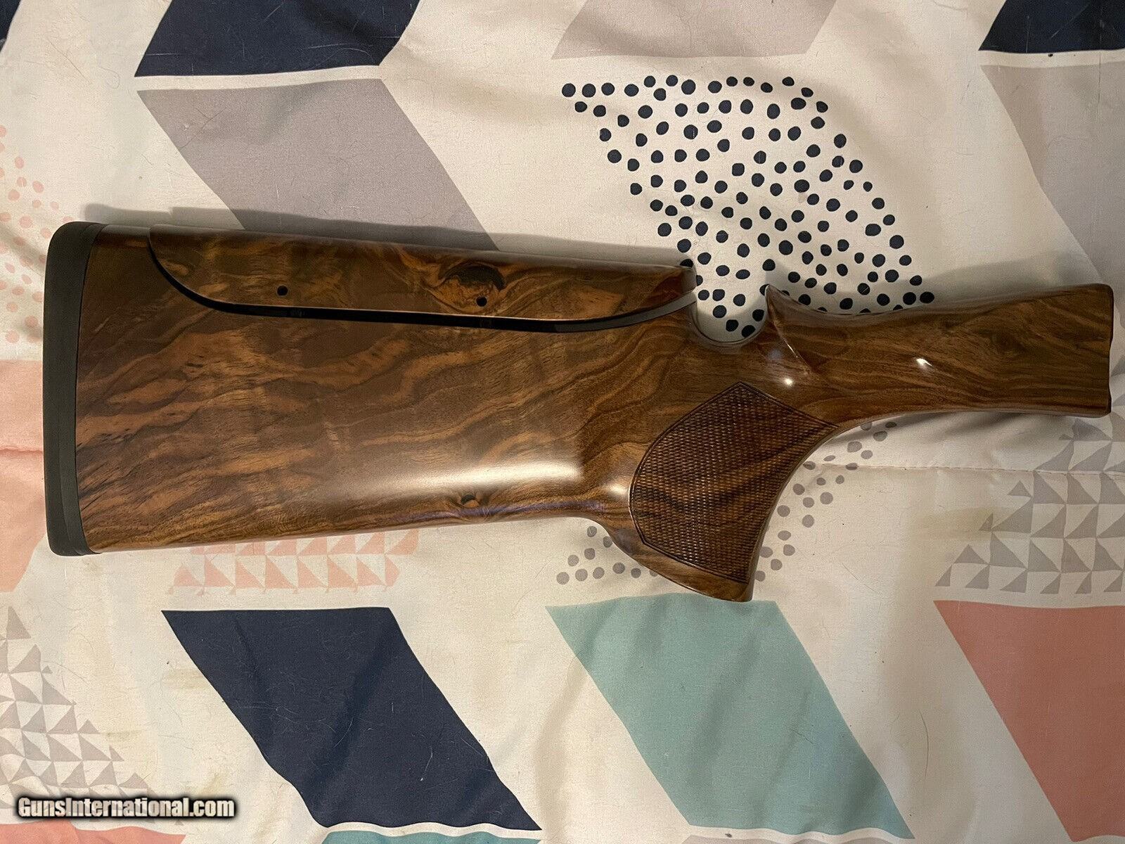 Description: Absolutely gorgeous K80 wood set with glove grip stock! Right hand with right hand palm swell. Adjustable comb. Featuring stunning exhibition grade Turkish Walnut wood with beautiful matte urethane finish and perfect checkering. Spec's are 14-1/2” length of pull with slim pad, 1-1/2" drop at heel, 1-1/4" at comb, 1/8" cast off, right hand palm swell. This set should fit right up to your K80 but always have wood set fitment checked by a competent gunsmith. SOLD Shotgun Gauge: 12 Gauge |
