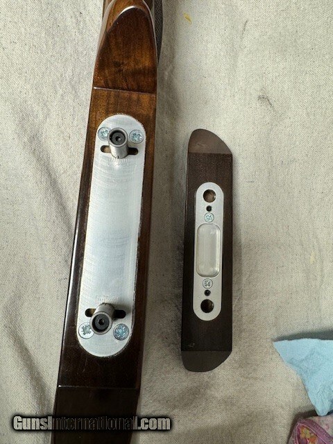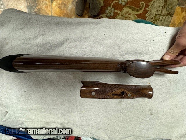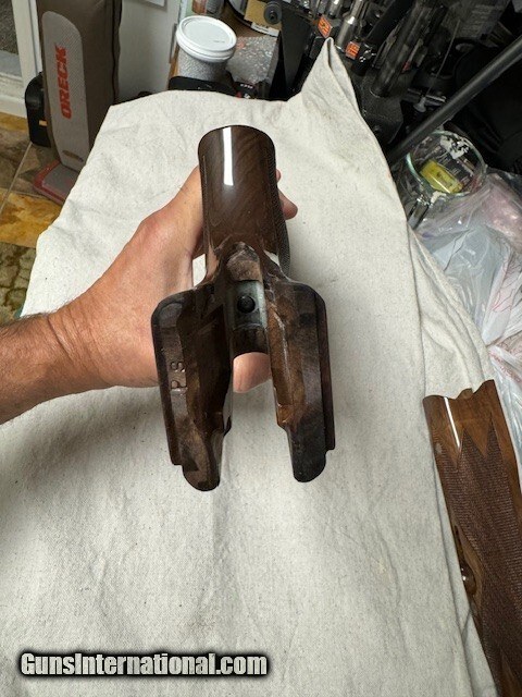 Description: Unmodified Pro Sporter stock set, nice wood. Pachmyer sporting pad, 14-1/2" lop. I don't think has been used much, tiny chip in the clear coat in the fore end area at the latch release (maybe a fingernail caught it). The comb adjuster hardware has no marks at all - suspect it was never used. ON SALE FOR A FEW DAYS... Price: $1,750.00 Shipping: $15.00 Contact Seller |