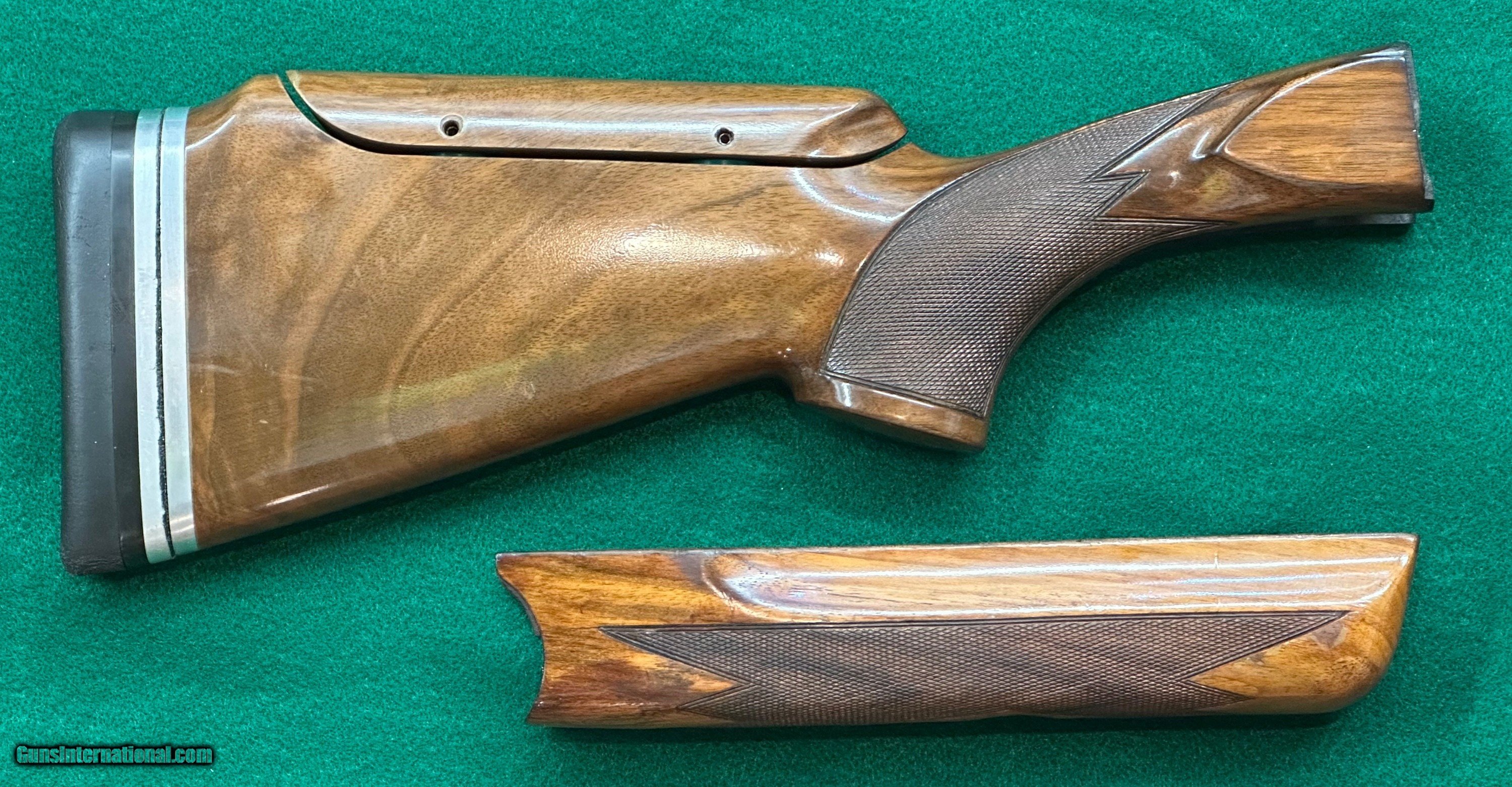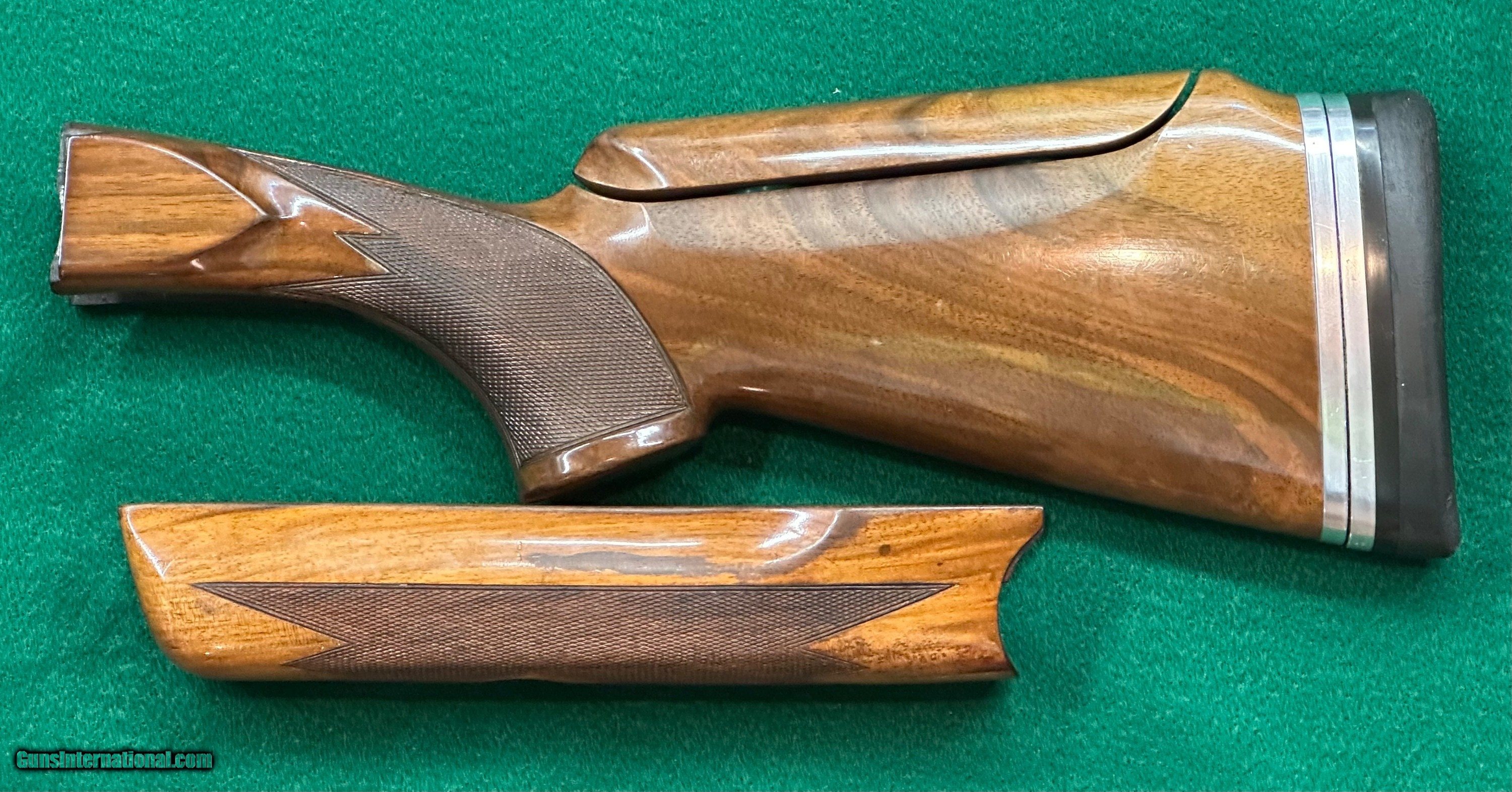 Description: Krieghoff K80 standard trap stock set with adjustable butt plate. This set has a 13 1/2” LOP. There is an old crack by the front rosette, nothing that I would worry about. Price: $995.00 Shipping: $25.00 Contact Seller |