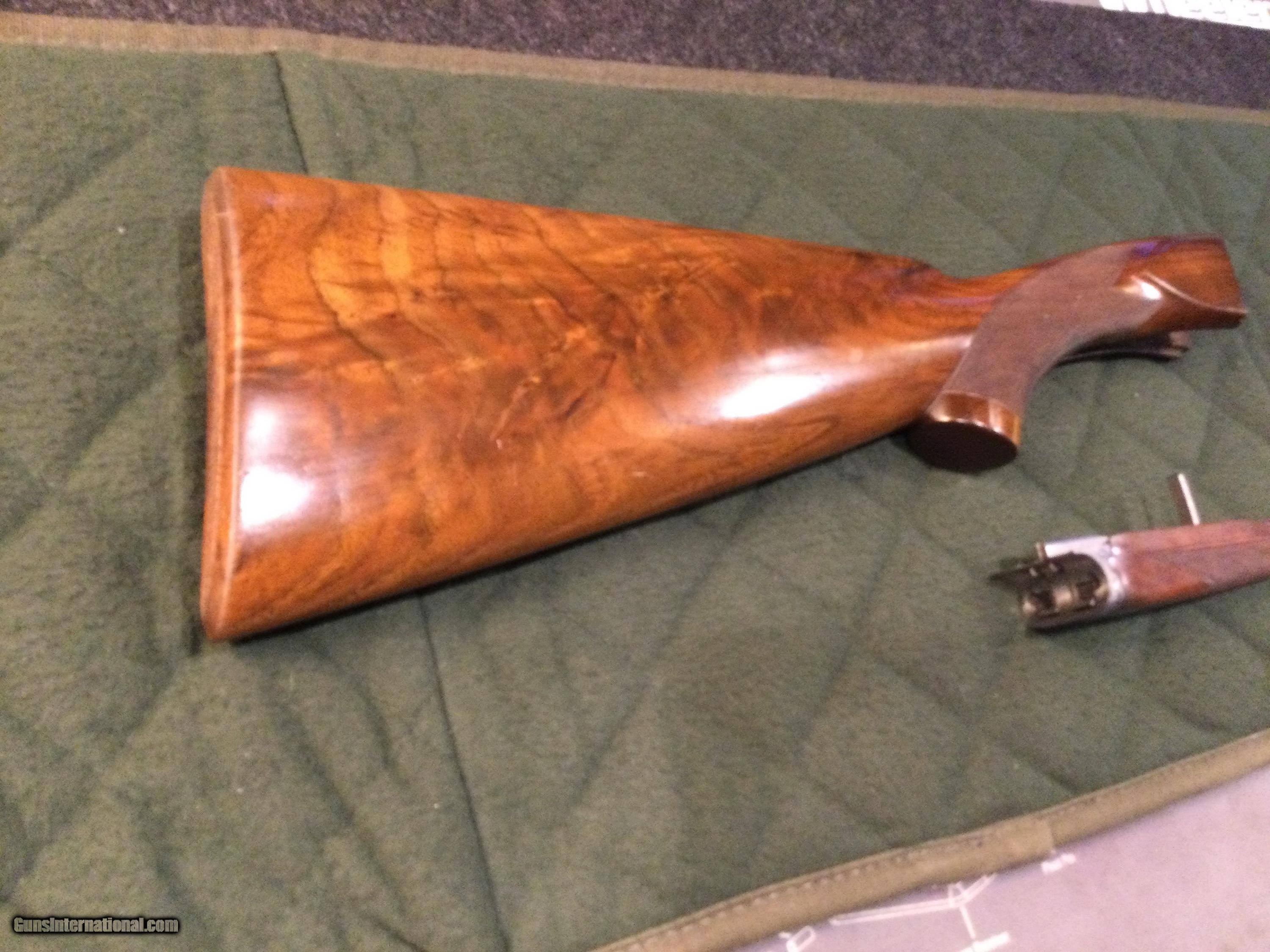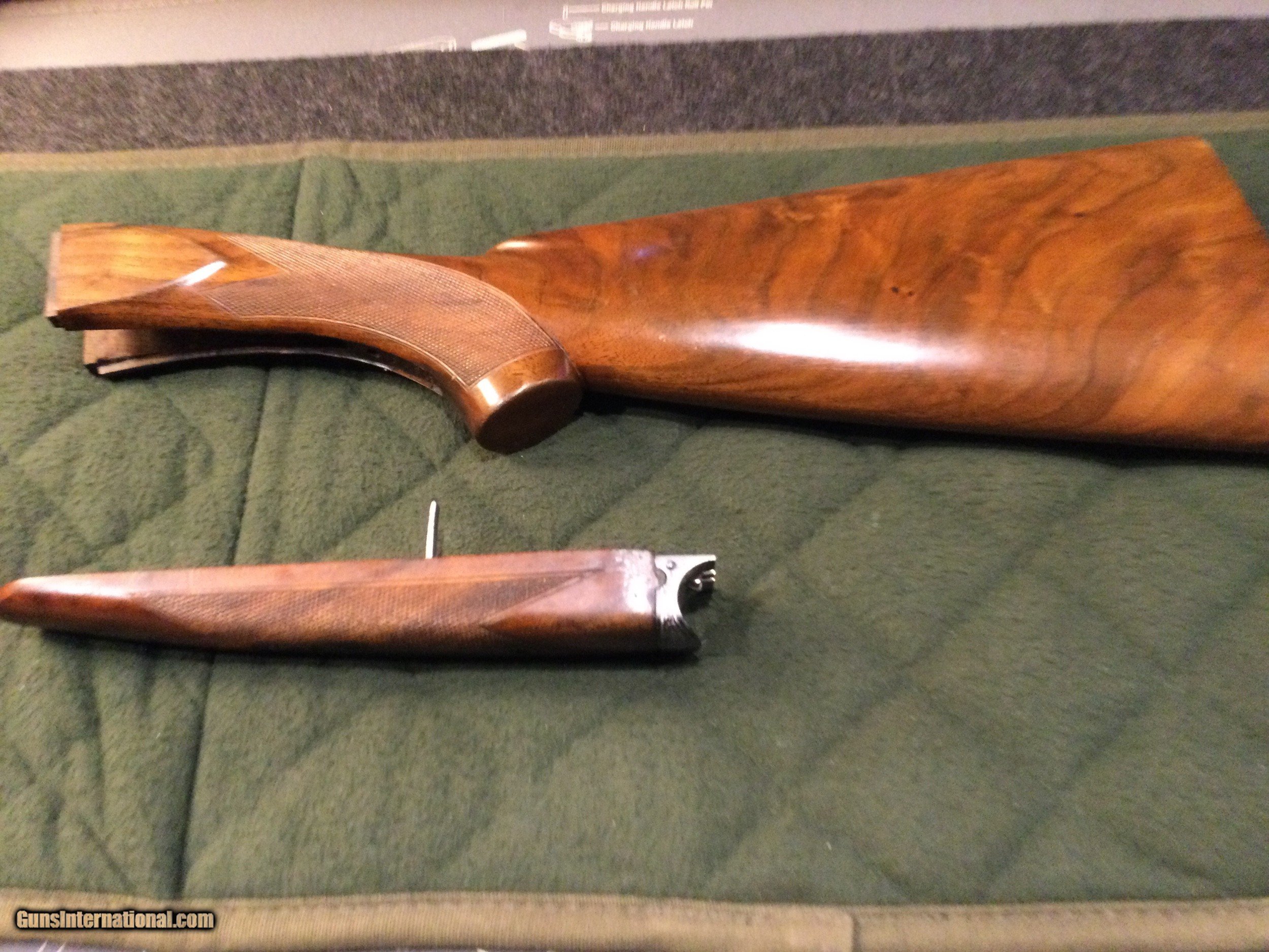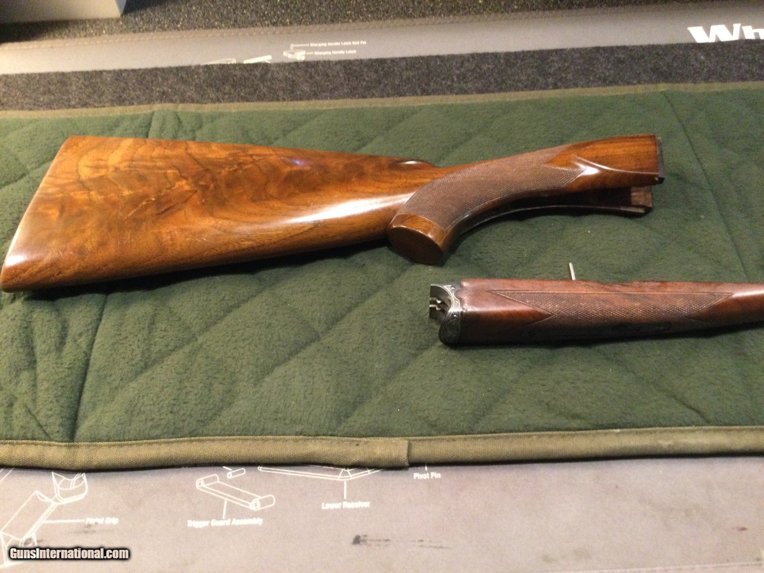Description: Here is a matching numbers Winchester Model 21 Wood Set for a 12 gauge shotgun--A matching numbered forend iron is also included. (Numbered to the wood) The stock has a pistol grip with a checkered heel and a lovely splinter forend. The checking on this set is very fine and in lovely condition. A very nice vintage motor case is included with this purchase. Nice vintage wood sets especially with forend iron are very difficult to come by. Thank you for looking. GO TIME!!!! SOLD |