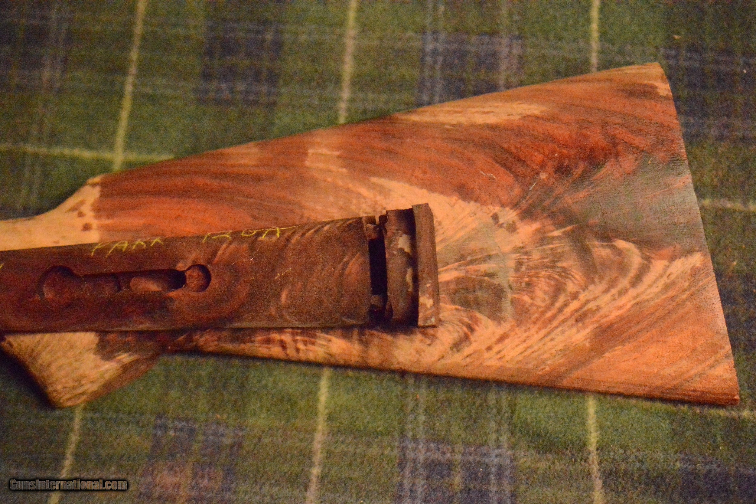 Description: Parker semi inletted stck set complete with forend. Ready for final fitting and finish. Suitable for high grade Parkers with a lot of beautiful feather crotch figure. AAA with a nice straight grained strong wrist. SOLD |