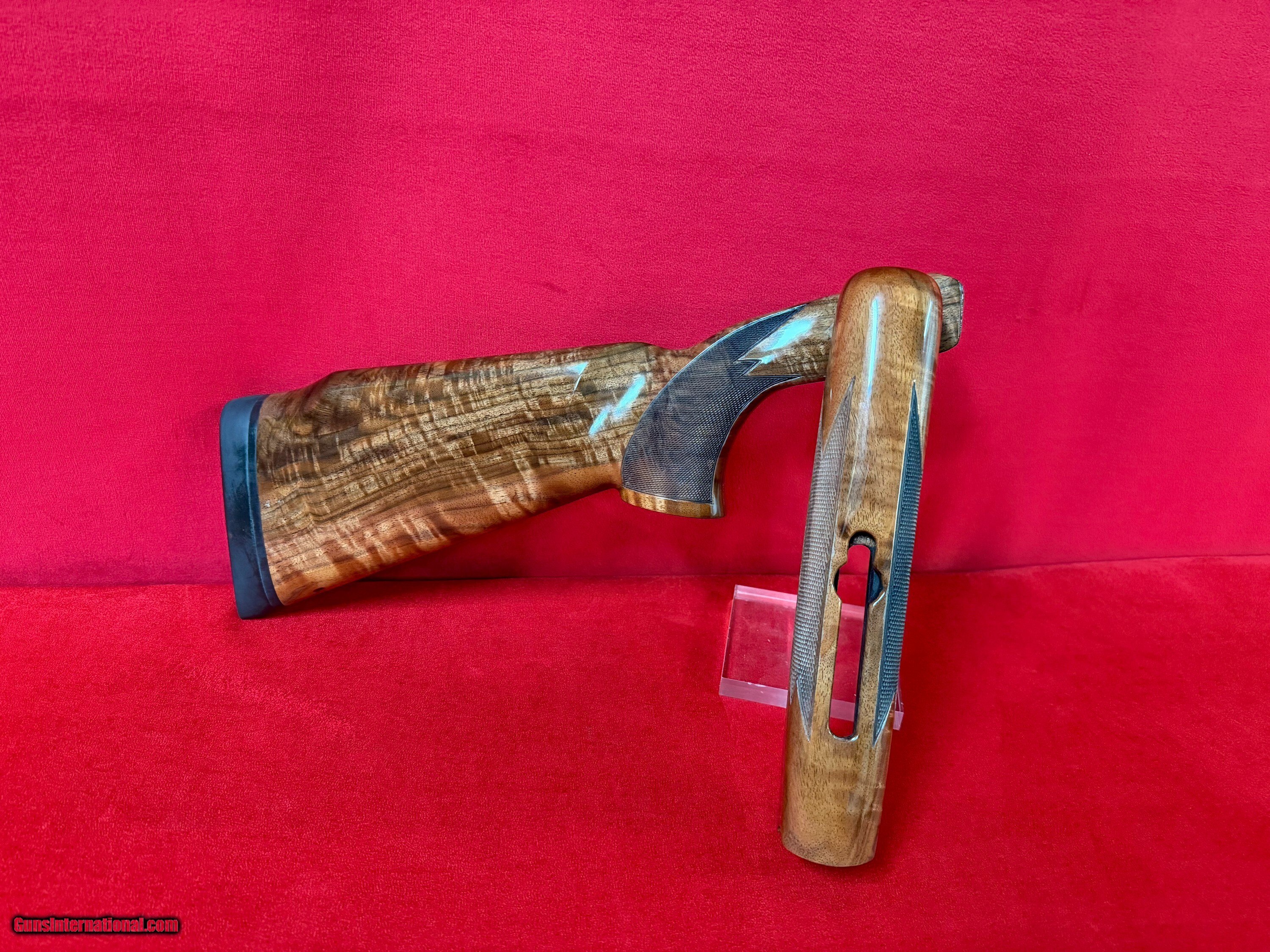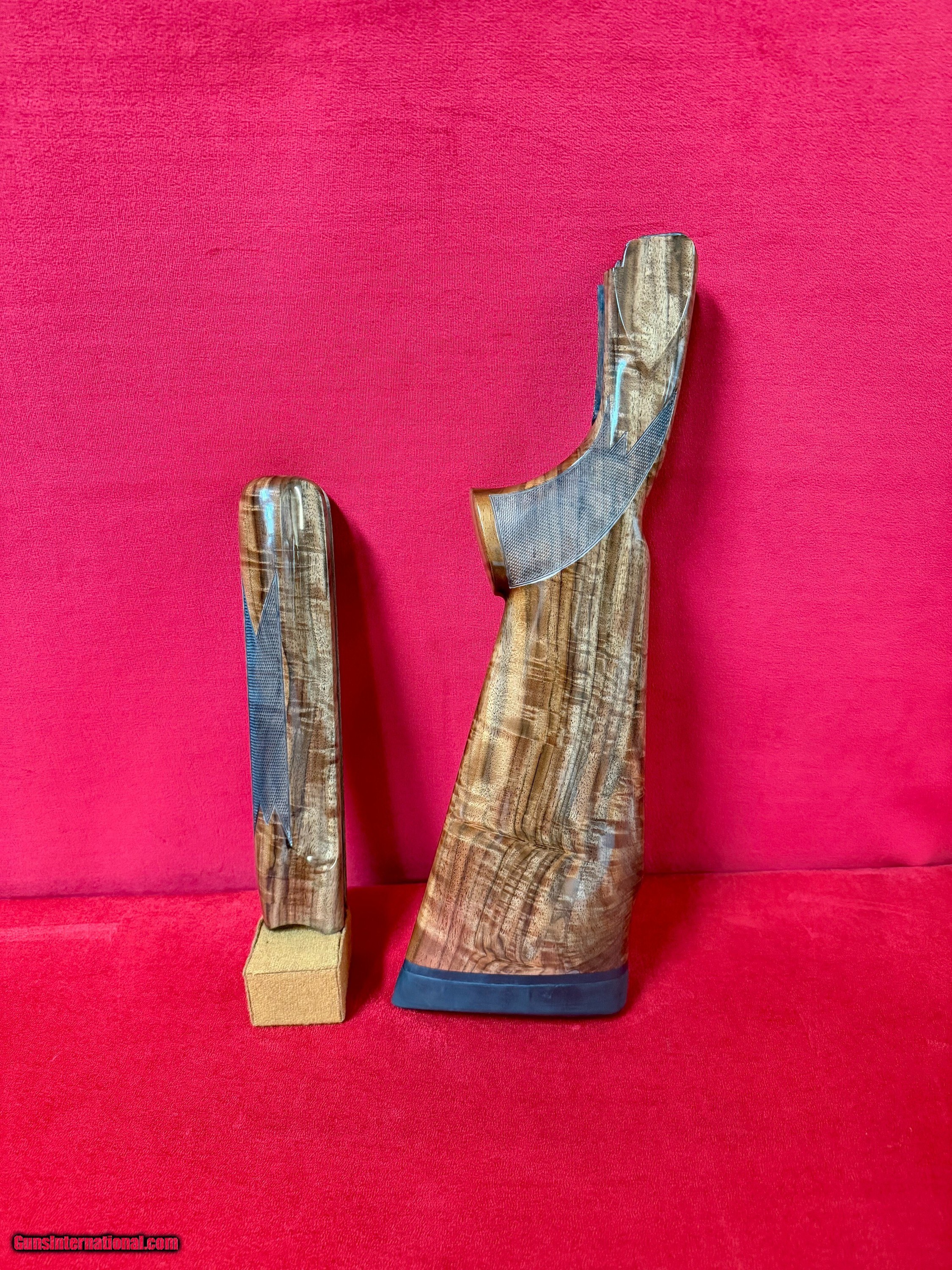Perazzi MX8-20 Custom Stock Set made by Wenig in Pristine LIKE NEW condition. This will fit MX8-20 Receiver with dropout trigger 20 gauge frame receiver. Beautiful high grade English Walnut. Foream will fit 28 gauge barrel and .410 barrel and can be opened up to fit 20 gauge barrel as well