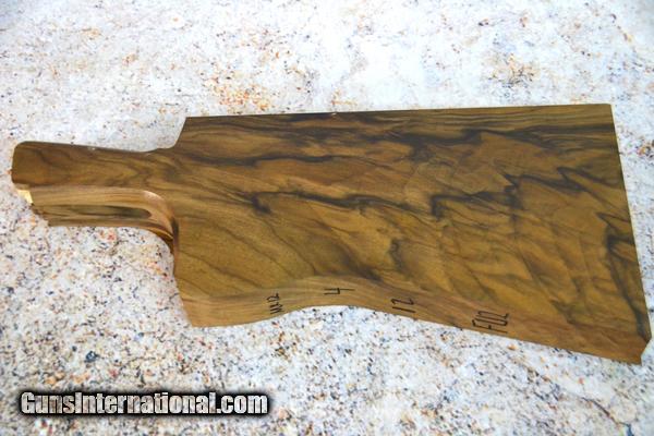 Description: Perazzi MX12 12ga Right hand Blank #FLP12 Our fine English walnut blanks are graded using the European grading system for blanks used by the suppliers of ?Turkish? walnut. Today it is impossible to know the exact origin of high grade English walnut, but most of it is classified as Turkish as it originates from Turkey and the countries in that region. Price listed includes stock and forend blank. The cost of creating a beautiful stock and forend from the blank to our customer's specification is an additional $2400. This includes a pad and either oil finish or urethane finish, and deluxe 26 line per inch hand checkering. This product is available ONLY for Cole Restocking jobs. Please contact us if you would like to purchase this blank for a custom stock, made by Cole Gunsmithing. SOLD |