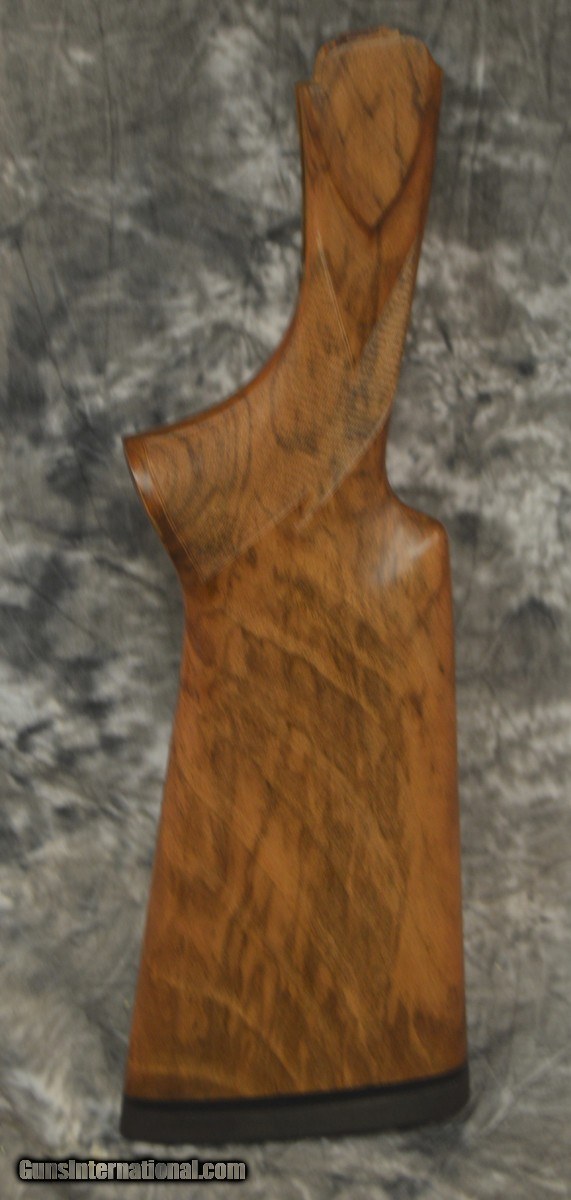 Description: New Perazzi MX8 Sporting Stock, Standard Grade (for Removable Trigger on 12GA Action). Stock is manufactured for a flat rib model MX8 with the following dimensions: 1 1/2" DAC 2 1/4" DAH 14 3/4" LOP with No Palmswell, standard right hand cast. Must be fit by qualified gunsmith, buyer is responsible for fitting. SOLD |