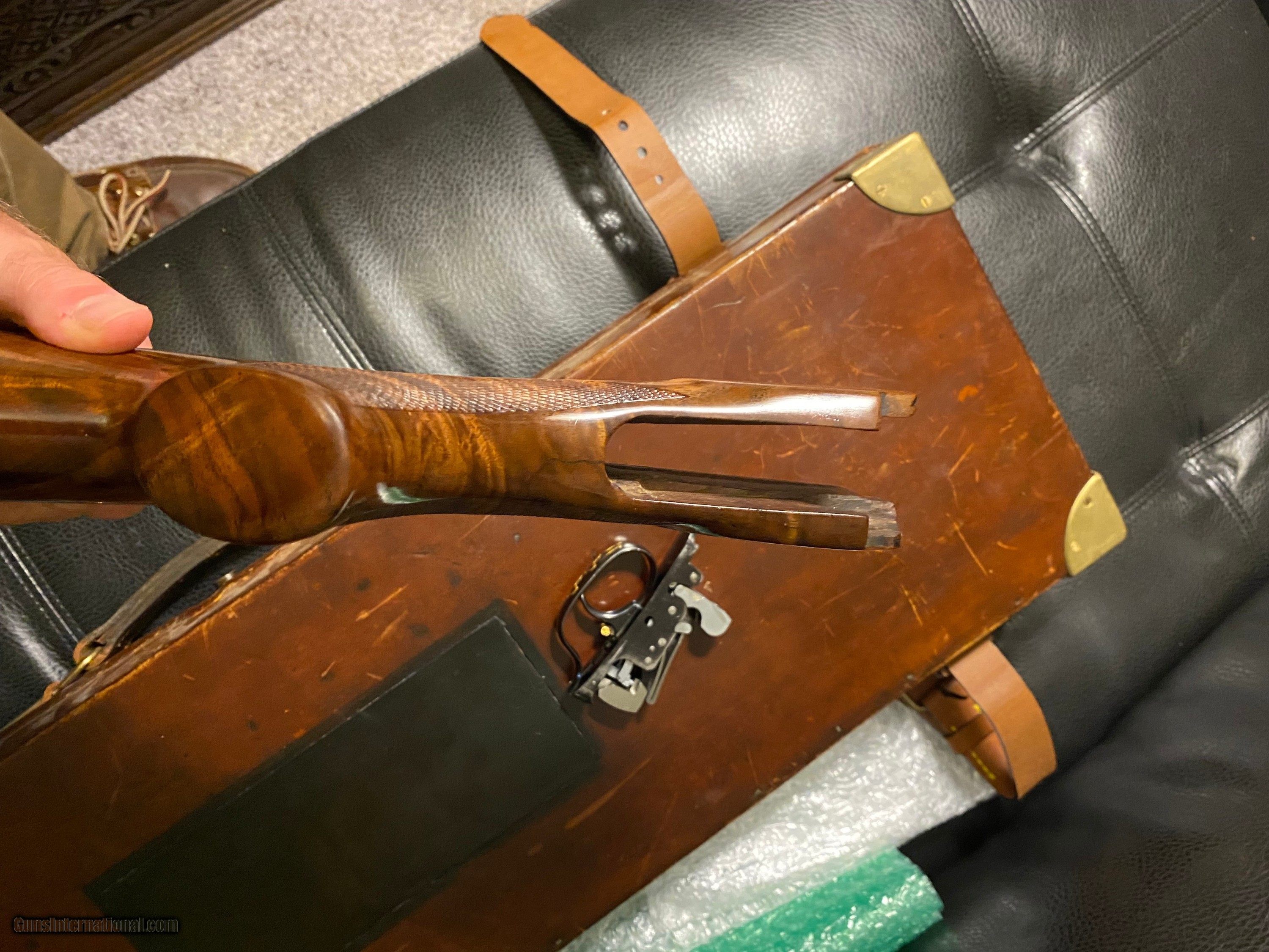 Description: Very nice wood on this MX8 or MX2000 12 Gauge (stock and bolt). For drop out trigger. I recently purchased a new stock and took this one off my MX8. Excellent condition no scatches or cracks comes complete with new kick eez and bolt. Ready to plug and play. This stock fit both my MX8 and the MX2000. This is a right handed stock for a flat rib 12 gauge. Trigger not included only for visual aid on LOP and fit. ********Sold To Gene From Indiana pending funds********** SOLD |