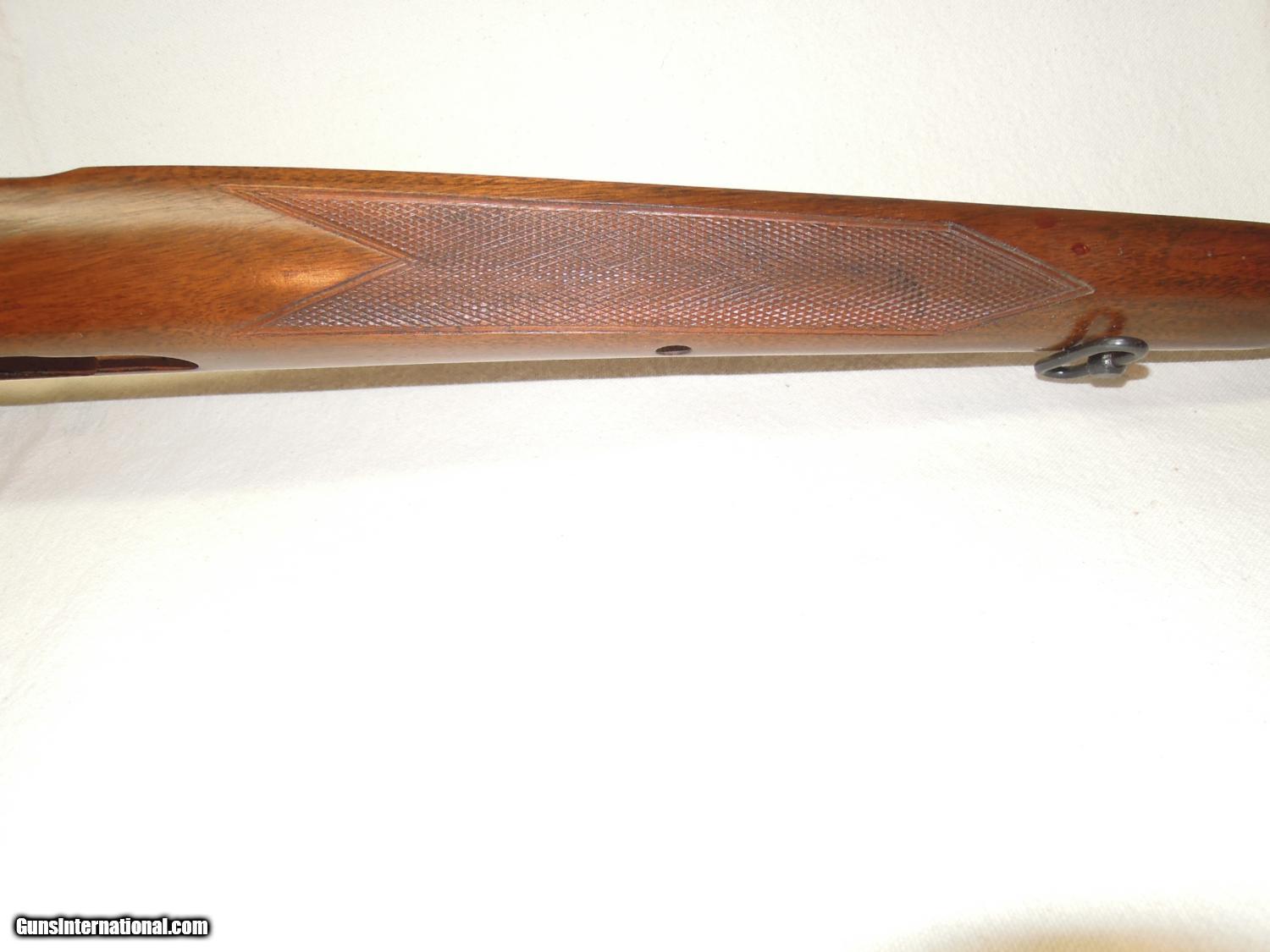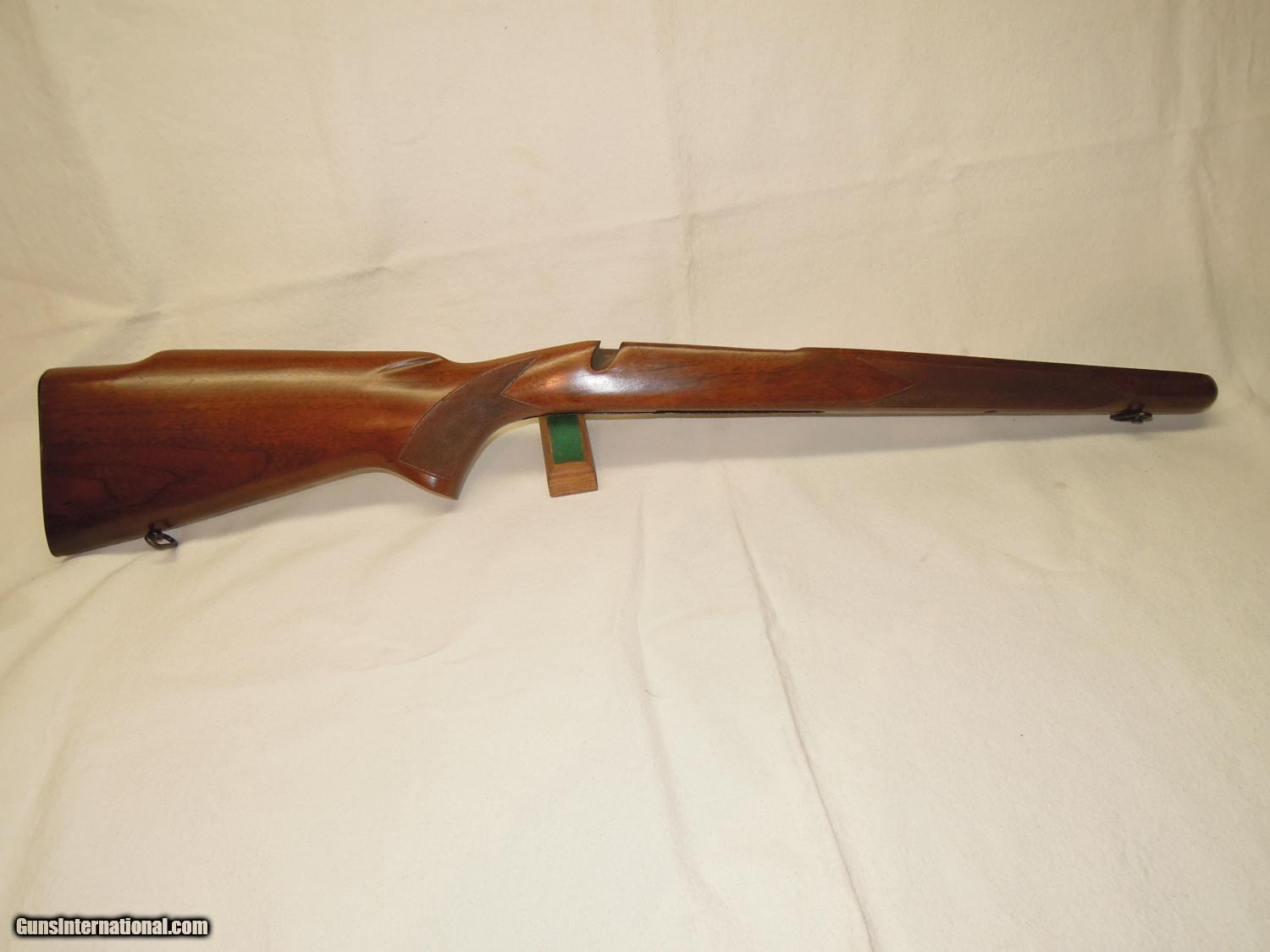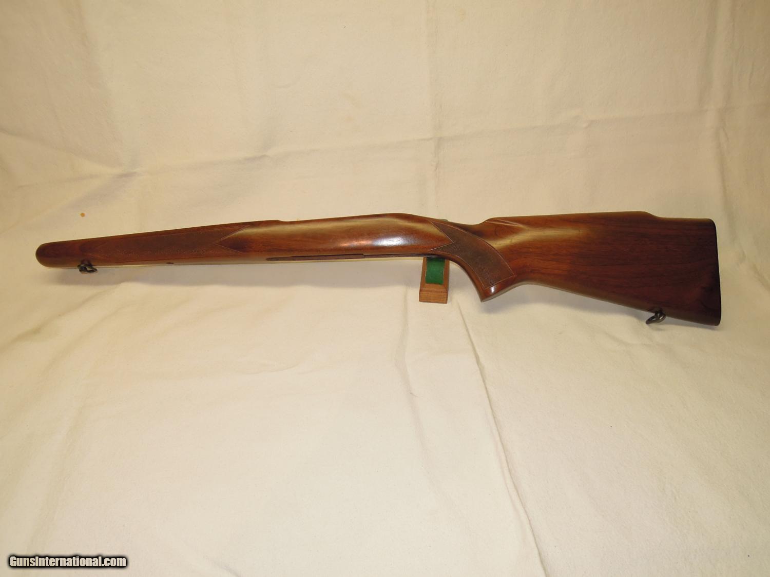 Description: Pre-64 Winchester Model 70 Standard Rifle High Comb Buttstock - Stock is early 1950's vintage with steel buttplate and is in excellent or better condition showing only a few light surface scuff marks. All original with no touch-up or refinish and comes with original swivels and center escutcheon. An all original M-70 stock wuth the steel buttplate that is getting very hard to find. I also have original guards, floorplates, and retaining screws for Pre-64 M-70 stocks available. SOLD |