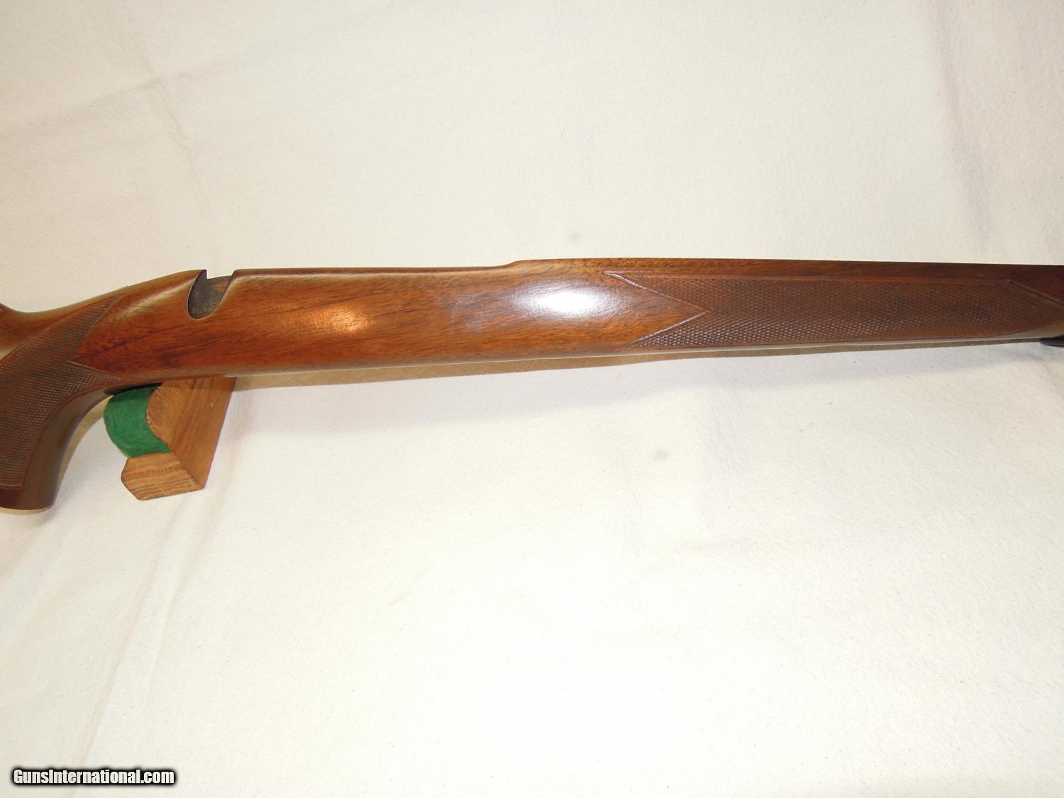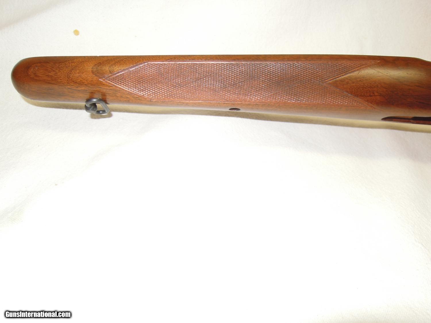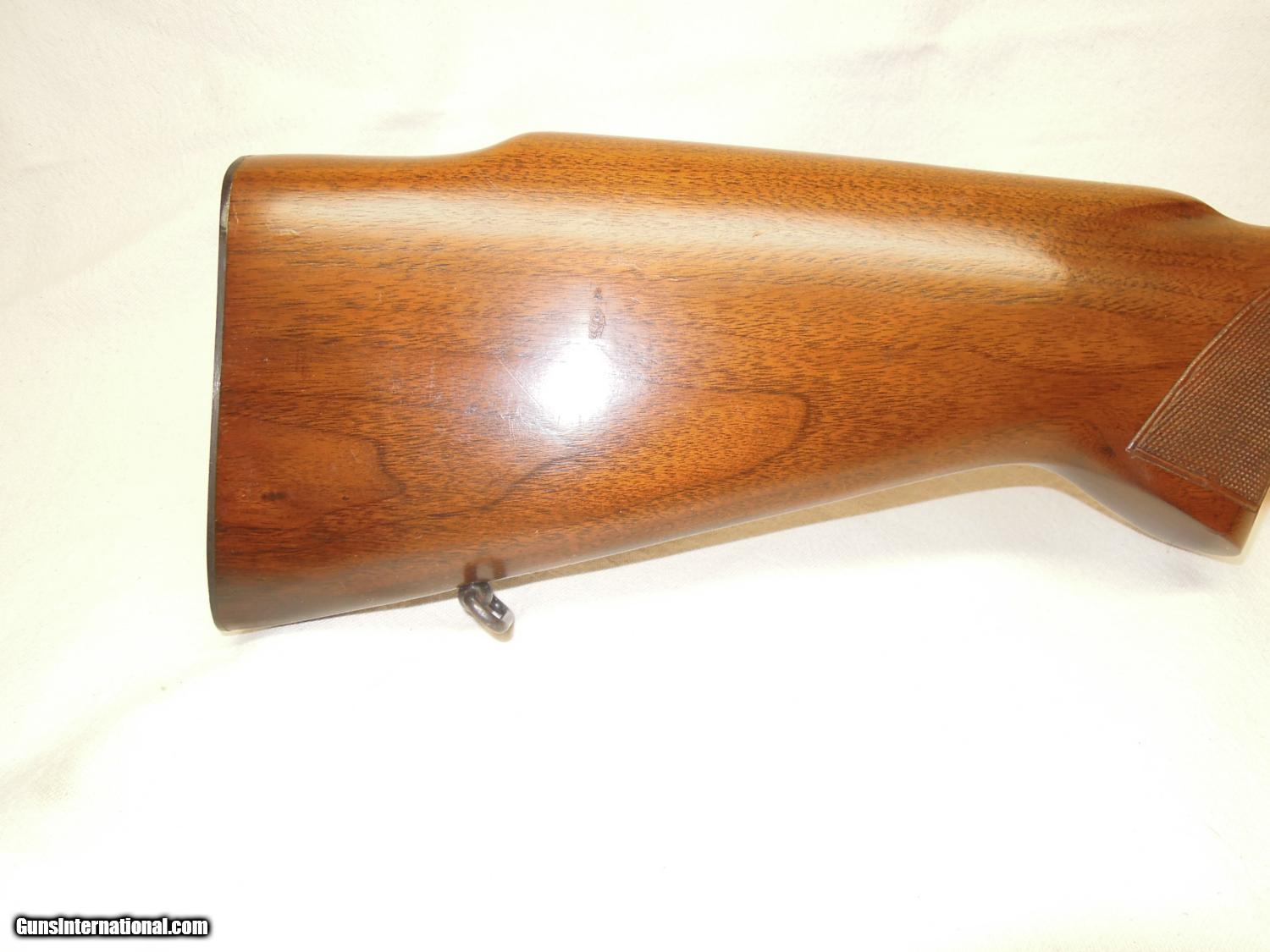 Description: Pre-64 Winchester Model 70 Standard Rifle High Comb Buttstock - Stock is early 1950's vintage with steel buttplate and is in excellent or better condition showing only a few light surface scuff marks. All original with no touch-up or refinish and comes with original swivels and center escutcheon. An all original M-70 stock wuth the steel buttplate that is getting very hard to find. I also have original guards, floorplates, and retaining screws for Pre-64 M-70 stocks available. SOLD |