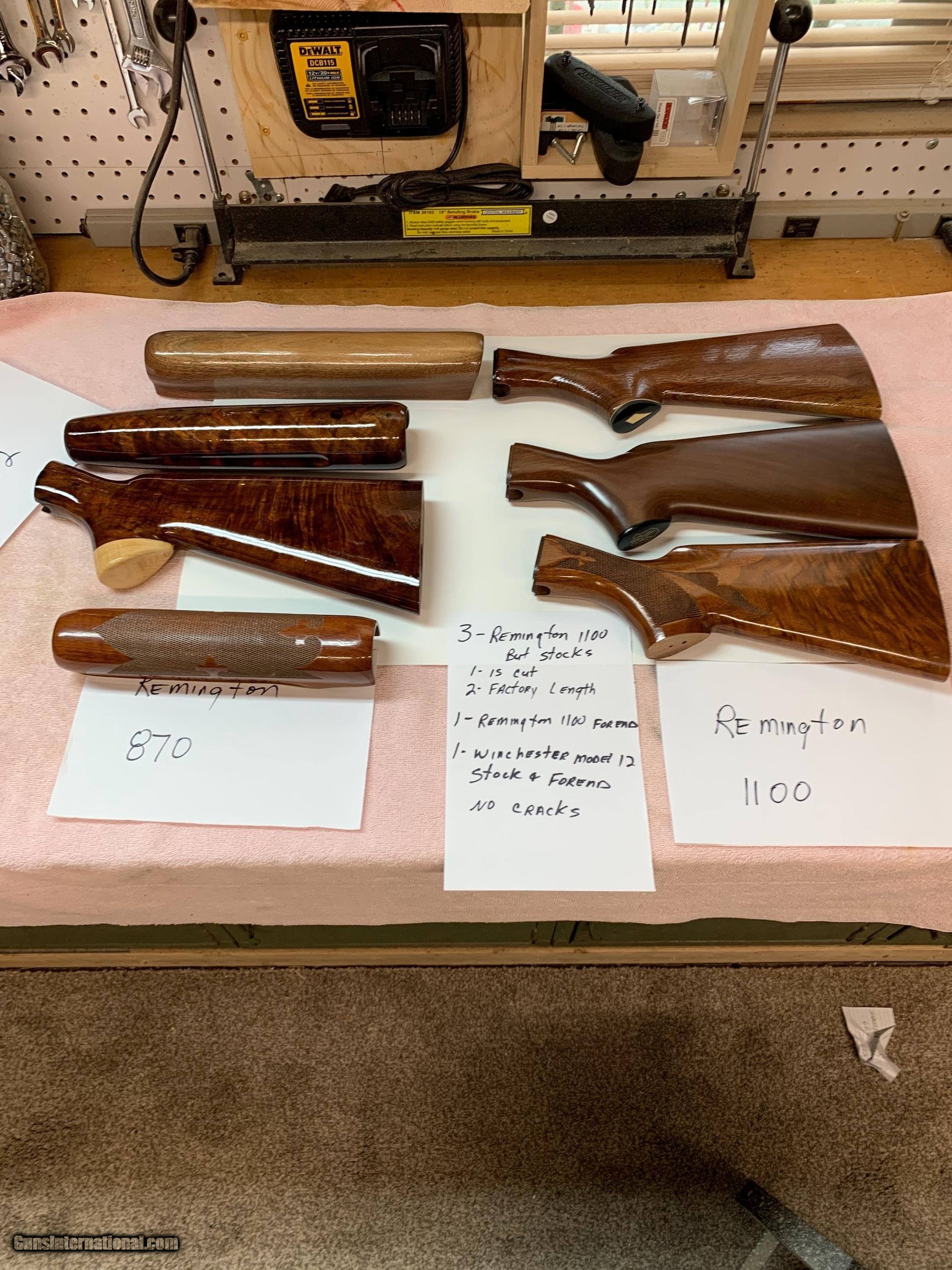 Description: 3 Remington model 1100 but stocks, 1 is cut 1/2" for youth, 1 1100 forend, 1 nice set stocks for Winchester model 12 and 1 Remington model 870 forend all for 12 ga, nice stocks and no cracks SOLD |