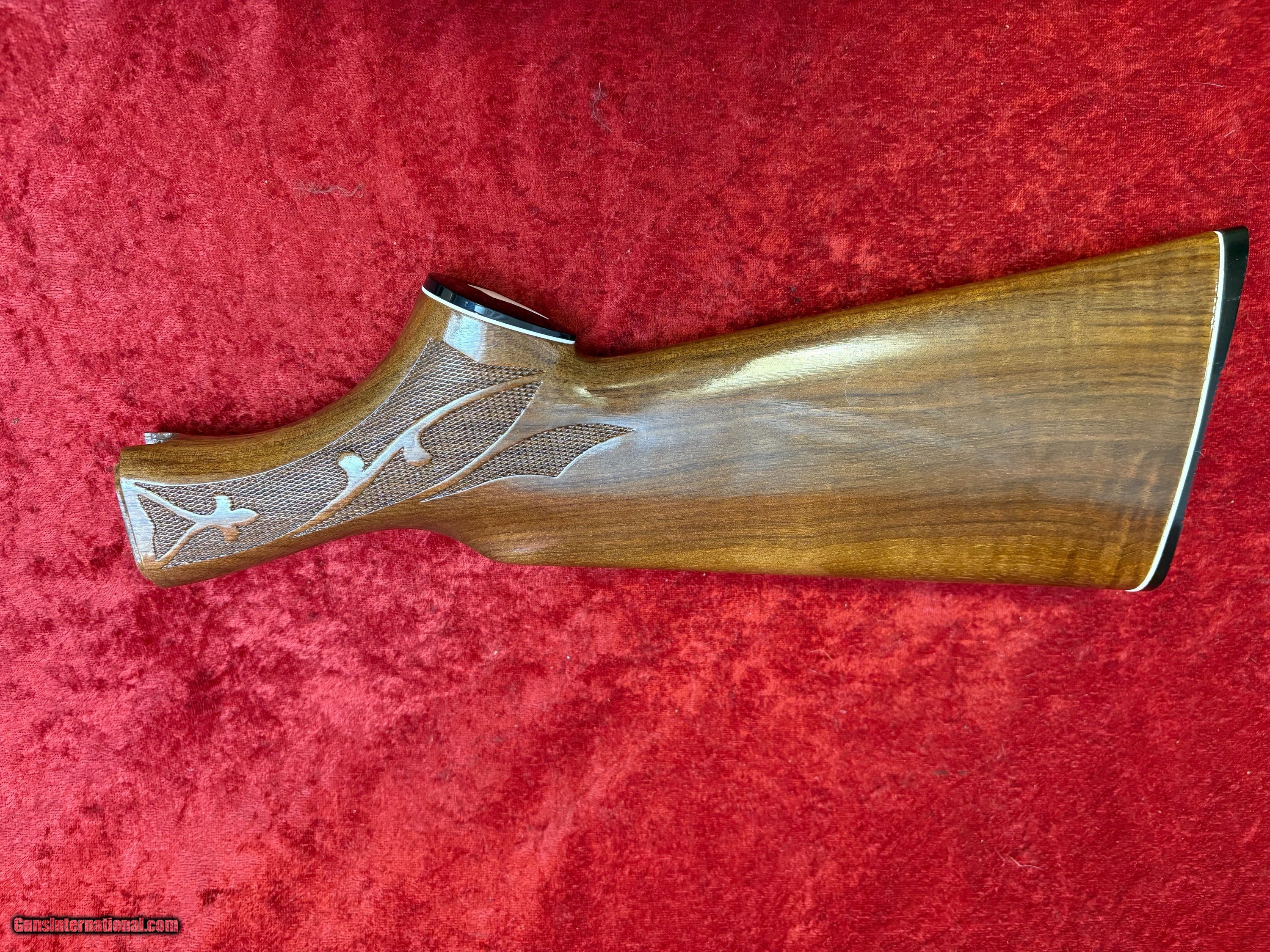 Description: Remington 1100 12 ga Field Deluxe Butt Stock ('70's or early 80') This is new "old stock" in the original foam sleeve-NO box. Will fit some 1187 and some 870 stocks as well-some gunsmithing may be required. Fleur de lis checkering pattern White diamond grip cap OAL (see picture) NEW Price: $376.00 Save $$ and buy from United Sportsmen's Company $175.00 SOLD |