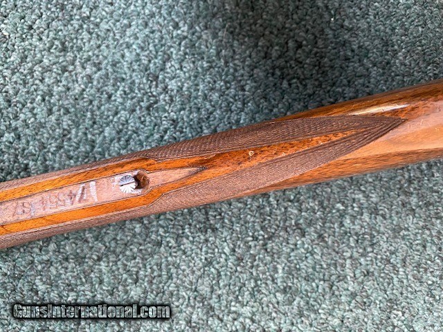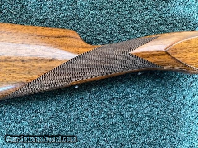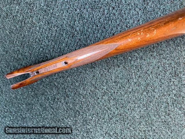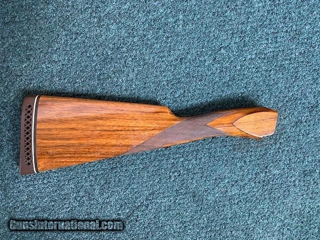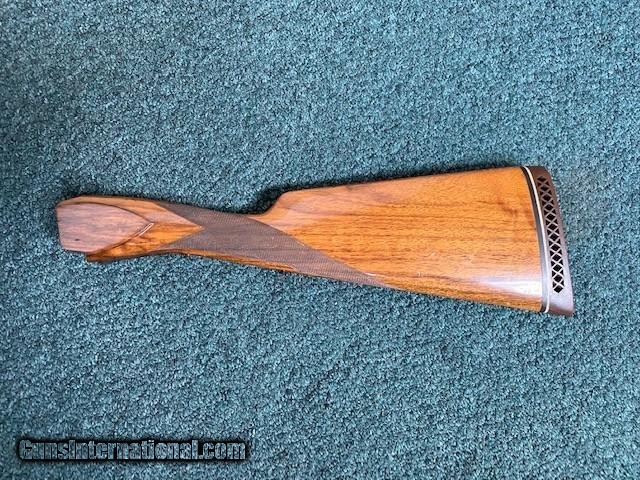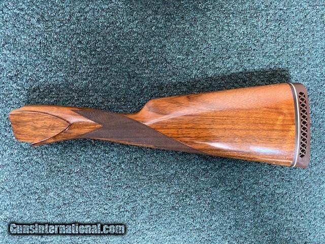 Description: Stock had been on a Browning Superpose 12ga, serial no. 74554S7, 1" Steinberg Sports Center pad, superlight, straight grip, full length is 15 1/2" and with pad 16 1/2", trigger pull approximately 14 1/2" to 14 3/4", checkering good, some light handling marks on heel and toe, some crazing on one side of stock finish, engraved Belgium Browning screws. For further information call John at 941-748-7318. SOLD |